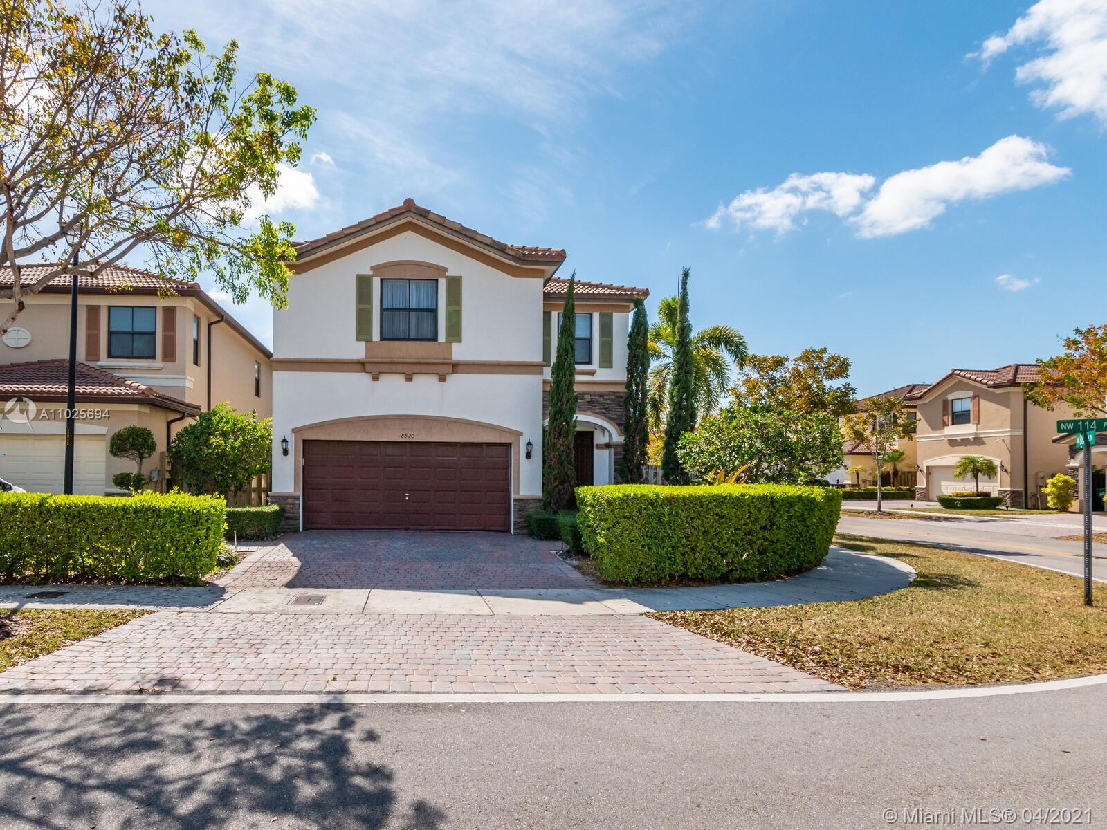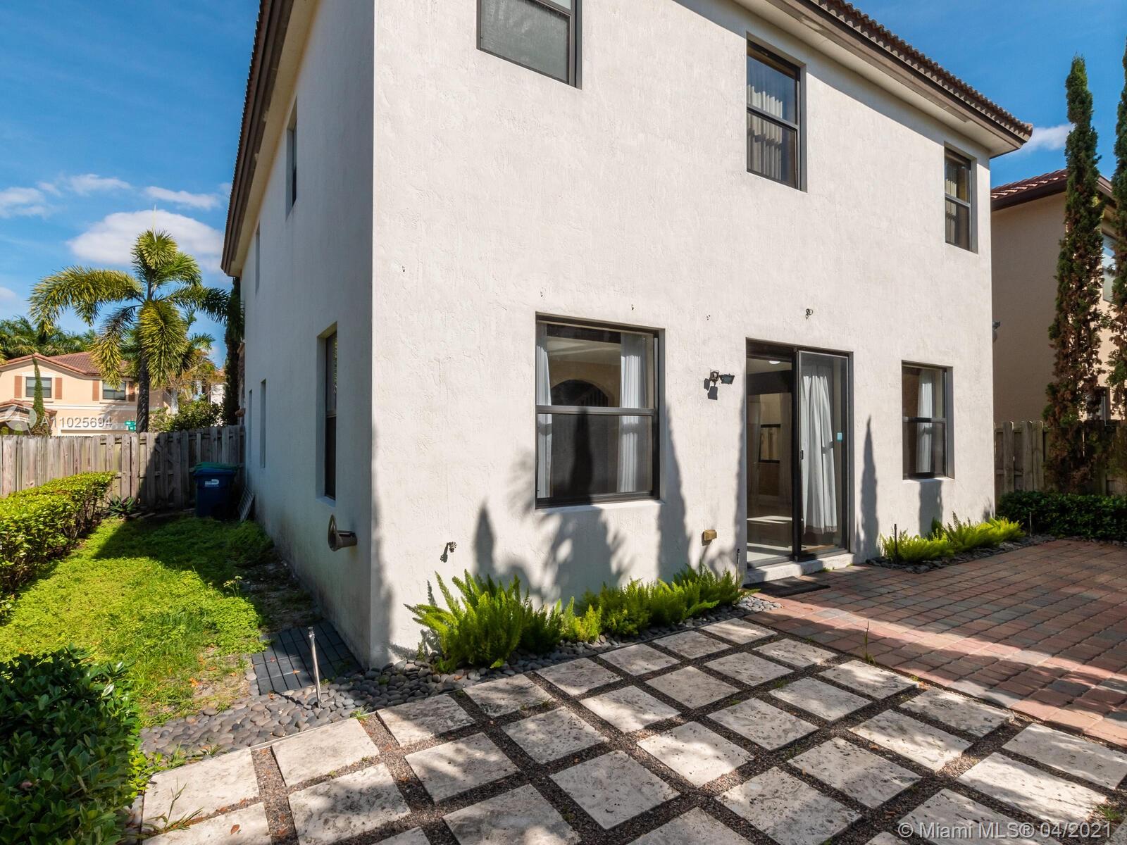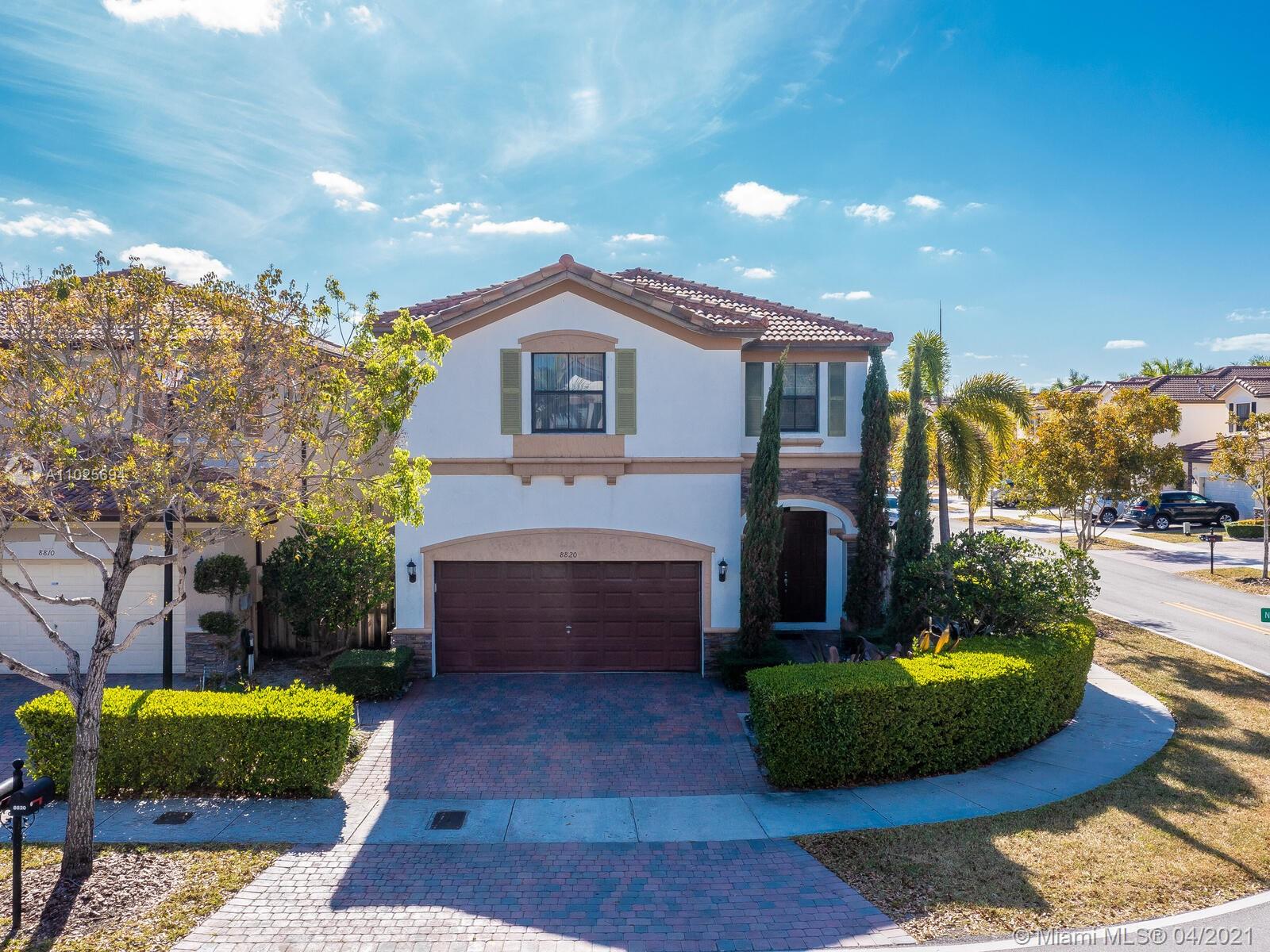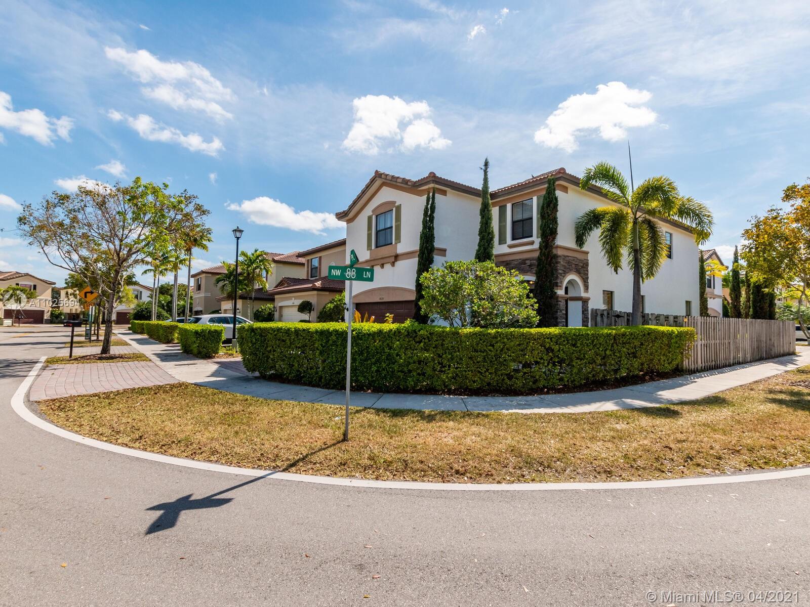 Best Buy in Doral. Groovy home in St Moritz Estates on corner lot, 4 bedroom, 3 1/2 baths & 2 car garage. This great property features a great floorplan, 1st floor has beautiful porcelain floors, open kitchen with granite counters, wood cabinets, S/S appliances & large family room. Wood on the 2nd floor w/ a huge master bedroom with a walk in closet. Two bedrooms w/full baths. Laundry is upstairs. The Backyard is fenced featuring a magical garden with lush landscaping great for BBQ and open to your client's imagination. Enjoy the lifestyle of Islands at Doral with fantastic amenities for all family members, pool, gym, gazebo, tennis and basketball courts, business & party rooms. Walking distance to Dr. Toni Bilbao Prep Academy, Dr. Rolando Espinosa K-8, & Doral Legacy Park. Easy to show.