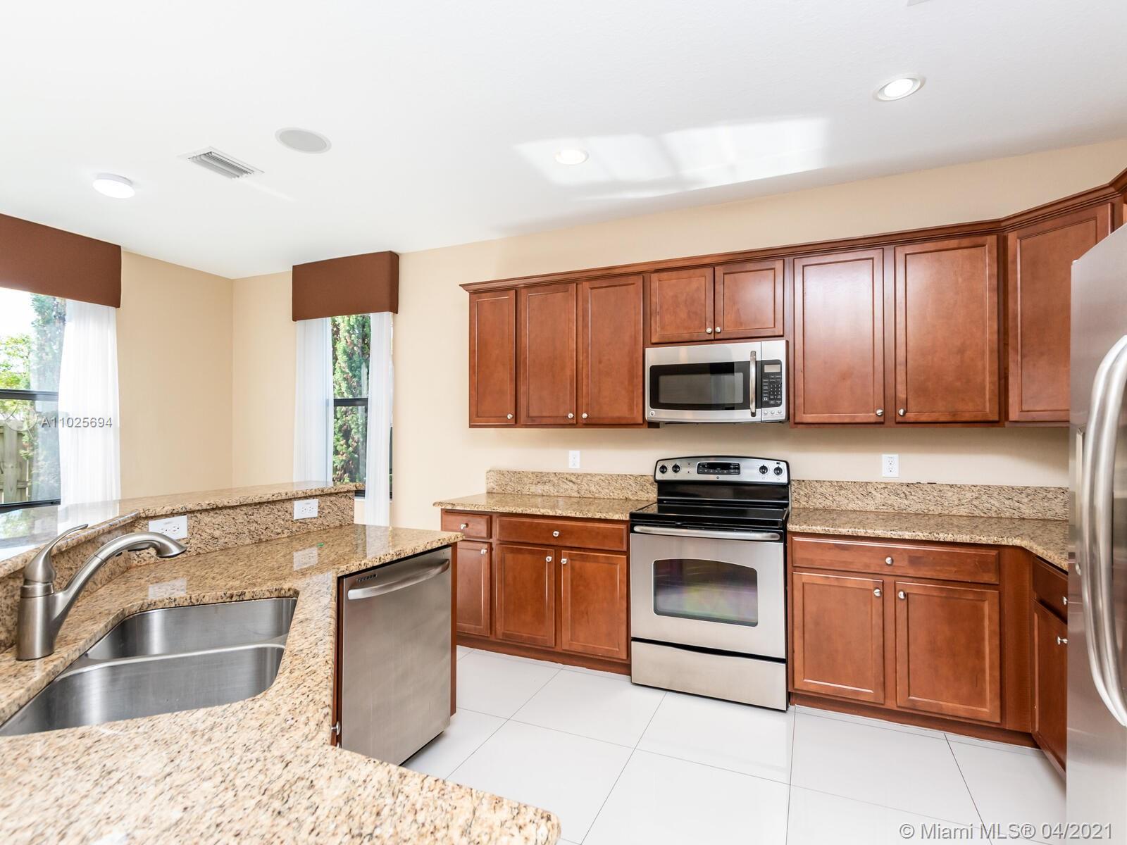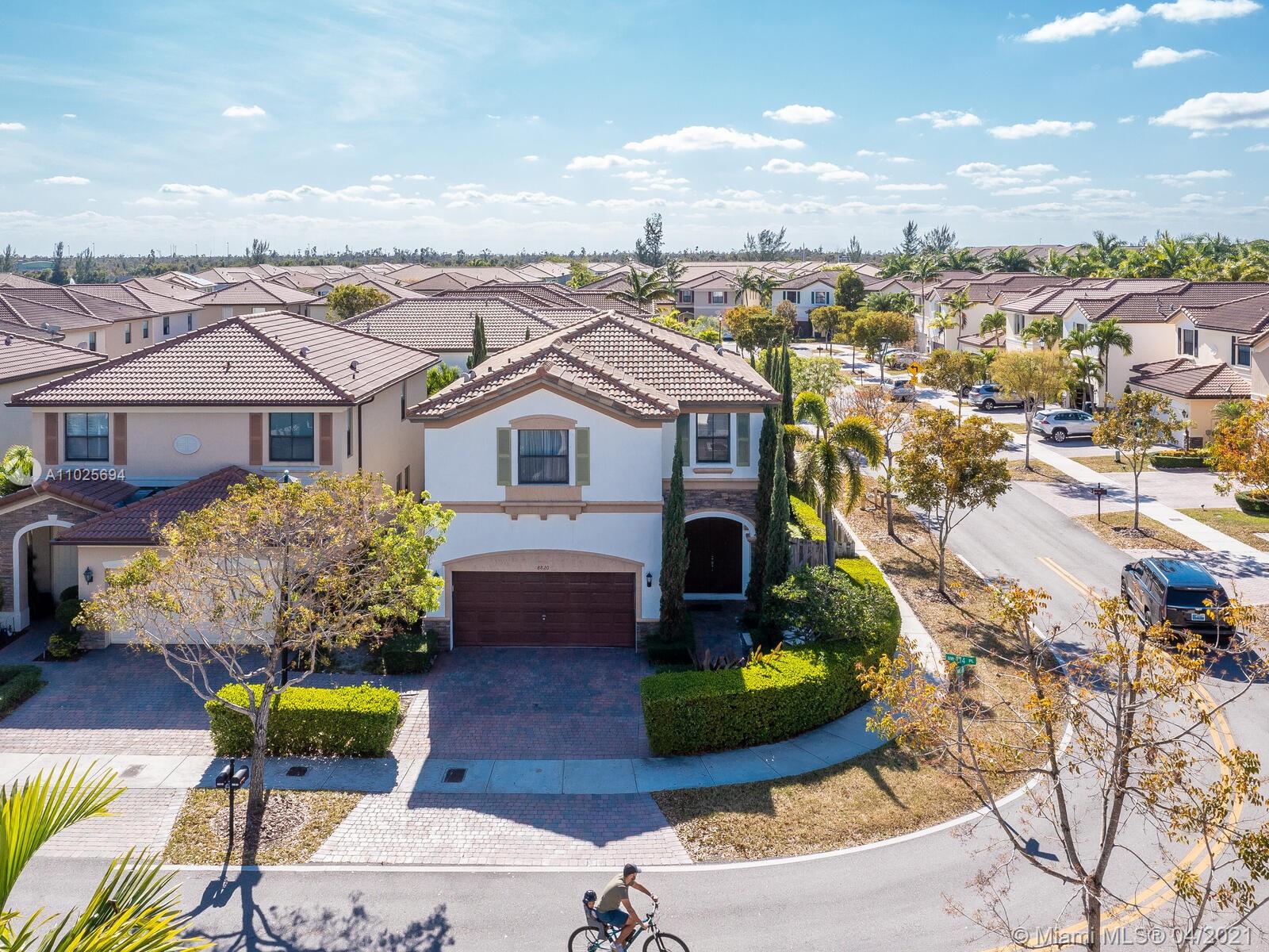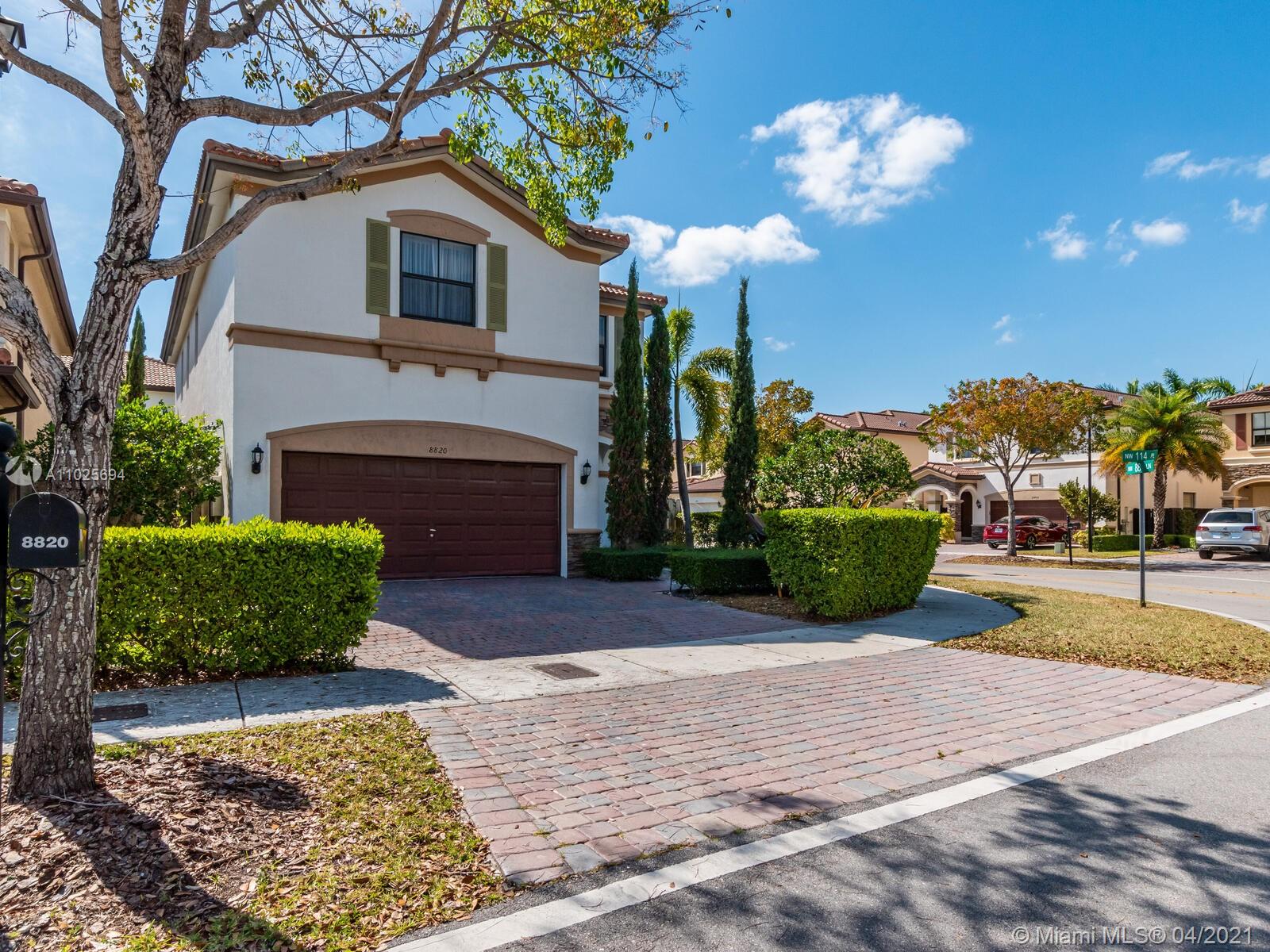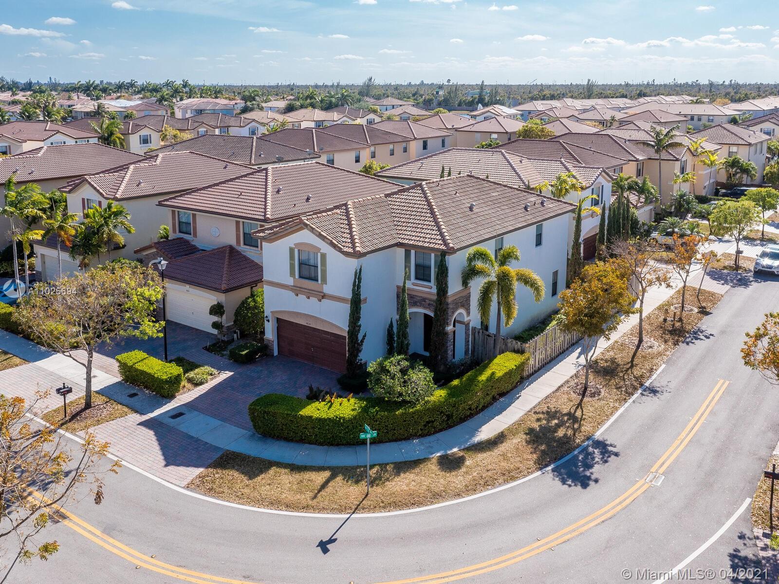 Best Buy in Doral. Groovy home in St Moritz Estates on corner lot, 4 bedroom, 3 1/2 baths & 2 car garage. This great property features a great floorplan, 1st floor has beautiful porcelain floors, open kitchen with granite counters, wood cabinets, S/S appliances & large family room. Wood on the 2nd floor w/ a huge master bedroom with a walk in closet. Two bedrooms w/full baths. Laundry is upstairs. The Backyard is fenced featuring a magical garden with lush landscaping great for BBQ and open to your client's imagination. Enjoy the lifestyle of Islands at Doral with fantastic amenities for all family members, pool, gym, gazebo, tennis and basketball courts, business & party rooms. Walking distance to Dr. Toni Bilbao Prep Academy, Dr. Rolando Espinosa K-8, & Doral Legacy Park. Easy to show.
