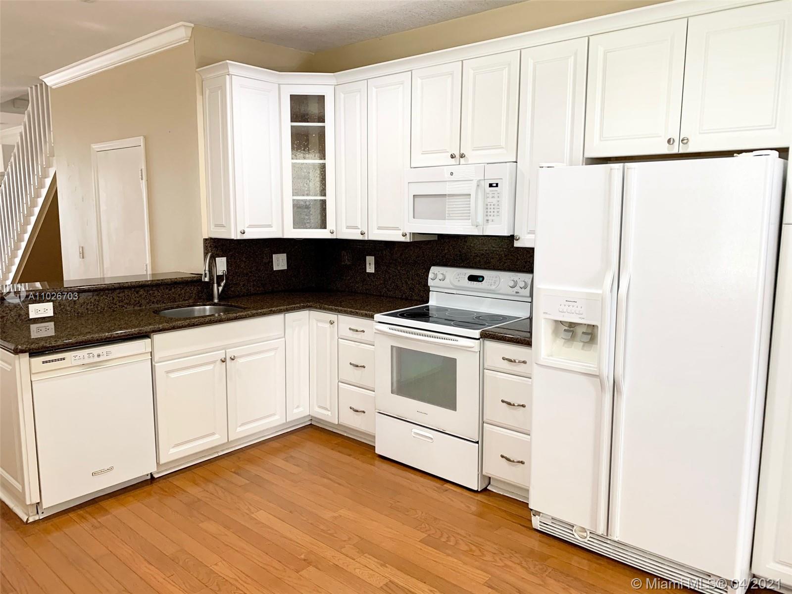Beautiful and desirable 4 bedroom townhouse in Weston. Corner unit full of lights with extra side windows. Upgraded kitchen with tall cabinets and granite countertops. Laminate floors throughout including stairs and second floor. Upgraded vanity in secondary bathroom. Fans in all bedrooms. Accordion shutters in all windows. 1 garage and a half for extra storage. Next to guest parking for convenience. Seconds to the highway, grocery store and restaurants. A must see!