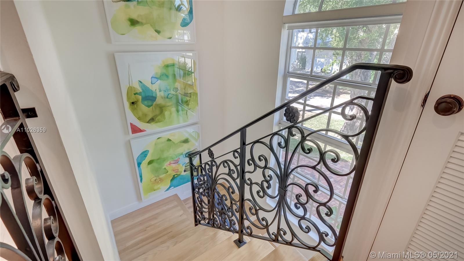 Coveted location in Platinum Triangle in Coral Gables. Spacious corner lot with exquisite Mediterranean style home. Beautiful features include a spacious dinning room with high ceilings, Large kitchen area with breakfast nook + Miele, Bosch, & Thermador appliances! Family room has fireplace and wet bar. Additional open office space- Library area for zoom meetings.. Primary bedroom suite is on second floor with a balcony view overlooking pool. Beautiful landscaped yard with inviting pool .The backyard feels like resort style retreat, great for entertaining. Home was updated in 2006 with additions. Renovations done 2018. Lovely and impeccable home that is spacious, light and bright. Excellent location close to South Miami and Coconut Grove.