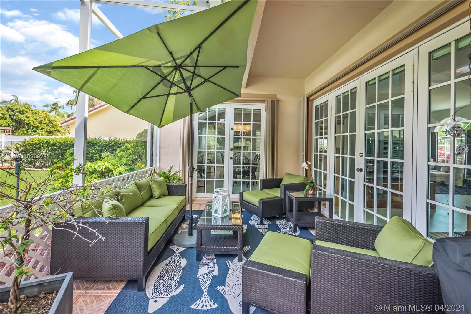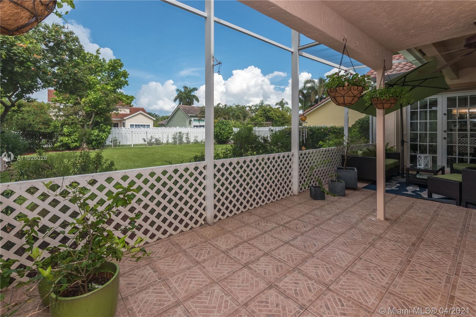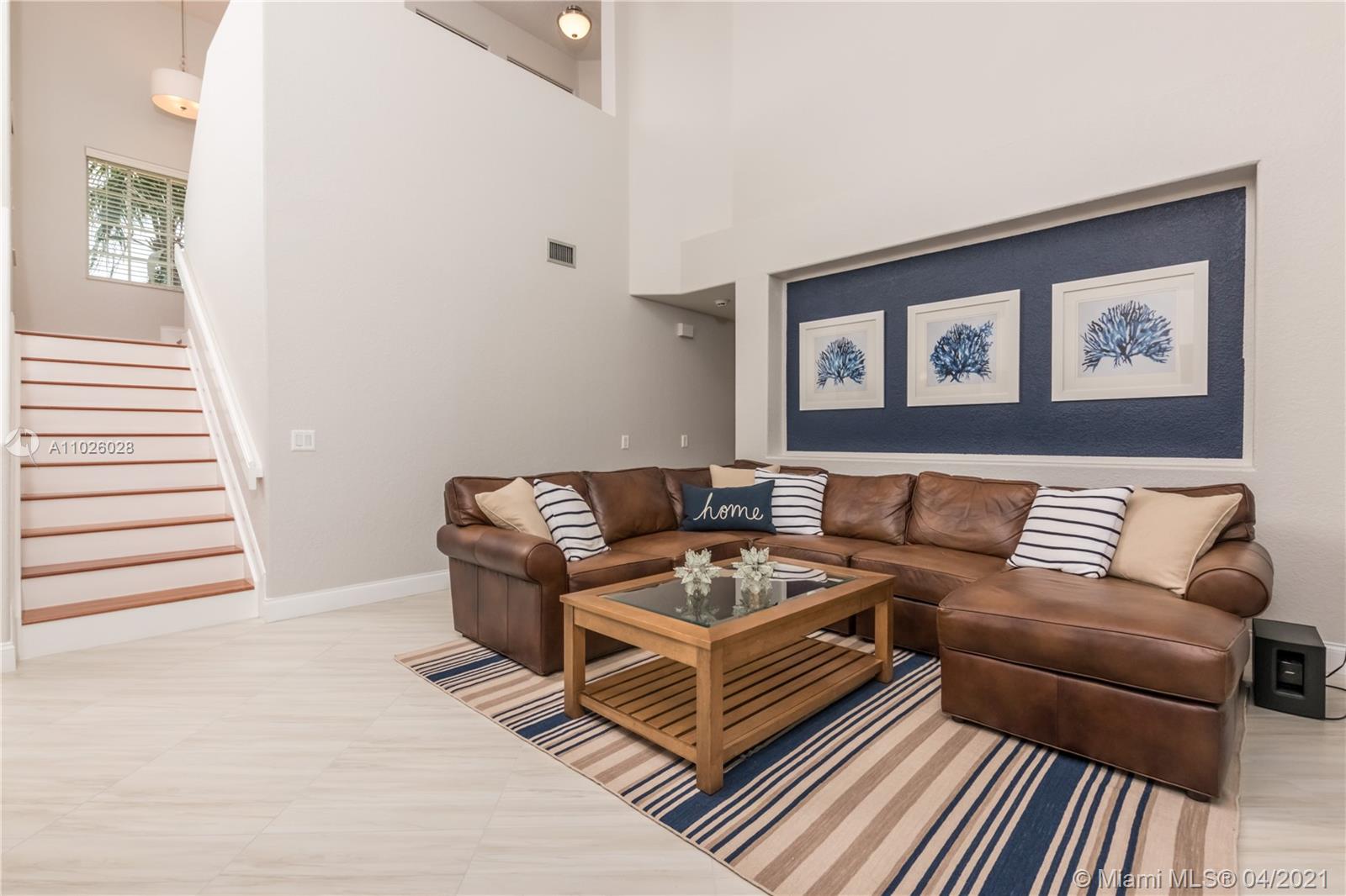 Enjoy outdoor living & beautiful garden views - your own private oasis! This gorgeous, gated community home, features 3 bedrooms, 2 bathrooms, Italian porcelain flooring throughout spacious living areas & high volume ceilings - perfectly light & bright! The generously sized kitchen showcases quartzite countertops & stainless steel appliances. Upstairs, enjoy amazing garden views from the master bedroom & private balcony. With an extended patio perfect for BBQ & a large oversized fenced yard, this home is ready for entertaining! Newer 2006 Roof, A/C (2015) & Water Heater (2017). Accordion shutters for convenience. The gated community of Laguna Springs offers residents a beautiful pool and picnic area. Great location close to excellent schools, shopping, dining, parks & more!