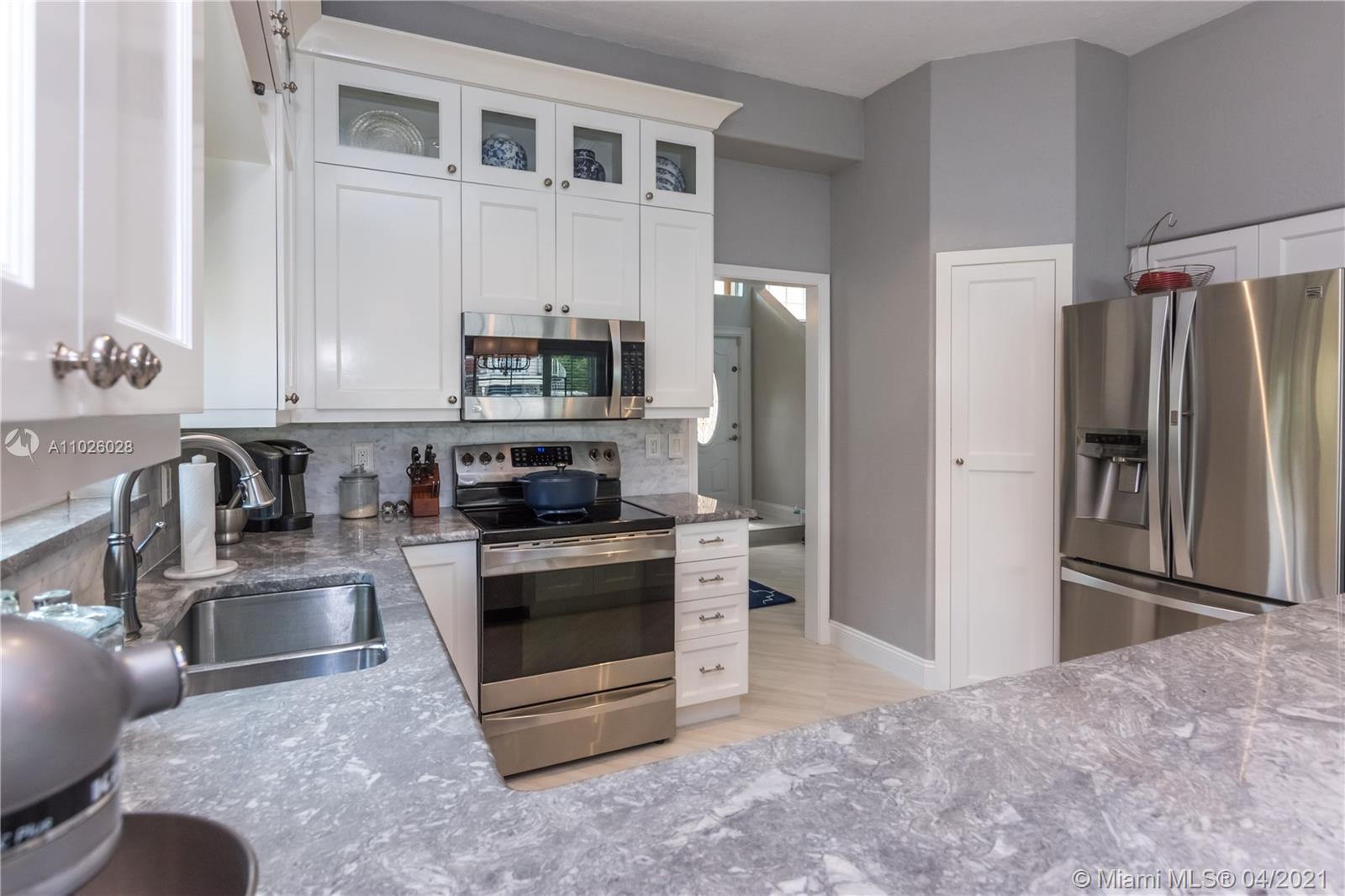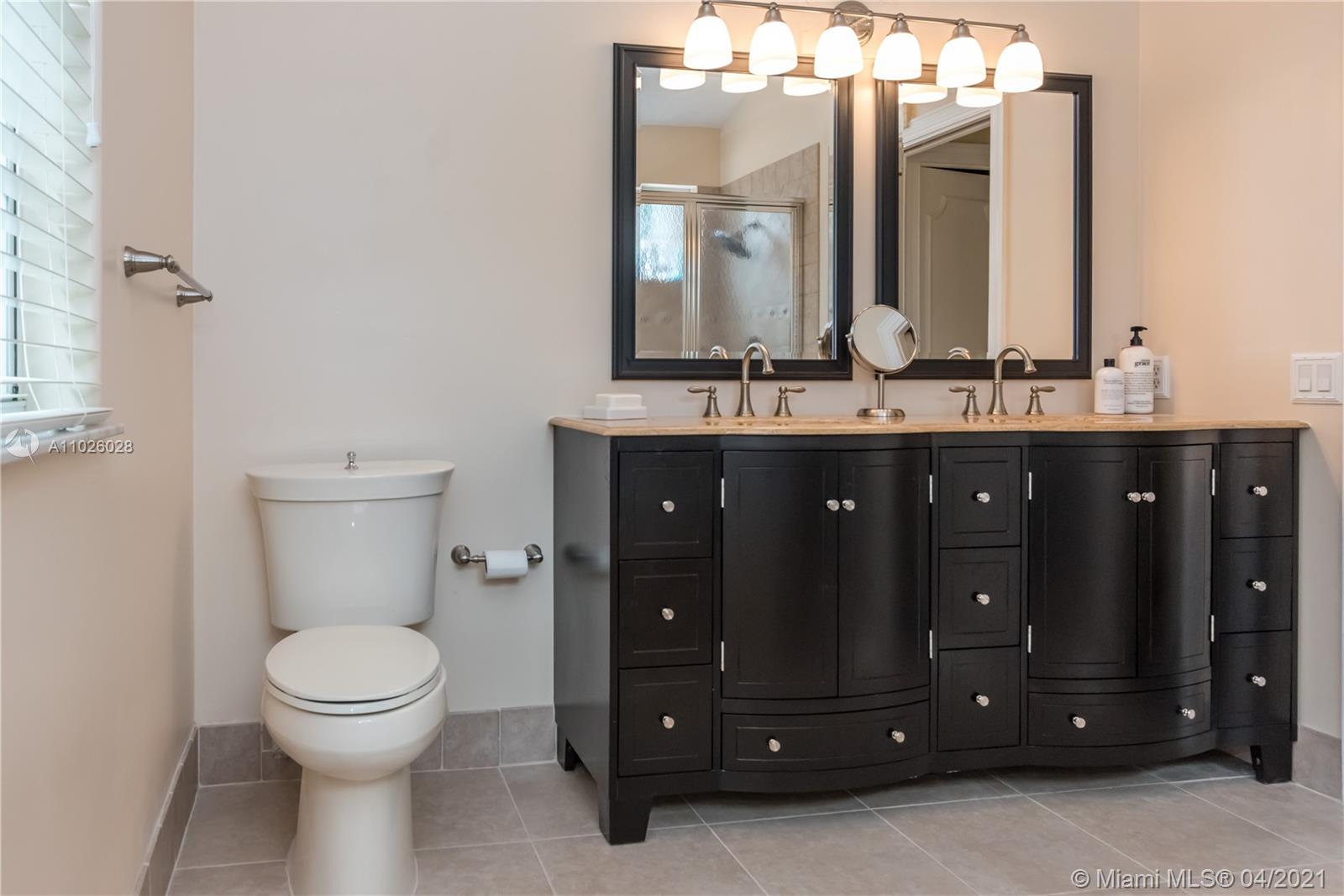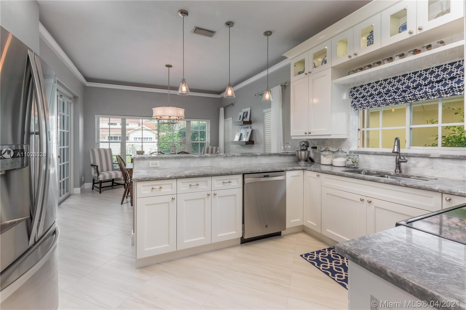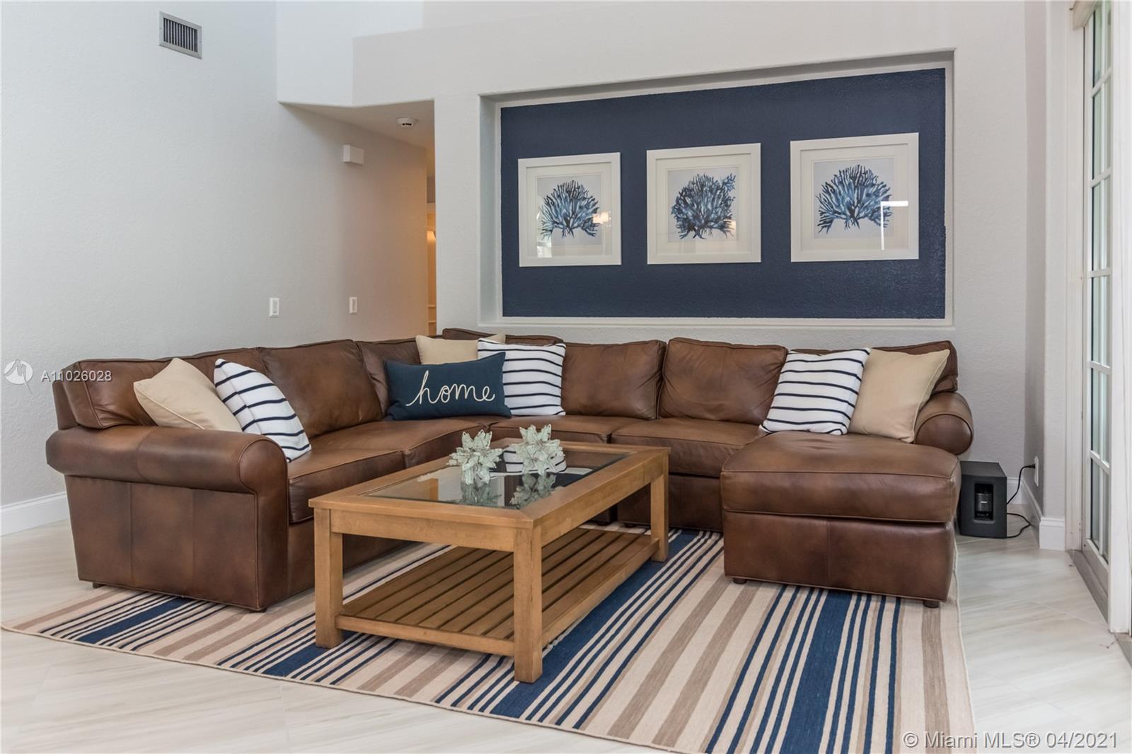 Enjoy outdoor living & beautiful garden views - your own private oasis! This gorgeous, gated community home, features 3 bedrooms, 2 bathrooms, Italian porcelain flooring throughout spacious living areas & high volume ceilings - perfectly light & bright! The generously sized kitchen showcases quartzite countertops & stainless steel appliances. Upstairs, enjoy amazing garden views from the master bedroom & private balcony. With an extended patio perfect for BBQ & a large oversized fenced yard, this home is ready for entertaining! Newer 2006 Roof, A/C (2015) & Water Heater (2017). Accordion shutters for convenience. The gated community of Laguna Springs offers residents a beautiful pool and picnic area. Great location close to excellent schools, shopping, dining, parks & more!