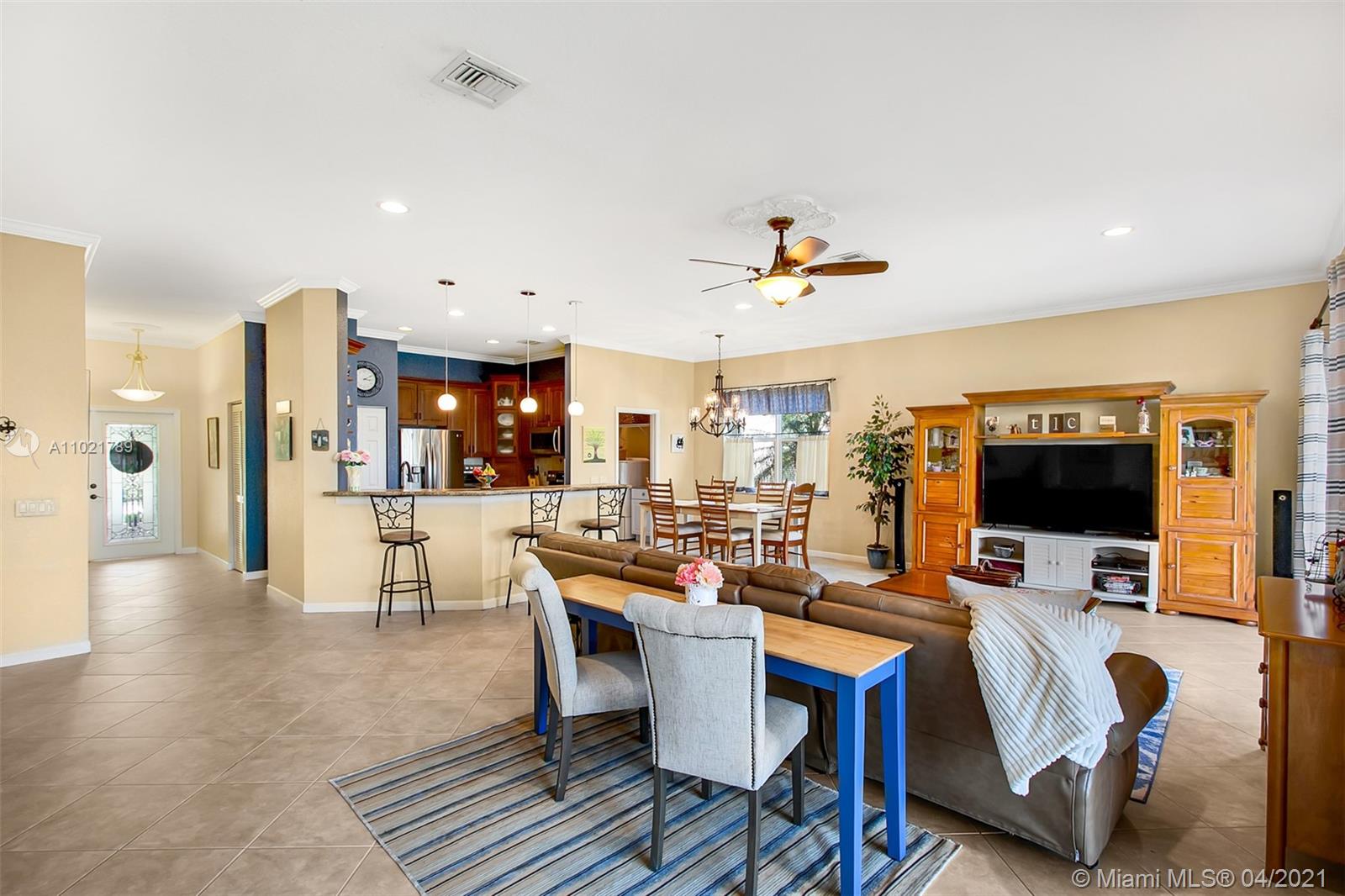 You can change anything but location. This single-story Savanna home has one of the most stunning lake views in the subdivision. This four-bedroom home features an open floor plan with split bedroom layout, high ceilings, new granite bar with wine cooler and rack, diagonal tile in the living areas and hard surface flooring in all bedrooms. Kitchen has upgraded 42” cabinets with custom pull outs, dual oven and stainless-steel appliances. Full hurricane protection including a wind proof front door, accordion shutters and generator with dedicated electric panel. Newer AC unit contains UV light to increase air quality. Huge screen paver patio that overlooks a park like setting. One of the largest backyards in the subdivision, there is plenty of room for a pool and outdoor entertainment area.
