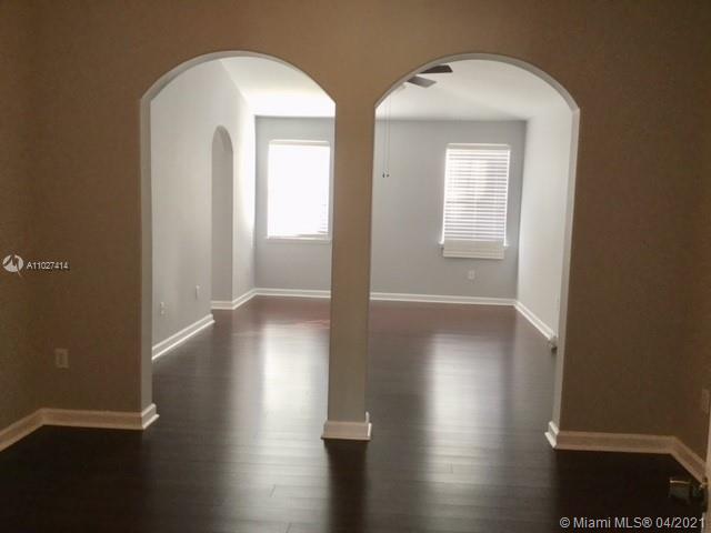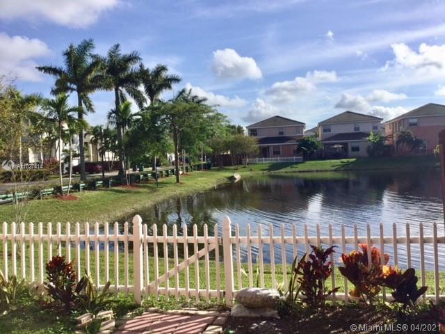 Beautiful corner home with spectacular high ceilings. Spacious kitchen features stainless steel appls, quartz, countertops,Wood floors on second floor. Huge master suite with sitting area, walk in closets, 2 more bedrooms & bathroom upstairs and the 4th bedroom with full bath downstairs, guest bath, family room, 2 a/c units, accordion shutters on the second floor, 2 car garage, low HOA. Larga side backyard ideal for entertaining or just relax and enjoy the lake view.