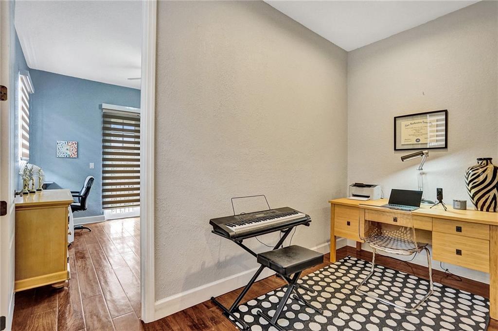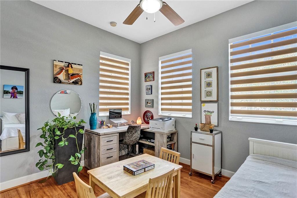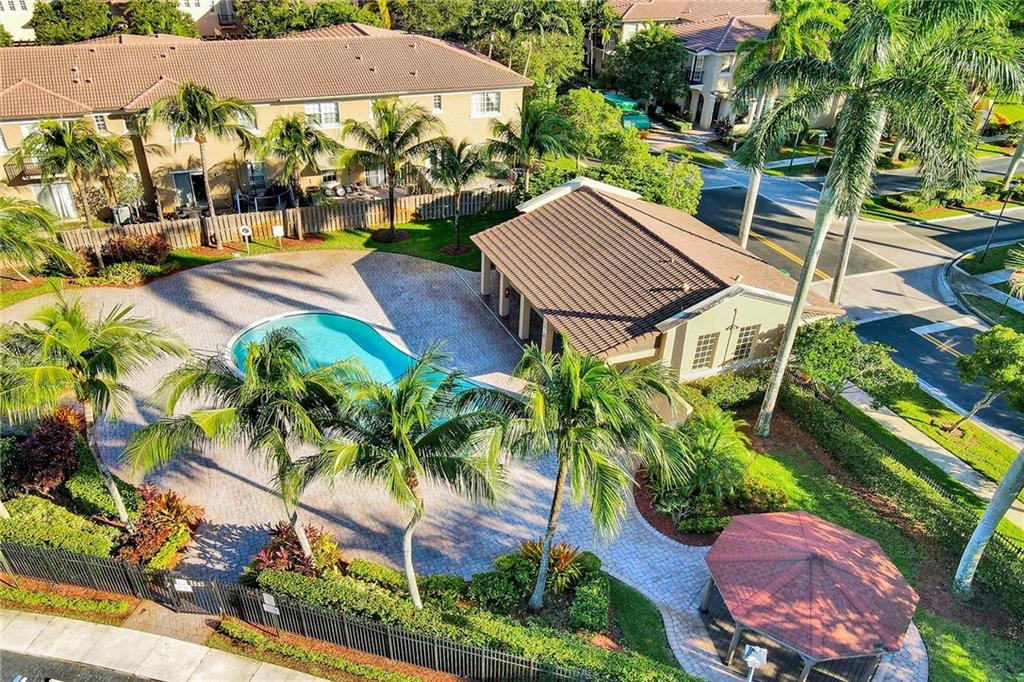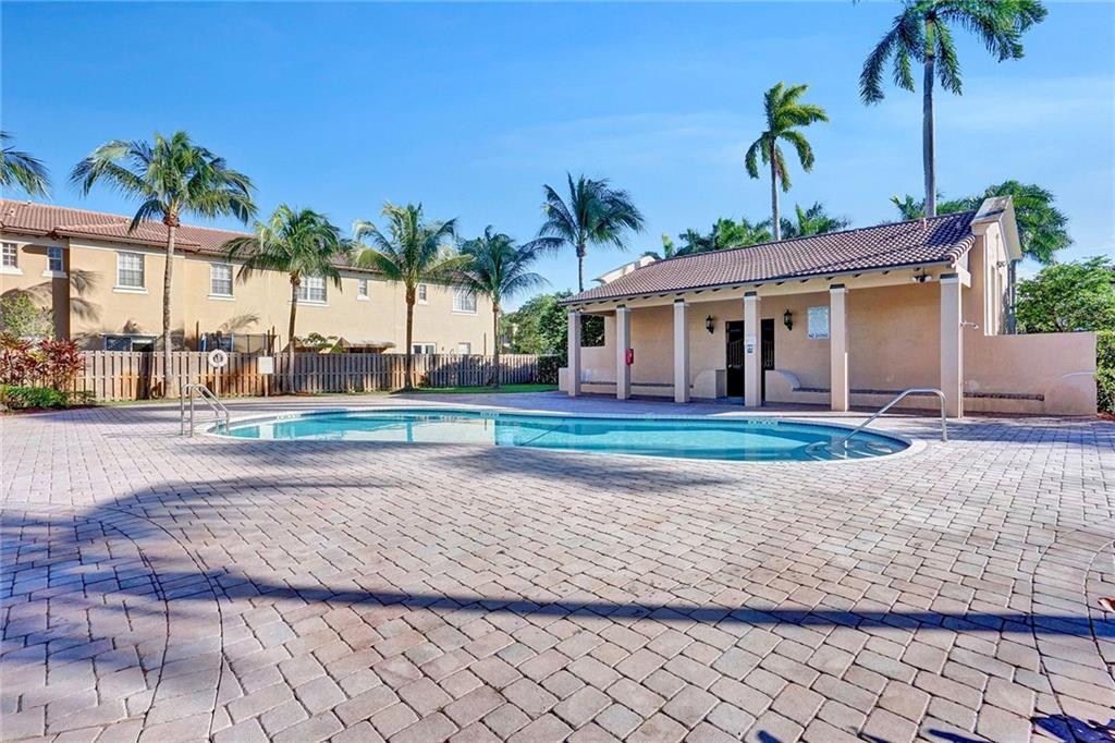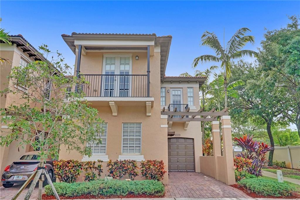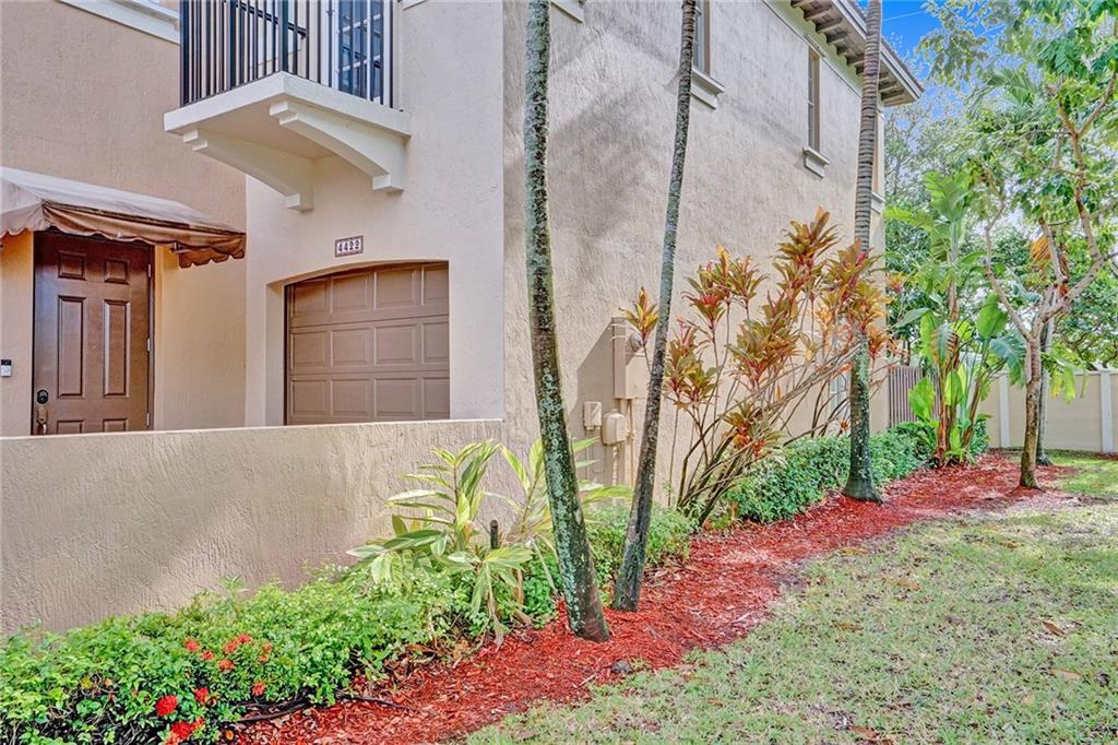 Charming corner townhouse nestled in the highly desired, Cimarron of Davie. This south Florida jewel boasts 3 bedrooms, 3 FULL baths, open loft, plus a bonus room that can be used as 4th bedroom. One bedroom and one full bath located on first floor. Galley kitchen complete with granite counters and stainless refrigerator. Open floor plan, light and bright, with exquisite hardwood flooring and stylish zebra blinds throughout. Upstairs bedrooms have blackout shades. Fabulous outdoor space with fruit tree and large fenced-in patio ideal for Floridian entertaining, or kids and pets at play. One car garage, plus additional parking in driveway. Community boasts pool and child play area. Minutes from shopping, schools, and scenic parks. TOP RATED SCHOOLS.
