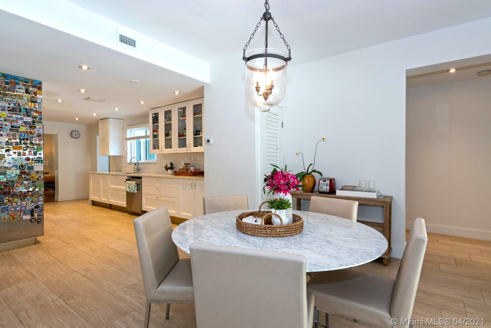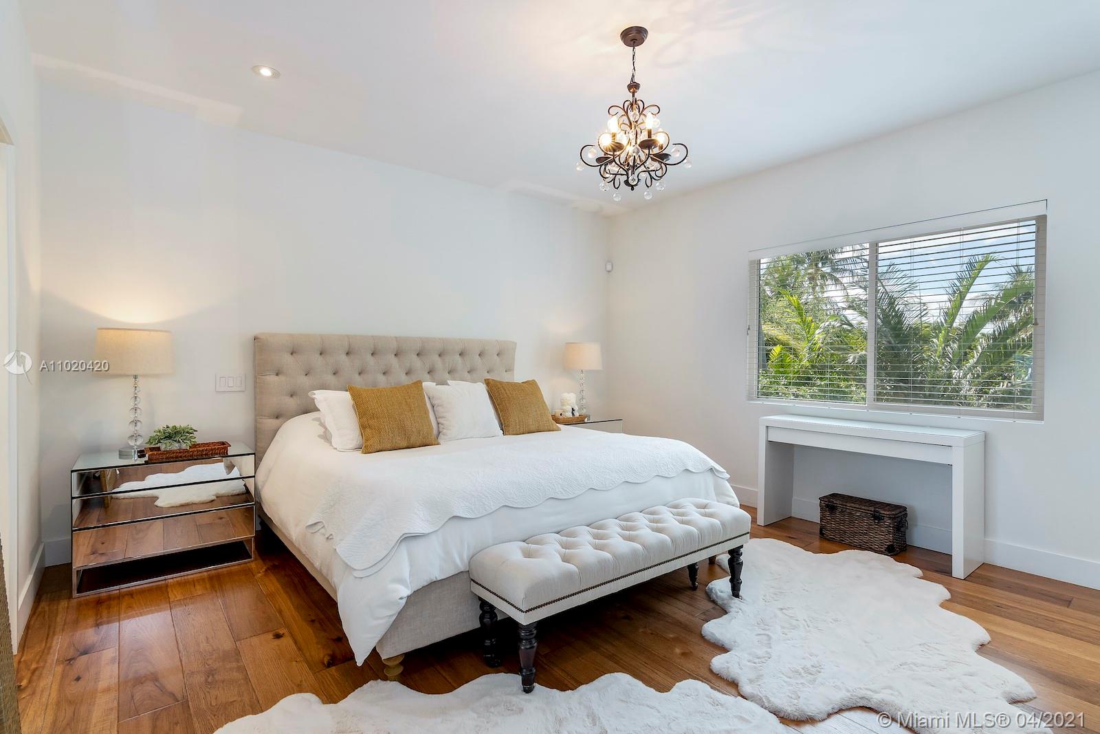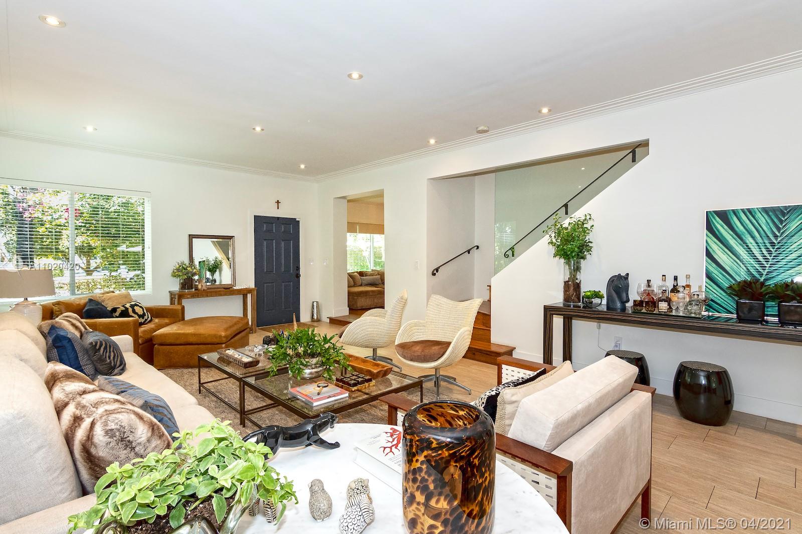 Stunning classic mid-beach home with modern elegance and mid-century architectural details. Two spacious master suites plus 3 additional large bedrooms and 4.5 bath. Elegant and bright with natural light, this home has original pristine terrazzo floors ac companied by hardwood and stone. Huge flow-through lot provides privacy to enjoy the large pool and spa. Updated, meticulously maintained and perfect for entertaining. Close to A rated schools, houses of worship and minutes from South Beach.