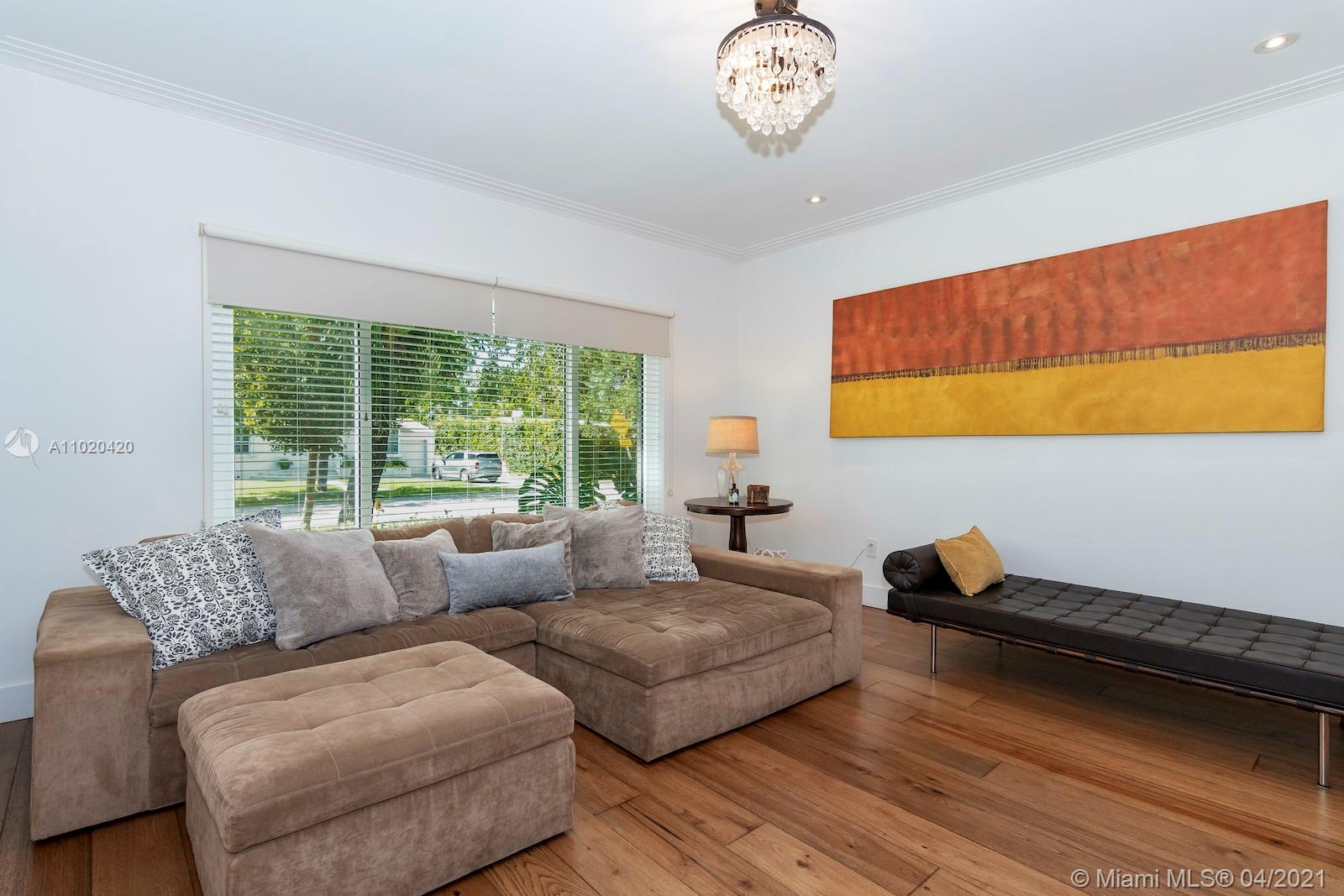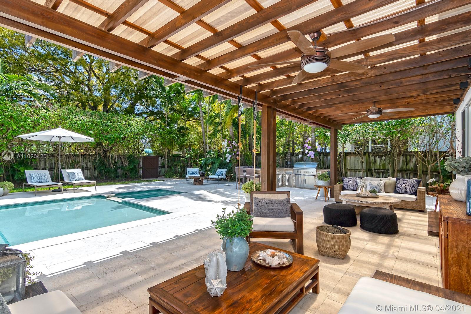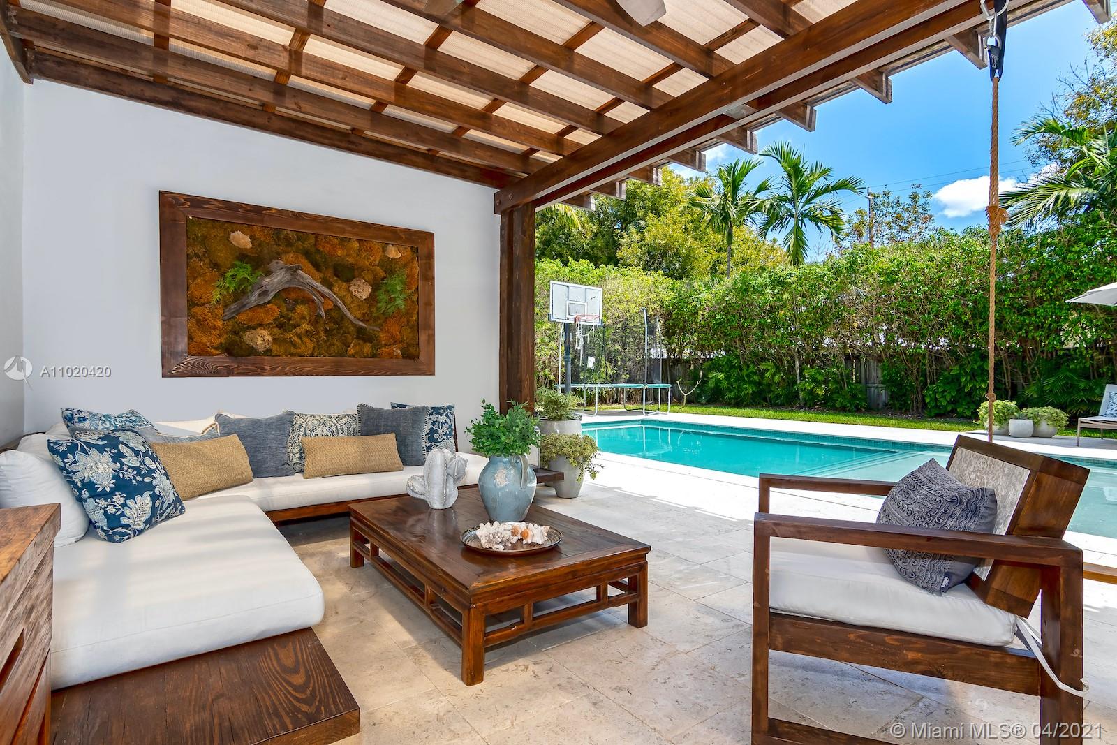 Stunning classic mid-beach home with modern elegance and mid-century architectural details. Two spacious master suites plus 3 additional large bedrooms and 4.5 bath. Elegant and bright with natural light, this home has original pristine terrazzo floors ac companied by hardwood and stone. Huge flow-through lot provides privacy to enjoy the large pool and spa. Updated, meticulously maintained and perfect for entertaining. Close to A rated schools, houses of worship and minutes from South Beach.