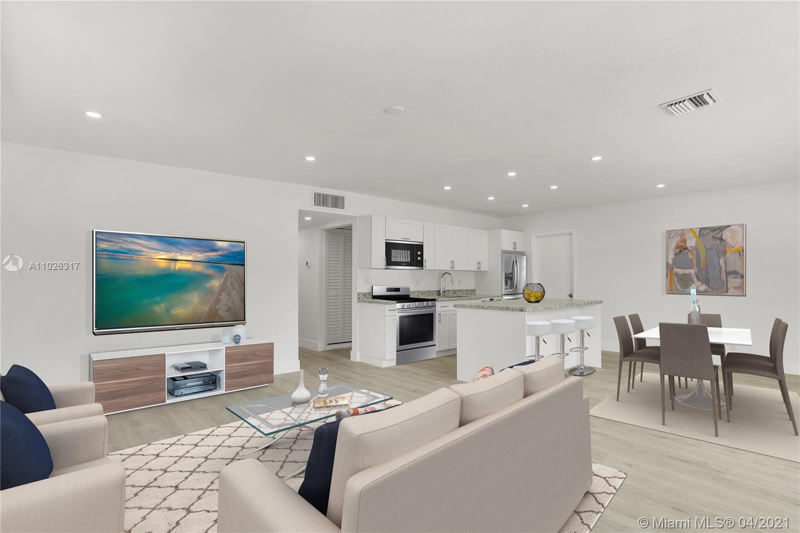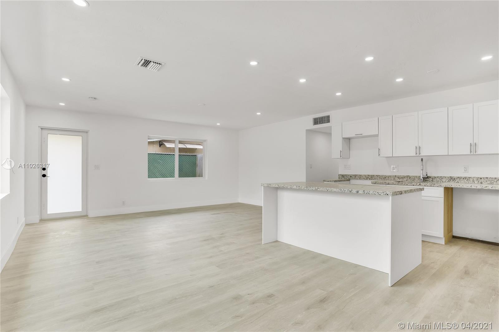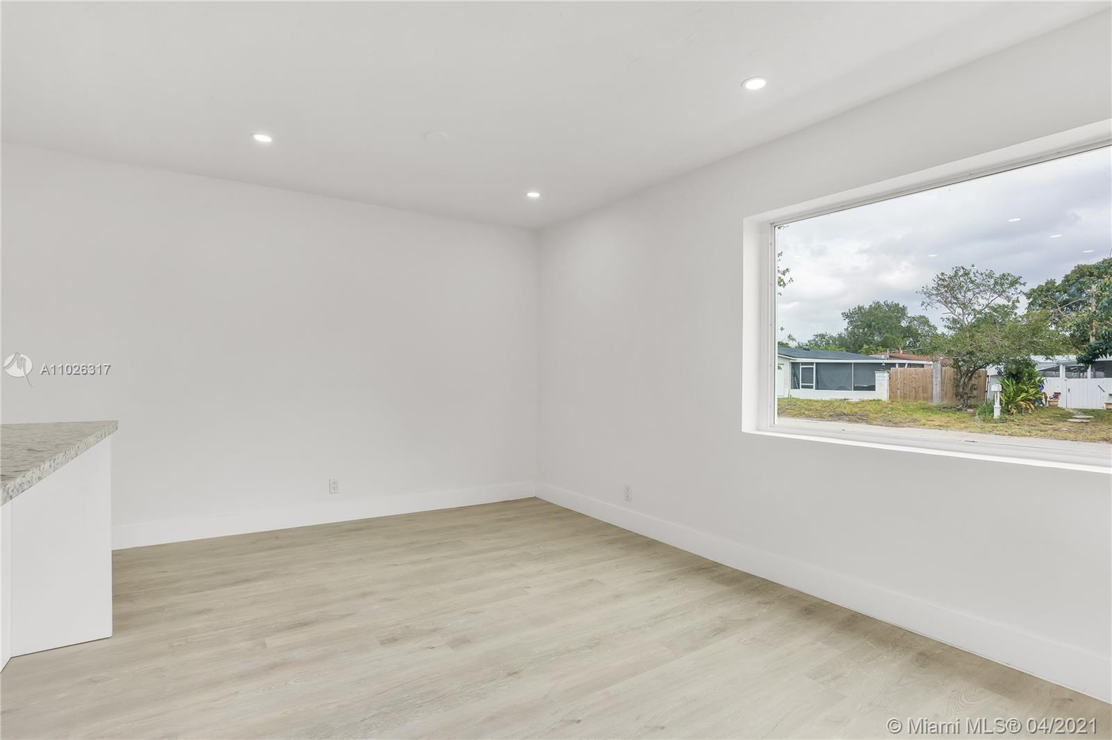 Beautiful updated home with a modern theme ready to move in featuring 3 bedrooms and 2 baths on a quiet street in Hollywood. Crisp and clean design with light filled spaces throughout, white kitchen cabinetry, quartz countertops, SS appliances, brand new light fixtures, modern flooring and an independent utility room for laundry and storage. New roof installed 03/21. Spacious backyard with mature fruit trees and a lush lawn with plenty of room for a boat or RV. Close to highly rated schools, 441, the Turnpike, I95 and other major highways for easy access throughout South Florida.