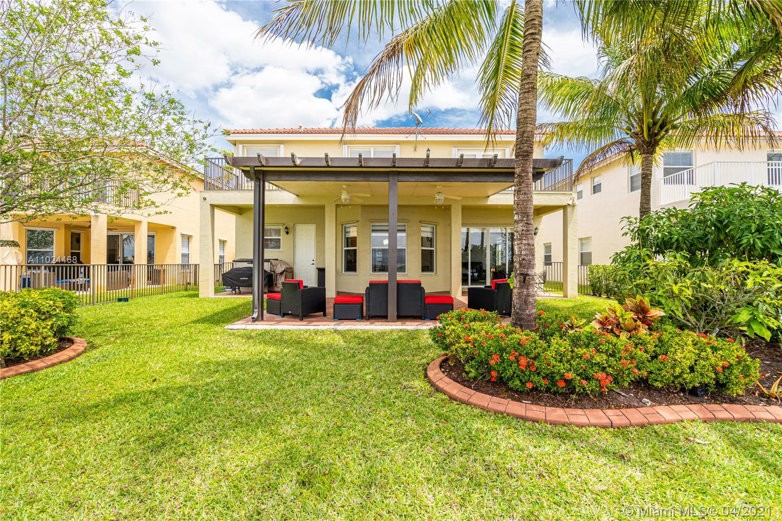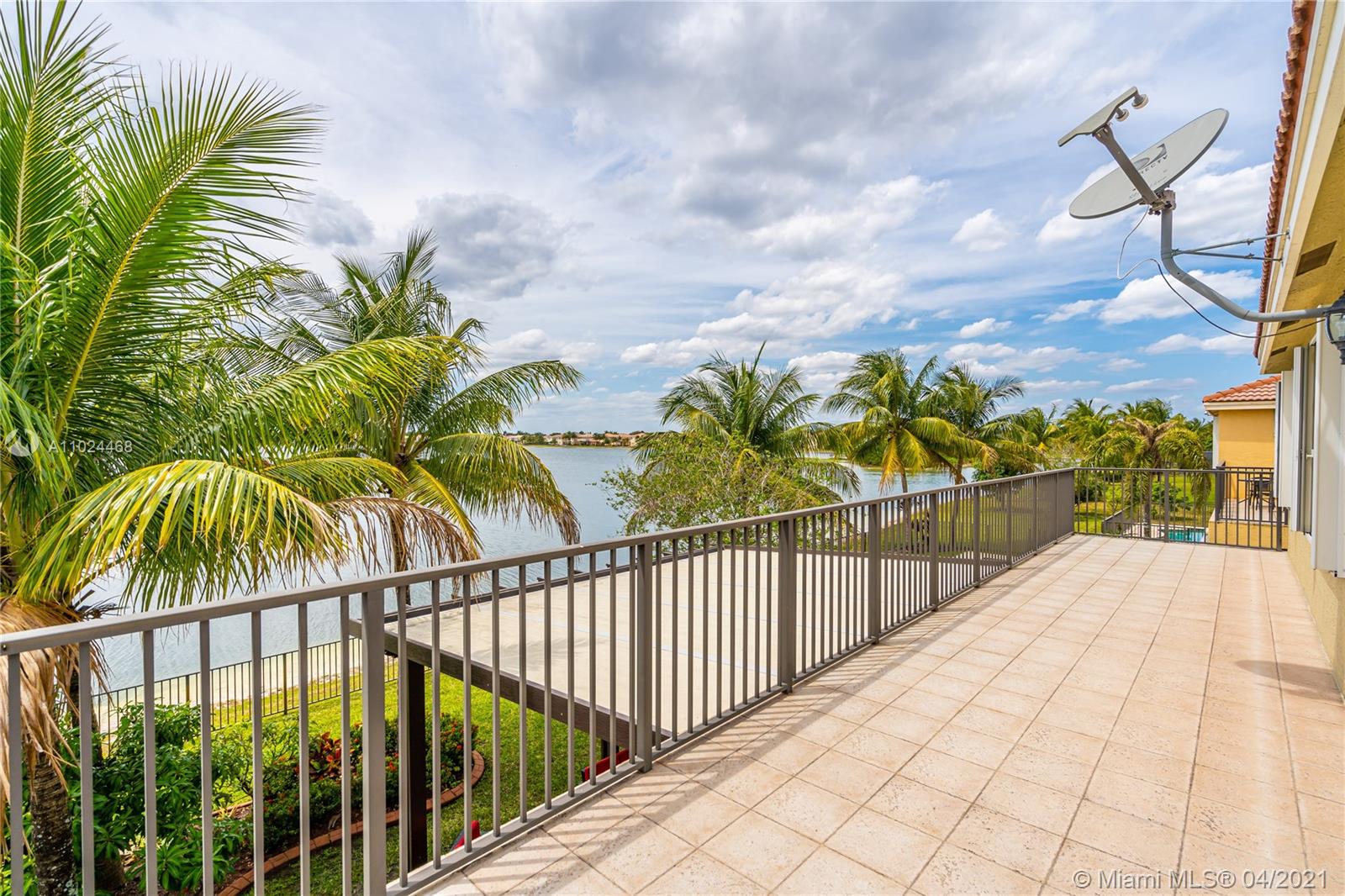 This gorgeous Lakefront home is located in a gated community. House is freshly painted. Stainless steel appliances with quartz counter tops and a Samsung SmartHub Refrigerator. Huge master suit with sitting area/nursery, master bath with two bathrooms and walk-thru shower. The Master bedroom also has a long balcony overlooking the beautiful lake. Laundry room is upstairs for easy access. This home has one full bedroom with full bathroom downstairs. Beautiful landscaping with coconut palms, avocado trees and mango trees. The house has a large paved pergola patio perfect for entertaining guests with beautiful sunset views that will guarantee to take your guests breath away. Close to I-75, grocery stores, shopping malls, and A-rated schools. This is a Must See!