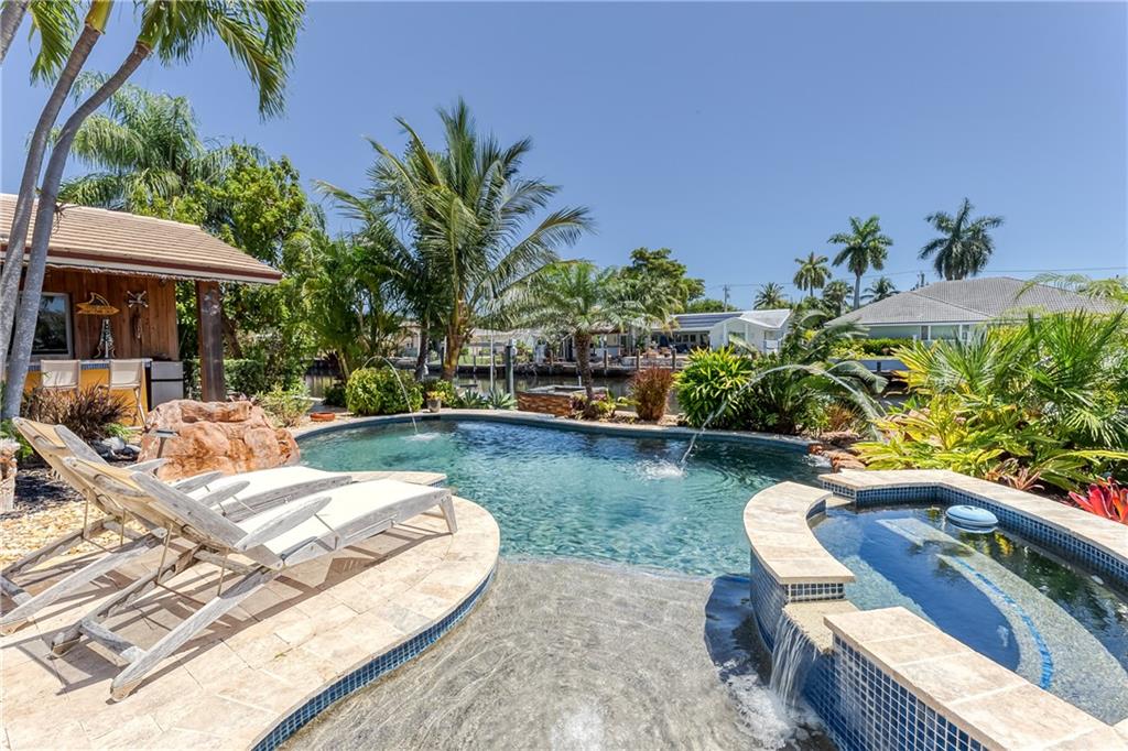 Exquisite 4 bedroom 2.5 bath point lot home with 195 feet of expansive water views in one of Fort Lauderdale's most sought after areas, the Landings. 5 minutes to the beach, shopping and much more. Entertainer's delight with inside over-sized game room, open kitchen and dining area, outside covered lanai, custom pool with spa, fountains and waterfall. Retreat to your own tropical paradise and enjoy South Florida living at its finest. Second floor privately located master bedroom boasts amazing panoramic scene from any location. Oversized master bath with large jacuzzi tub, separate shower and double sink/vanity area. Large custom walk-in master closet. This home is truly a unique one of a kind, rarely available gem, ready for your own personal touch.