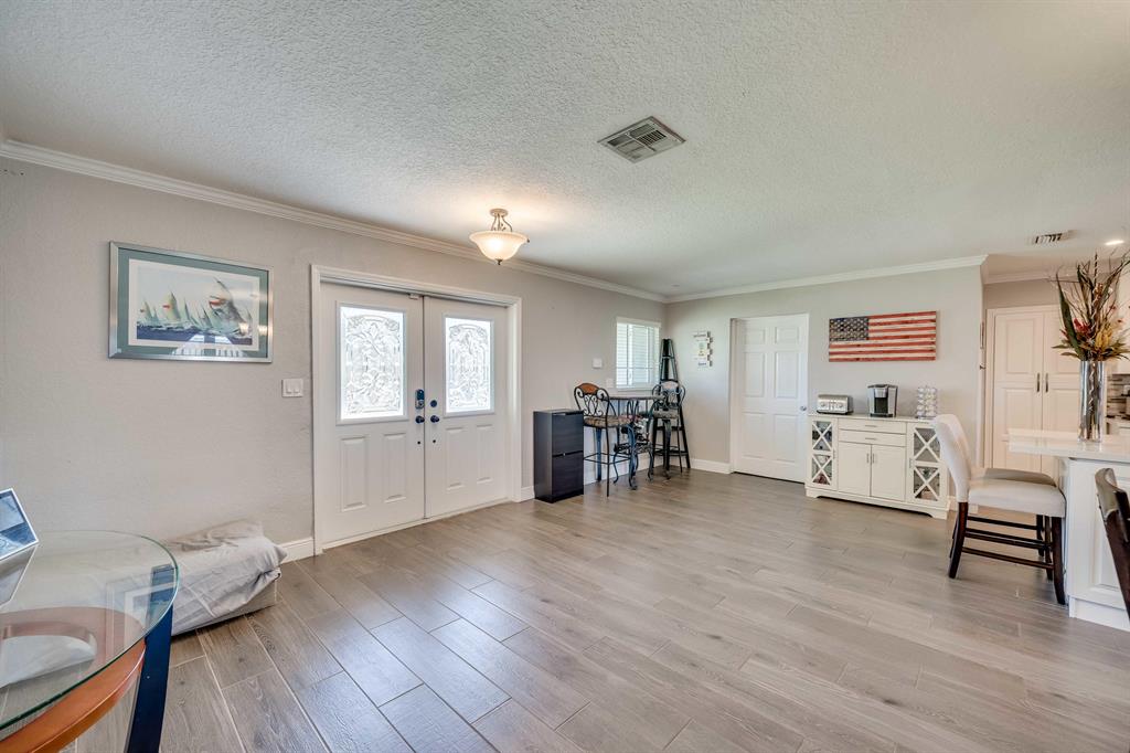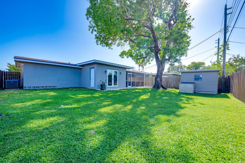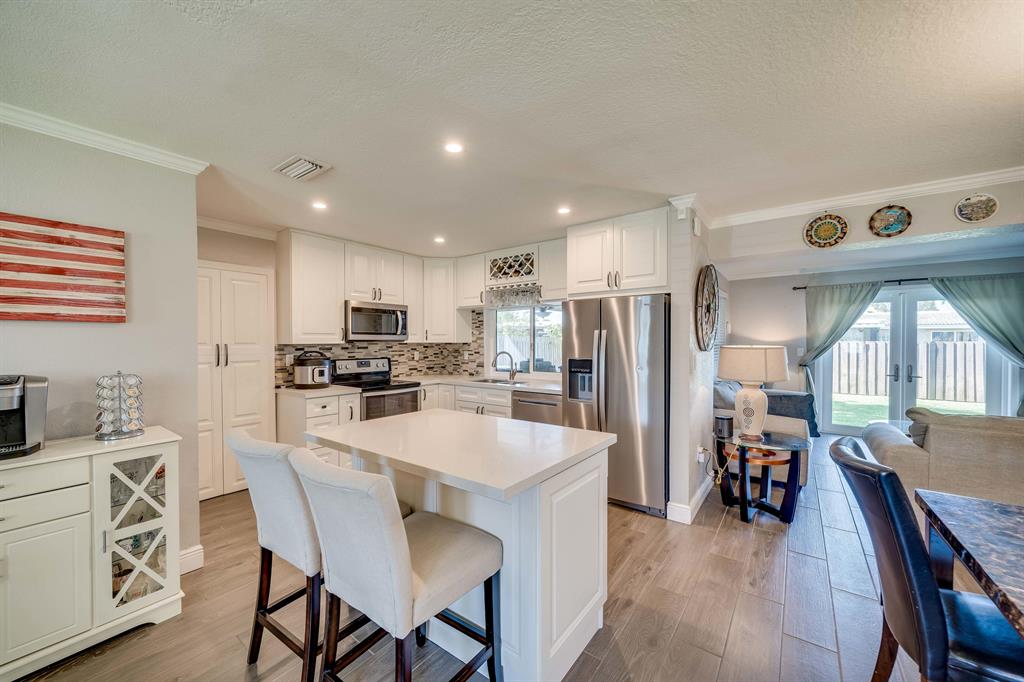 A must See! Completely renovated 3 bedroom home. Upgraded throughout with beautiful open kitchen, white cabinets and quartz countertops. Wood grain floor tile throughout. Hurricane windows and doors complete! Roof is 3 yrs old. Large walk in laundry room and pantry with space to add a bathroom. Garage is converted into master bedroom. Also includes, built in hook up for whole house generator and newer tankless water heater! Room for a pool in backyard & enclosed patio, great for entertaining! Large shed in backyard with new roof. A/C is 3 yrs old with UV light. This is in a NO HOA subdivision!