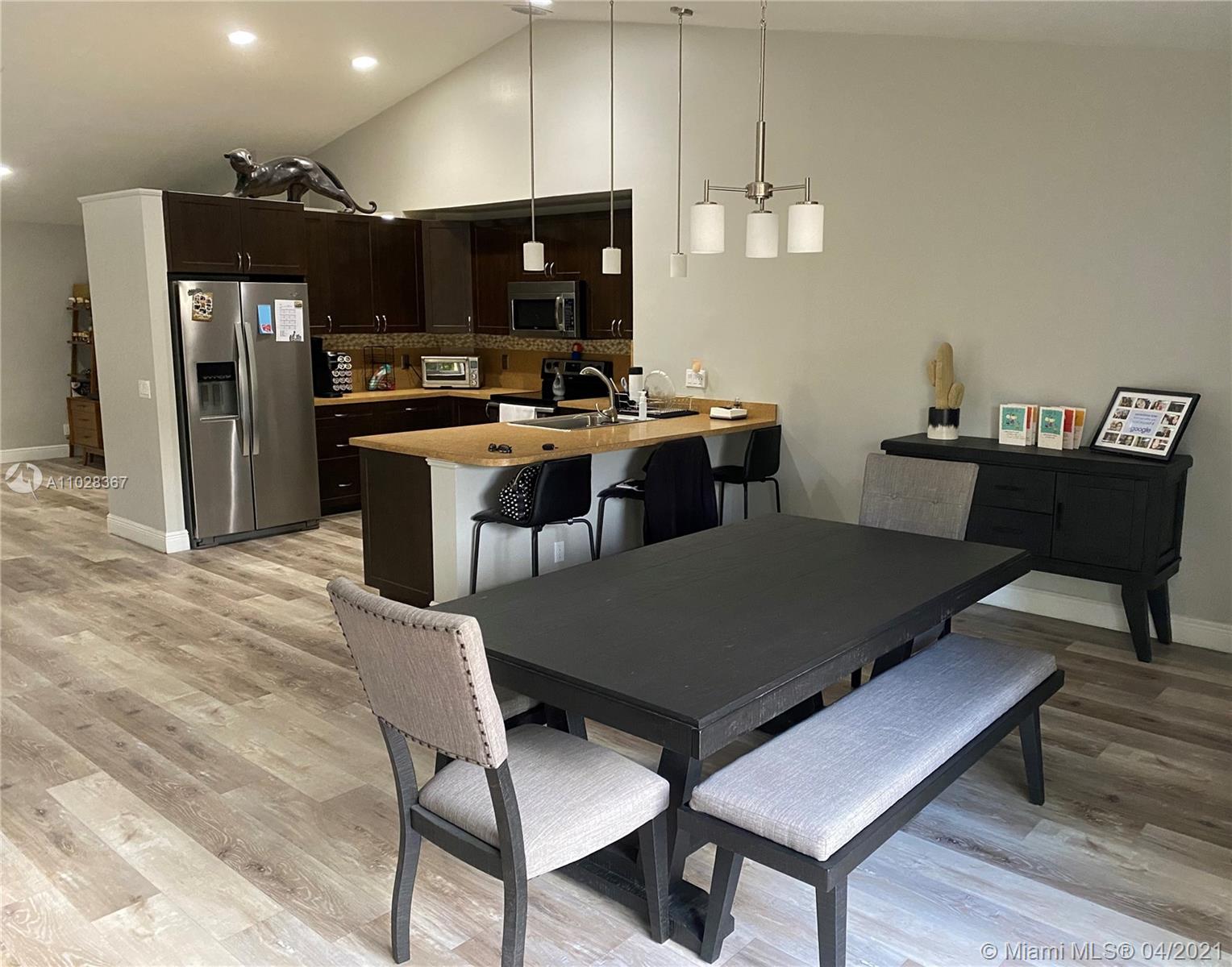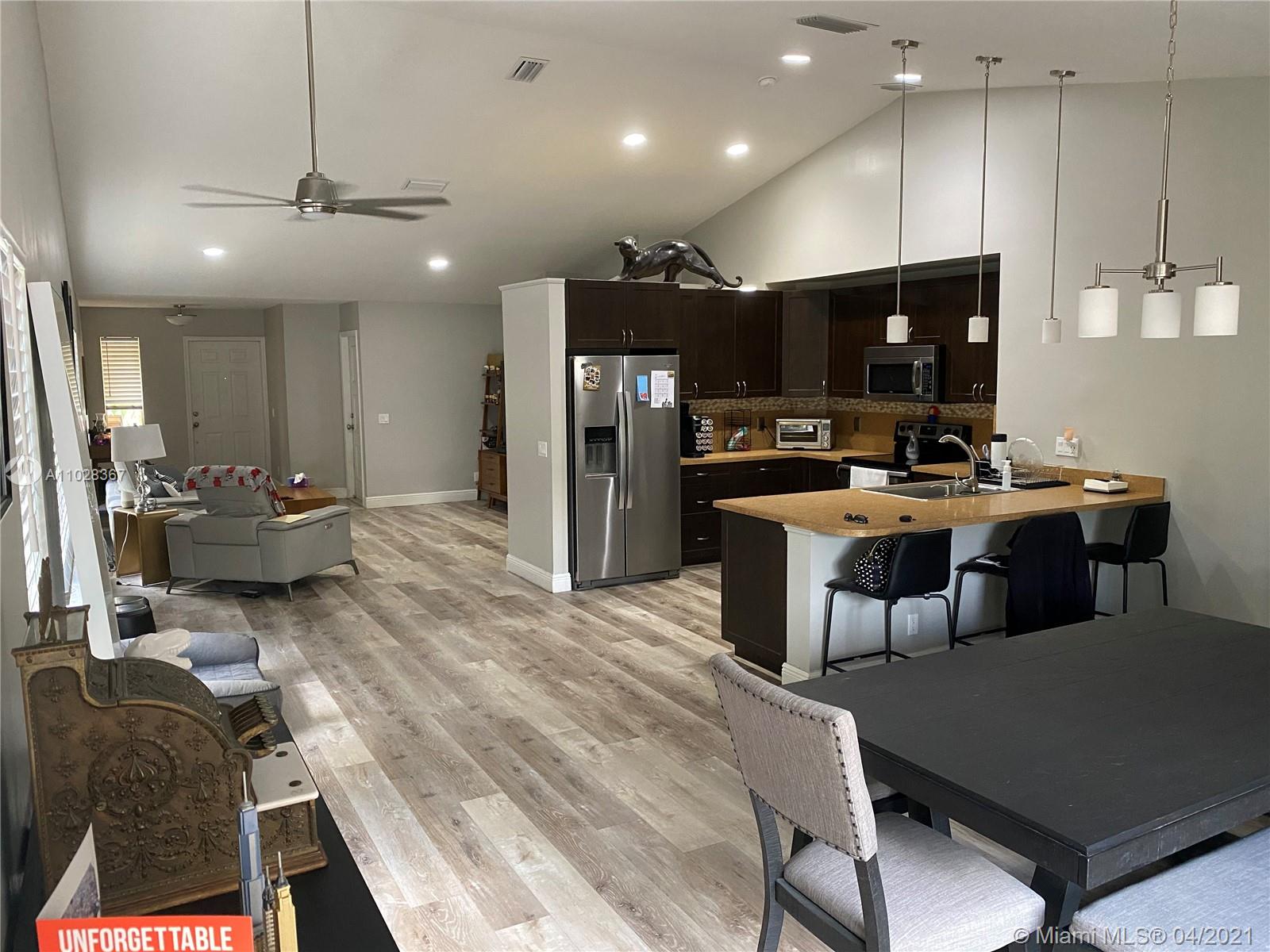 Beautifully upgraded open floor plan home in the quiet community of San Sabastian in Weston. This freshly painted home features 3 bedrooms, 2 full bathrooms, 2 car garage, stainless steel appliances, frontload washer & dryer on pedestal, fully fenced yard, new roof in 2020 with 25 yr transferable warranty, pull down attic ladder, Ring doorbell, Nest A/C thermostat, outdoor LED security lights, community pool and kids playground. Weston A+ schools and located close to major highways, restaurants and shopping. Call listing agent for showings.