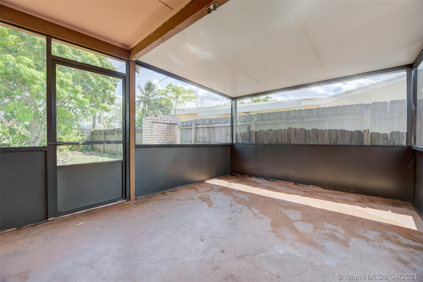 Beautiful 3/1 Ranch in the heart of Miramar w/ large front and backyard! Home features 3 Spacious Bedrooms and 1 Bathroom, Spacious Renovated Kitchen with Stainless Steel Appliances, Open Floor Plan w/ Living Room Dining room combo, Tile Floors throughout and Florida room! Enjoy the Spacious Fenced Backyard and Screened Porch perfect for entertaining.