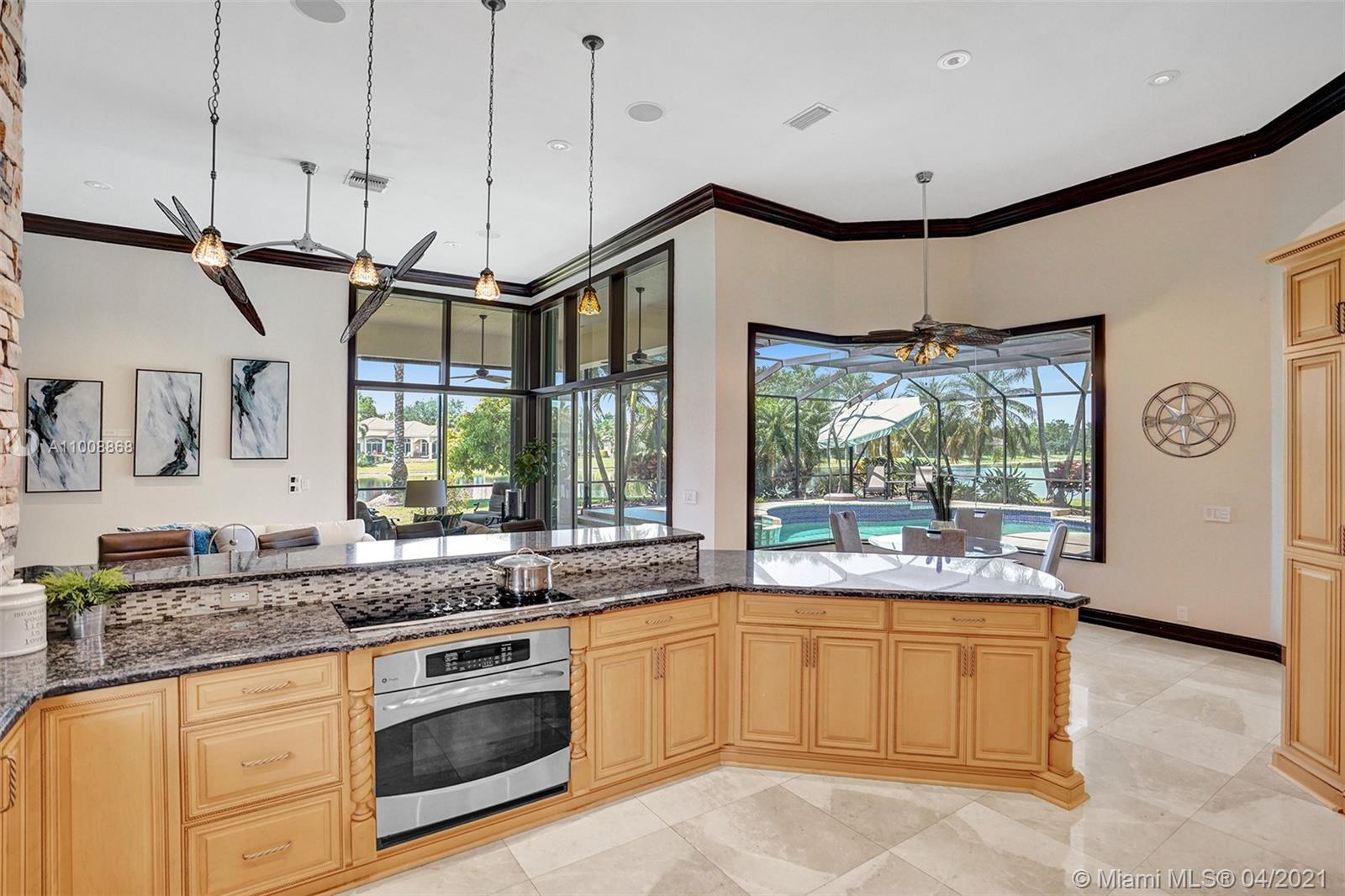 BRAND NEW ROOF 2020.UNIQUE 5 BR, 5 BA HOME W/PLAYROOM & OFFICE. SITUATED IN THE EXCLUSIVE GATED GOLF COMMUNITY OF WESTON HILLS - CYPRESS. OVERSIZED PREMIUM PIE-SHAPED OVER 1/2 ACRE LOT W/SPECTACULAR LAKE & SUNSET VIEWS. RESORT STYLE FREEFORM HEATED POOL W/RAISED SPA LARGE COVERED SCREENED PATIO. FEATURES GOURMET KITCHEN, GRANITE COUNTERTOPS, WOOD CABINETS, WALL OVEN, GRANITE & SS LINE APPLIANCES. NEW MARBLE FLOORING THROUGHOUT LIVING AREAS. MASTER BEDROOM WITH NEW FLOORING. RECENTLY RENOVATED MASTER BATH. ACCORDION SHUTTERS, CABANA BATH