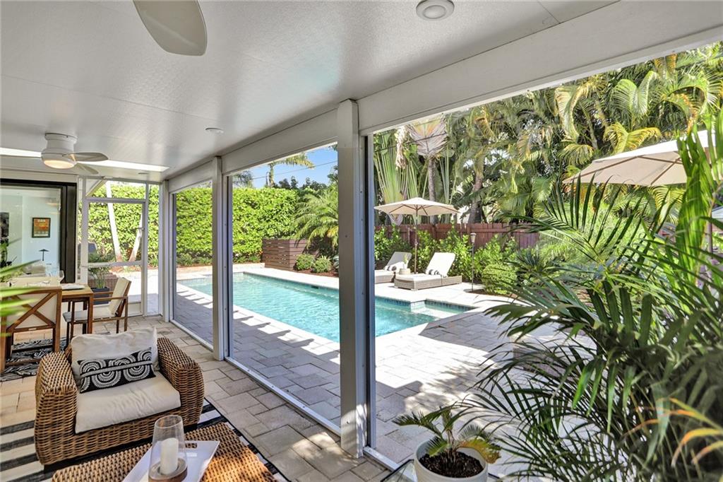 Looking for a fully renovated home that still has tons of mid-century character? Check out this tastefully modernized 2bd/2ba split floorplan pool home, located in the charming Poinsettia Heights neighborhood. Featuring a chef's kitchen with quartz countertops, soft close cabinetry, high-end stainless steel appliances, gas stove, pantry & even a wine fridge! Features include terrazzo floors, updated bathrooms, impact windows & doors throughout, fenced private yard with professional landscaping & lighting, large screened lanai, heated salt water pool, 2 carports - one with electric car hookup, whole house gas generator, tankless water heater, gas grill hookup and the list goes on! Minutes to shopping, restaurants, beach & Wilton Manors Call to see it today!