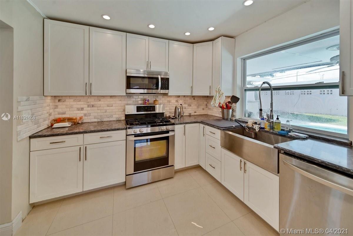 Your wait is over! This 2100 Sq. Ft. 4 bed 3 bath POOL home checks all the boxes. From the moment you enter.. So much will immediately draw your eye! The pool beckons across the large bright living area.. Great spacing with wide porcelain tile flooring throughout, which flows from the entrance way to the dining area and guest quarters on the north-side, with en suite and private entrance, and flows to the south side with 3 bedrooms including master suite with access to the pool area. The remodeled kitchen boasts ample cabinetry, kitchen nook.. think banquette or kids play space.. All redone baths, large utility room features new LG W&D. Roof 2018, most windows and doors hurricane rated. Cast iron pipes replaced in 2016. Two sheds. Privacy fenced. Many more fine touches. Showings Sun 4/18.