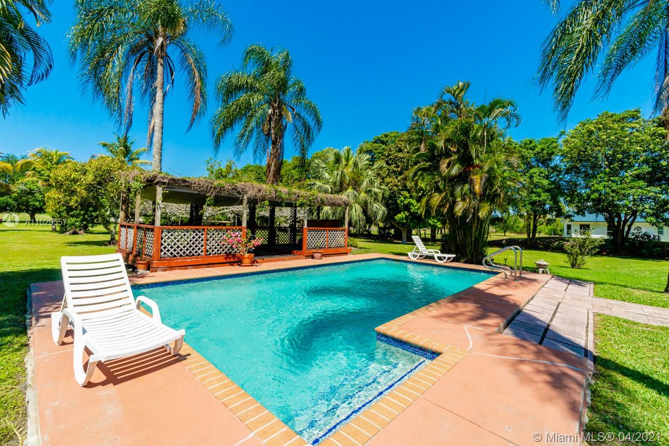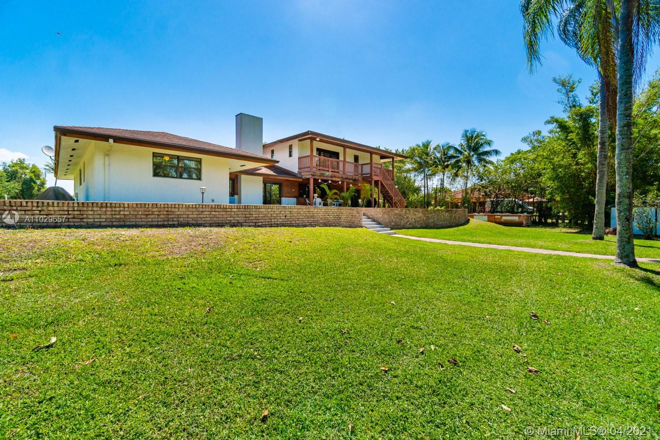 Private gates lead you into this impressive estate situated in Country Club Ranches. Original owner, custom-built ABOVE BASE FLOOD ELEVATION. with a circular driveway nestled on 2.5 acres, the main home with 3865 sq. ft. features volume ceilings, skylights, solar panels, wood-burning fireplace, showcasing 4 bedrooms, 3 full baths, one of the bathrooms is a full cabana bath, plus two additional bonus rooms home office-library-den. Spacious backyard made for entertainment includes tropical fruit trees, Master bedroom with stunning views from the 2nd story deck of the grounds, pool, and gazebo. Gives you the feeling of country living with city convenience only 5 minutes from I-75, 20 minutes from Fort Lauderdale, and 30 minutes from Miami. No HOA fees.