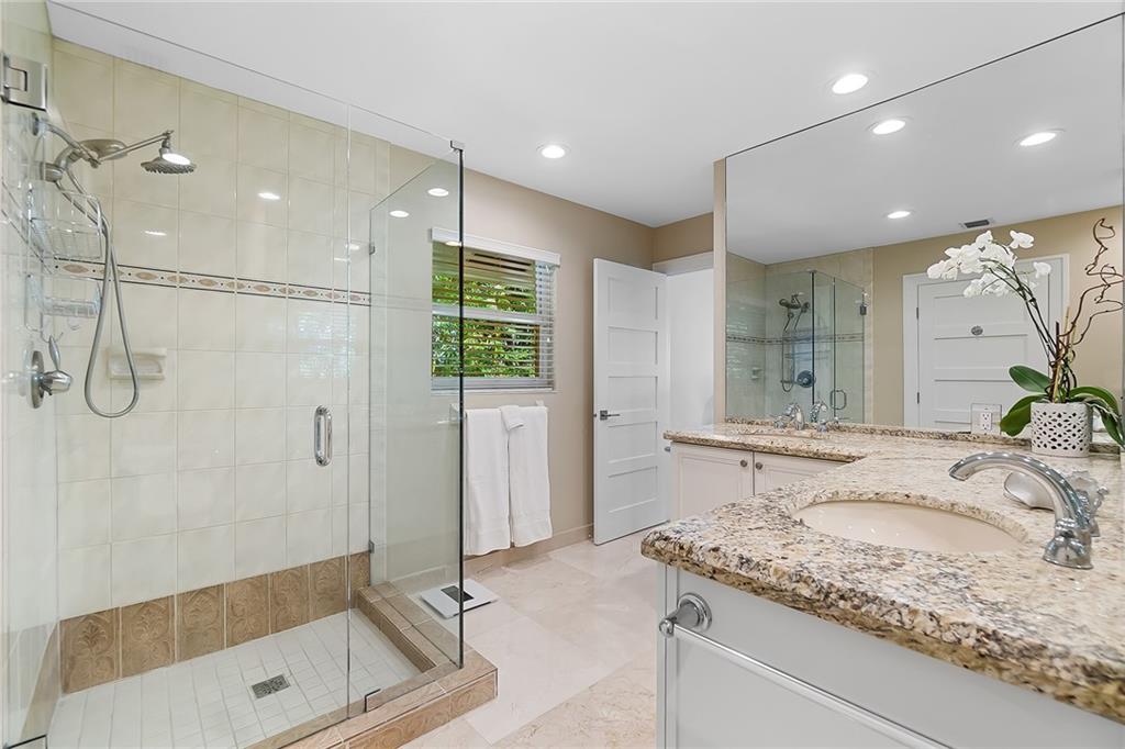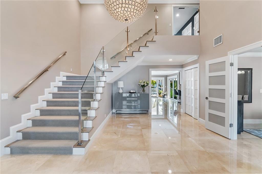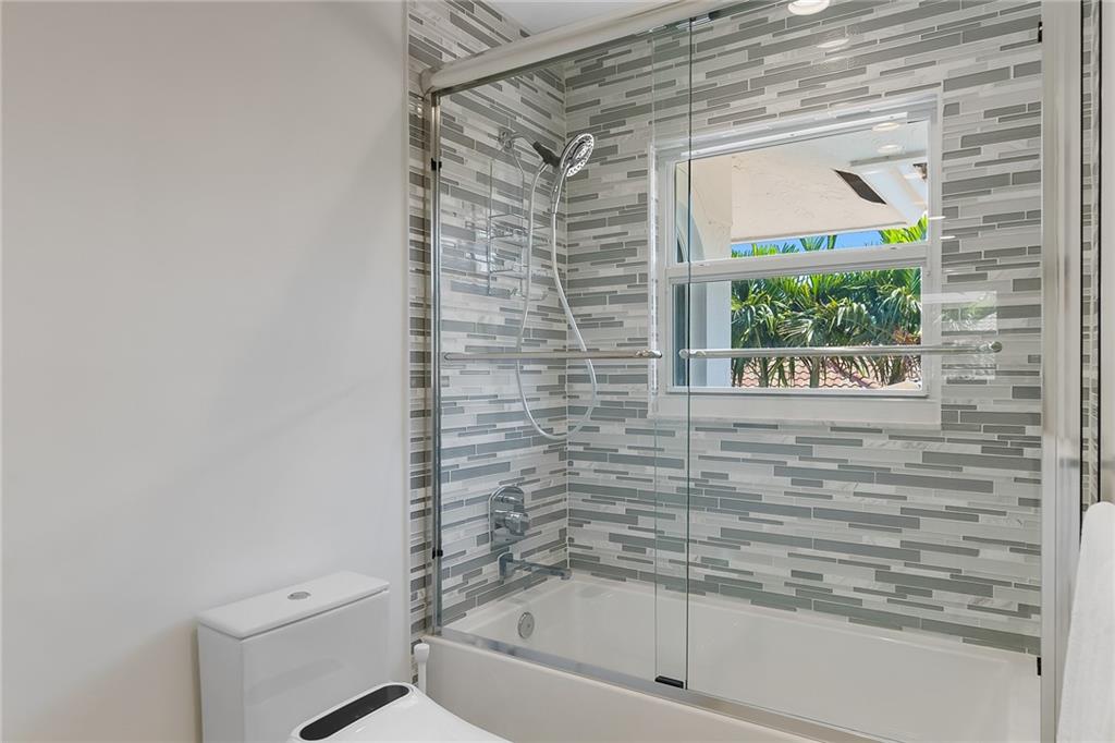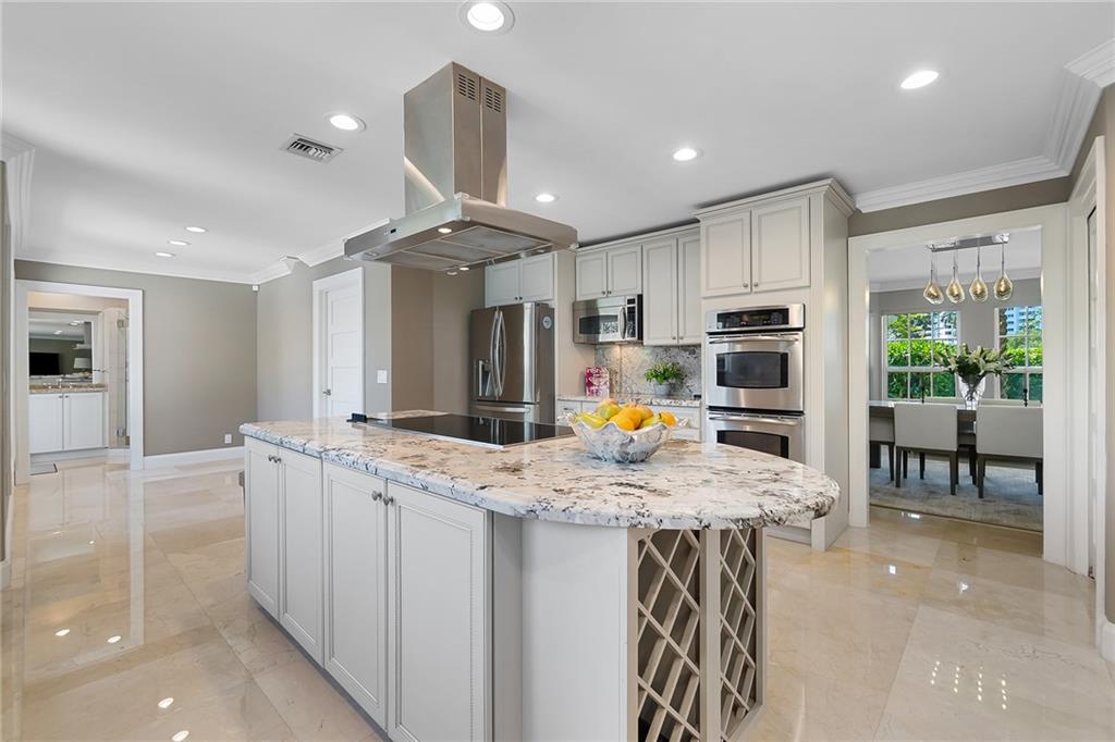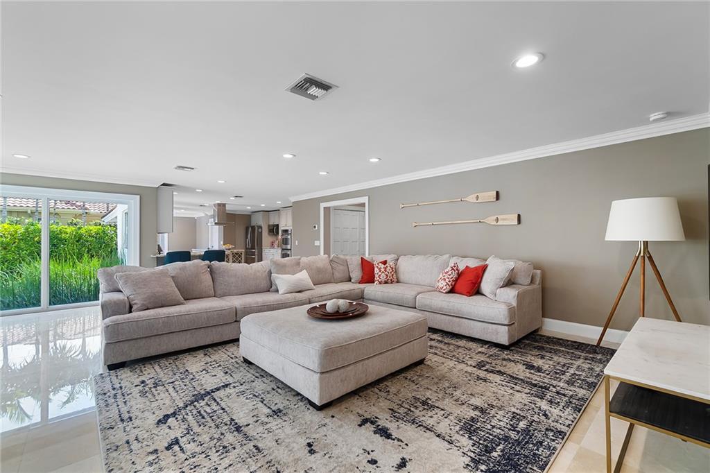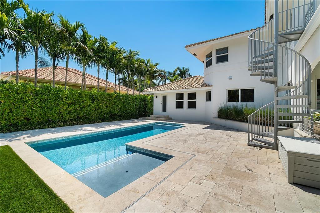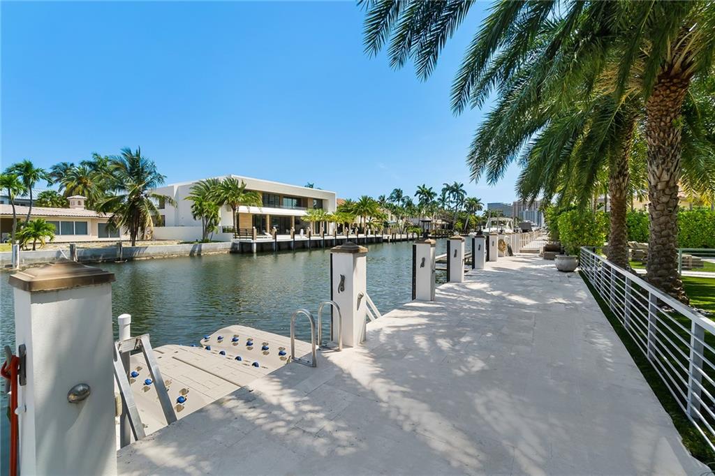 Beautifully remodeled home located on an oversized waterfront lot in the prestigious secure & guarded Seven Isles community. This home offers a bright and open floor-plan, large open kitchen features include double oven, Island with cooktop & hood and eat in area! Separate formal dining room, 3 bedrooms on first floor, one currently used as home office, master suite on second floor with huge closet, French doors to a private roof top terrace, and a spa like master bathroom. Additional en-suite bedroom on second floor. An oversized great room with double set of French doors opening to a fabulous covered patio, stunning pool area including an outdoor summer kitchen with a new 100ft dock/seawall with a 12000 lb boat lift!! Lushly landscaped for privacy with Pool and water views thru-out home!