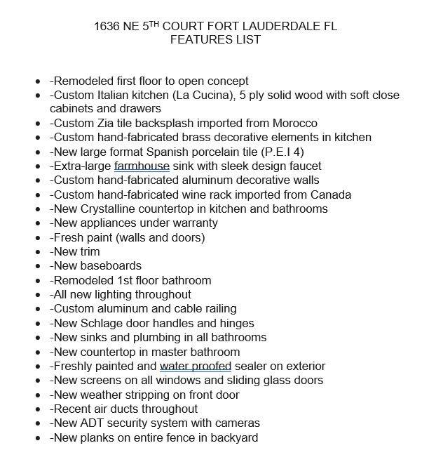 Corner FEE SIMPLE unit in the middle of Victoria Park on a tree lined street. No expenses spared in this newly remodeled designer townhouse including beautiful large flooring, custom aluminum/cable railing, freshly painted walls, new baseboards and trim, new modern staircase. The first floor flawlessly combines indoor living, dining, and outdoor entertaining. 2nd Floor has 4 Bedrooms and top floor has a HUGE Loft style bedroom on top floor. Custom Italian kitchen with extra-large farmhouse sink and one of a kind backsplash, handmade brass trim, and crystalline countertops. Large private backyard. Large 3rd floor balconies w/ views to downtown and green treetops. Victoria Park blocks from Downtown less than 2 miles to the ocean and walking distance to Las Olas shops & Restaurants