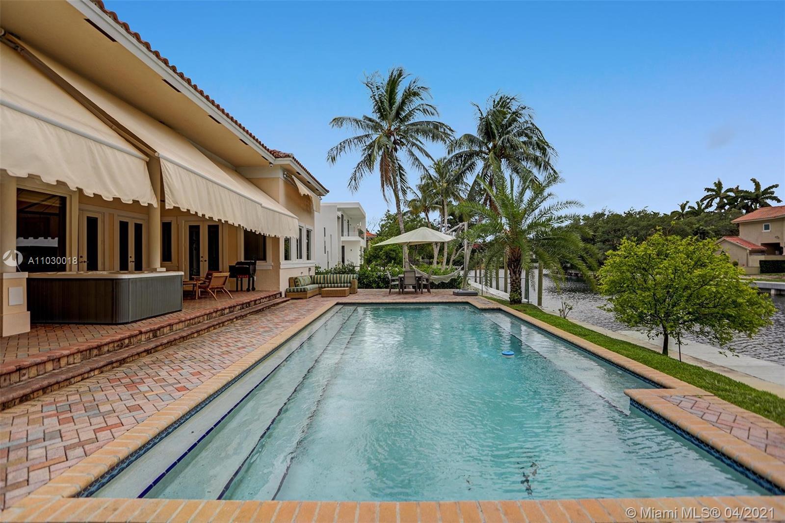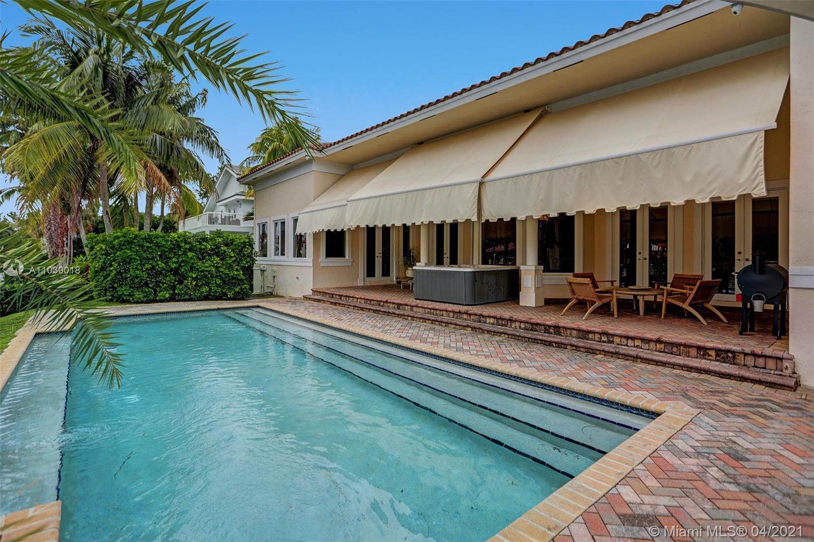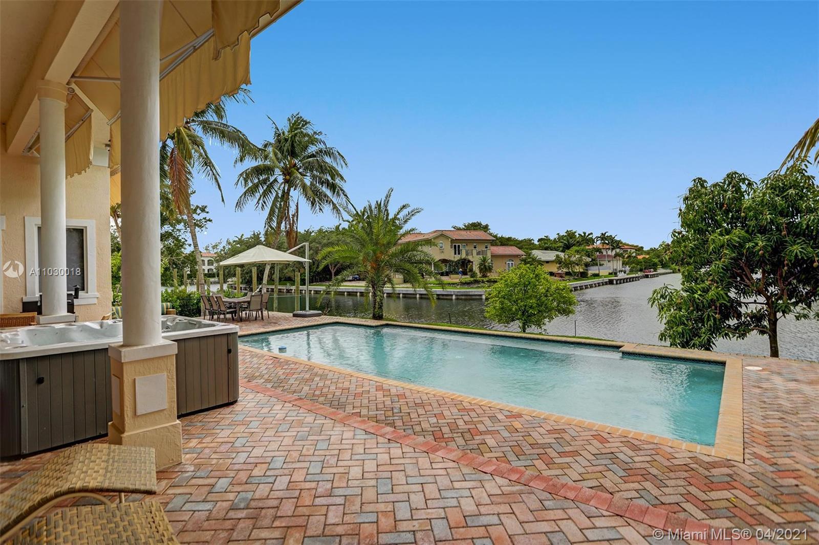 STUNNING 2-story waterfront with amazing SUNSET VIEW in a exclusive guard gated at Coral Gables By The Sea.Enjoy the the fabulous split floor plan with Master Bedroom suite 1st floor and all 4 others bedrooms on the 2nd all wood floors.Spacious open kitchen with granite tops and top of the line Appliances.Entertain your guests or simply relax & enjoy the breathtaking serene protected waterfront views and pool from the covered patio.Two covered garage 2 cars each.Two large Storage Rooms,one of each side of the house.Paved circular driveway & 2X2cg.Seawall and dock.Solar energy paper work ready APROVED.Mango tree(best).Spa hot tub.