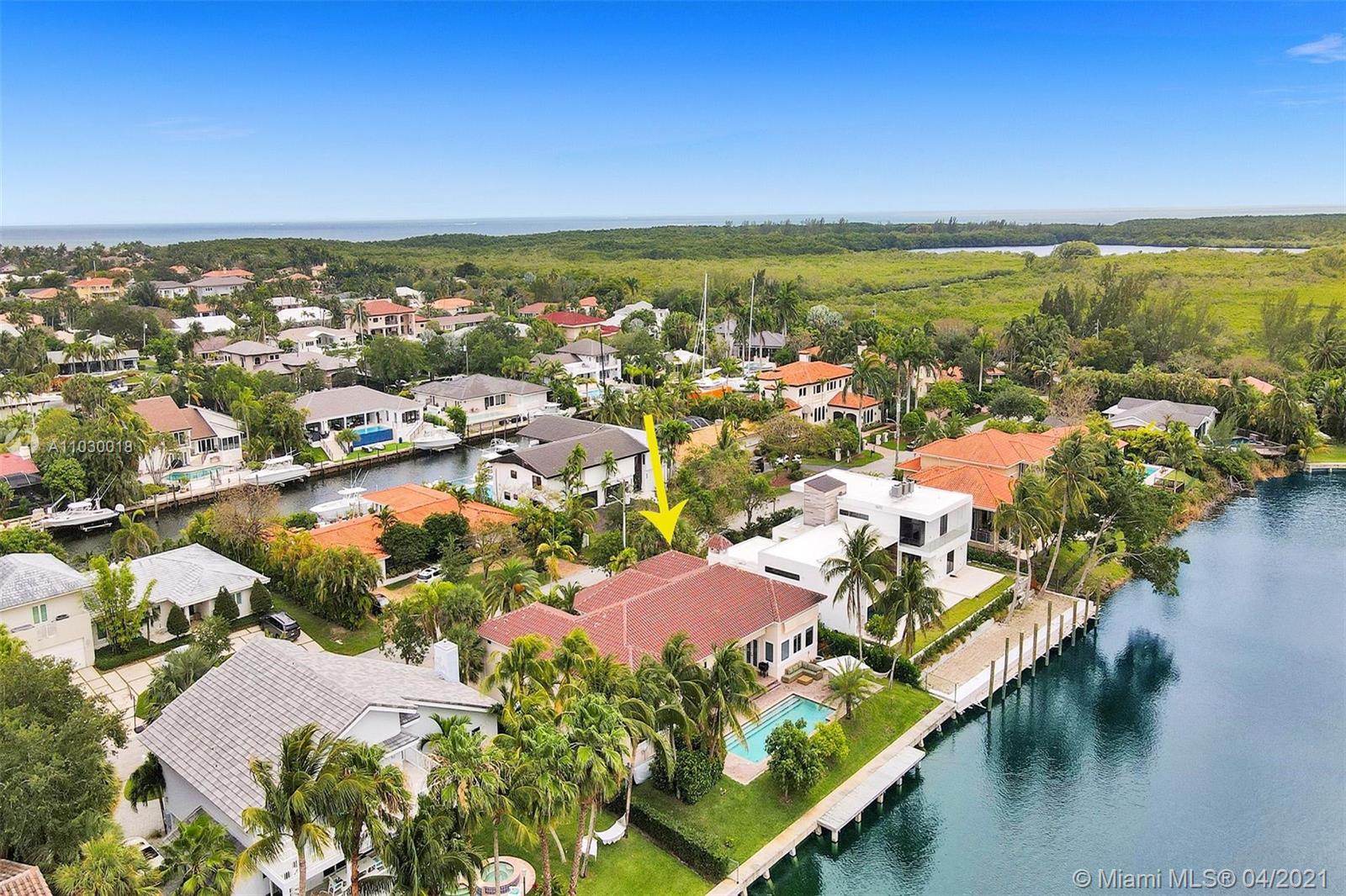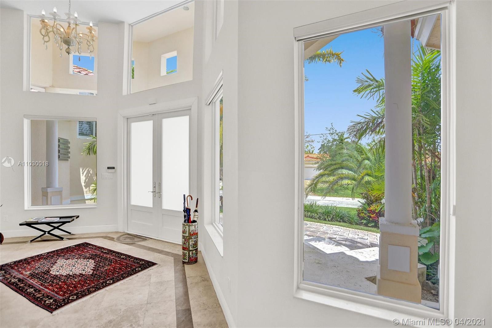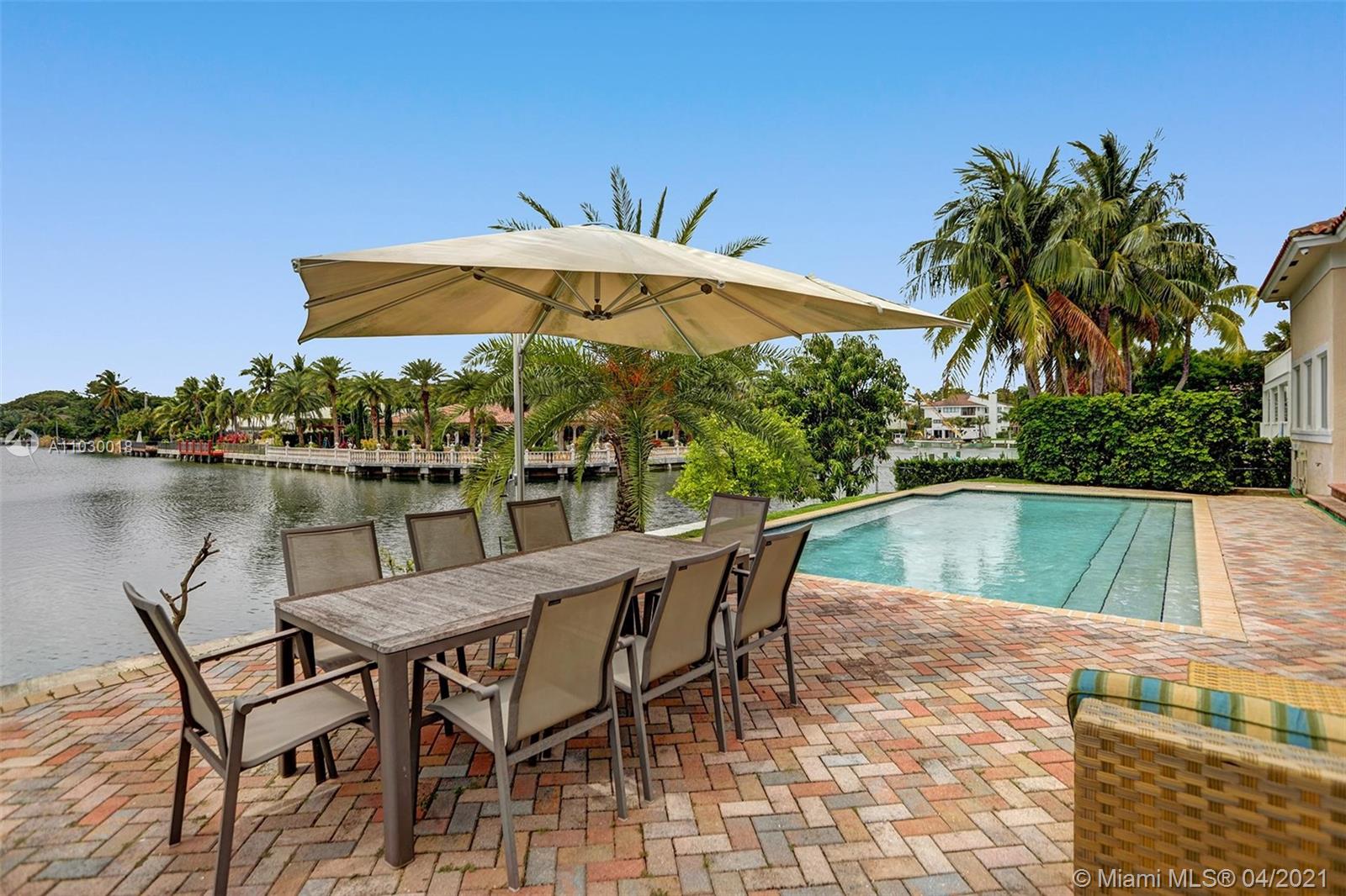 STUNNING 2-story waterfront with amazing SUNSET VIEW in a exclusive guard gated at Coral Gables By The Sea.Enjoy the the fabulous split floor plan with Master Bedroom suite 1st floor and all 4 others bedrooms on the 2nd all wood floors.Spacious open kitchen with granite tops and top of the line Appliances.Entertain your guests or simply relax & enjoy the breathtaking serene protected waterfront views and pool from the covered patio.Two covered garage 2 cars each.Two large Storage Rooms,one of each side of the house.Paved circular driveway & 2X2cg.Seawall and dock.Solar energy paper work ready APROVED.Mango tree(best).Spa hot tub.