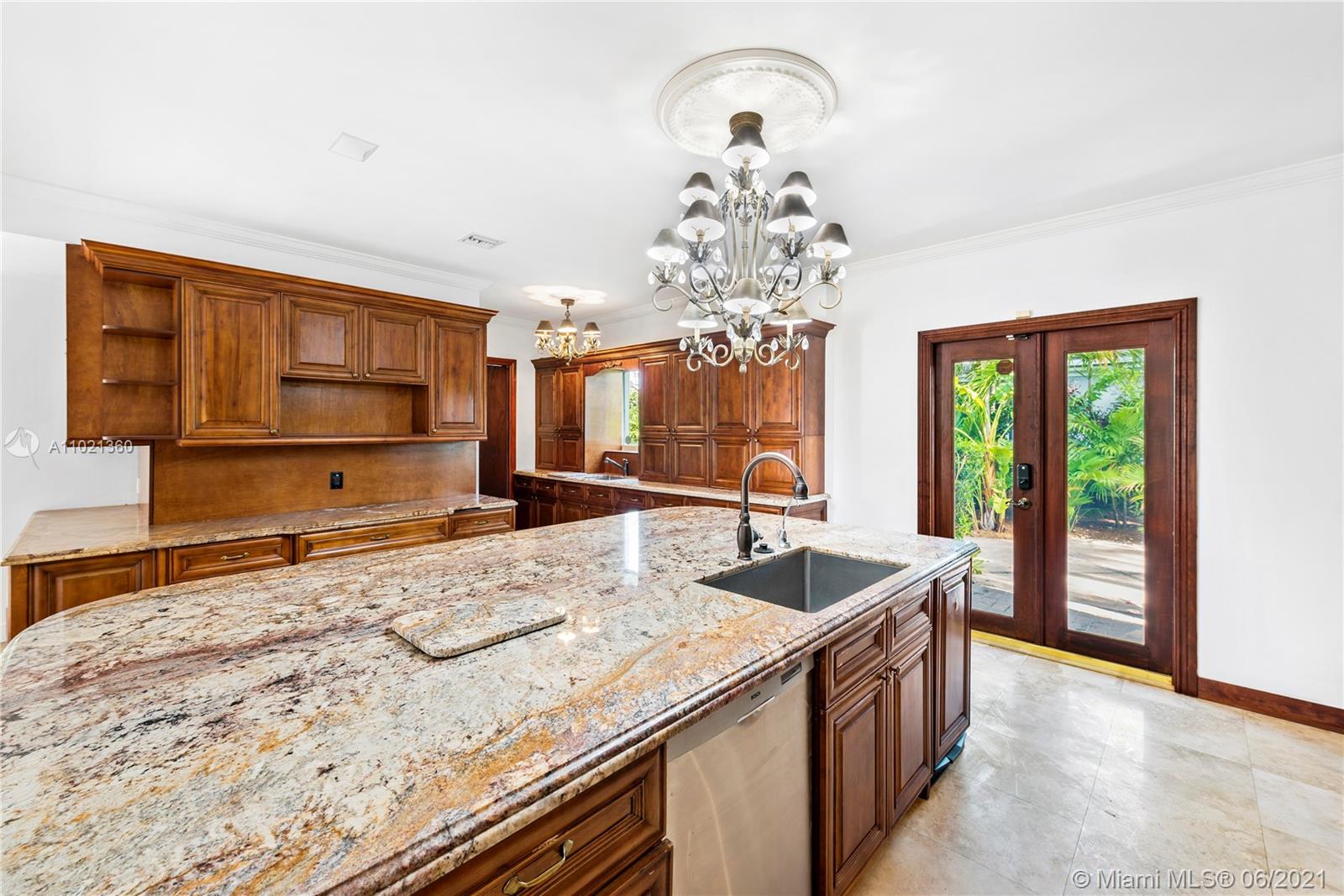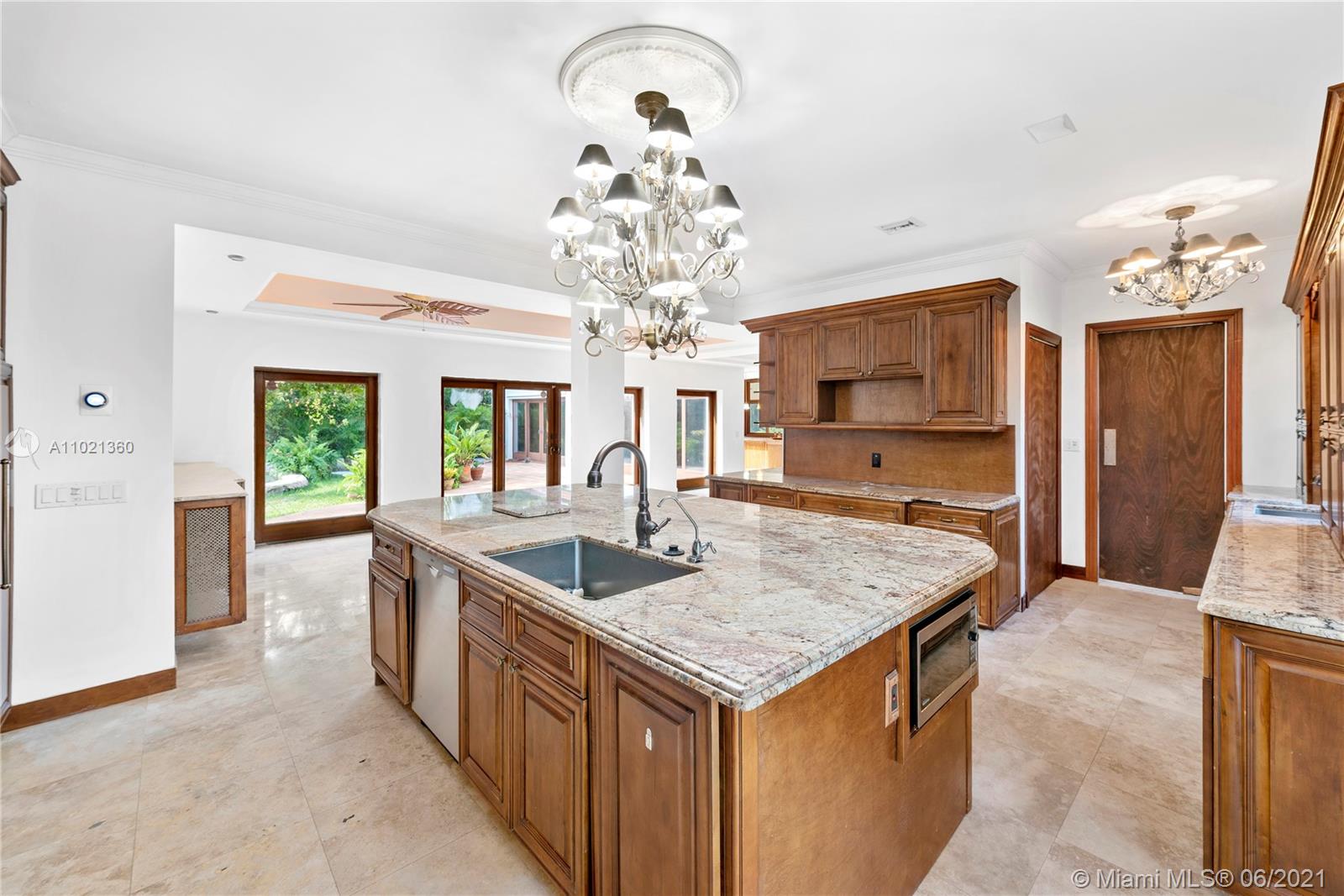 New Price! Miami Beach Golf Course Mini Estate, rarely available double lot (14250 SF) situated on world renowned La Gorce Golf Course greens w/ direct access by golf cart (members only). Spectacular back yard w/ tropical landscaping, towering palms & dazzling waterfall into pool. Floor-to-ceiling sliding doors lead you into an open layout w/ classic architectural design by Robert E. Collins. Ascend the staircase w/ amazing Mediterranean tile work, to a 3B w/ ensuite baths & a gorgeous terrace overlooking pool & country club. Other notable features: 1 BR downstairs, 2 car garage, w/ 2 BR apt, cabana bath adjacent to pool, huge gas kitchen w/ island & separate dining, Florida room w/ bar on adjusted sq. footage, elevator, w/ 6592 total sq ft. Covered carport & lots of parking.