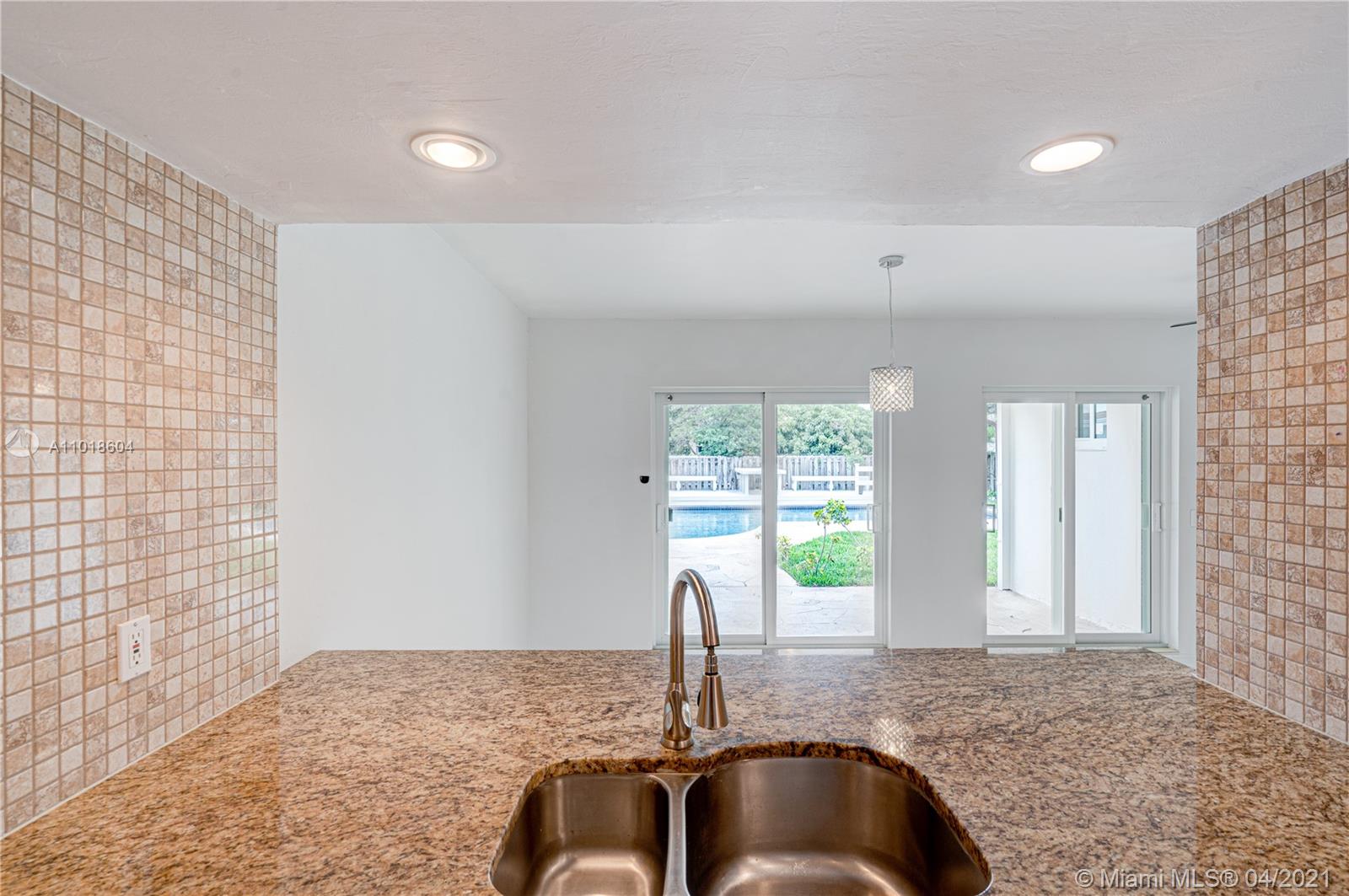 Beautiful and spacious pool home in Hollywood Hills. It has high impact windows and doors, tile flooring throughout, newer bathrooms, new kitchen cabinets with granite countertops, new dishwasher, fresh paint. The roof and AC are from 2014. Backyard is all fenced in and it has a wood deck next to the pool where you can enjoy happy hours or dining al fresco. Great paved area with a basketball hoop for kids to play. Yard has a sprinkling system. This home is clean and ready to move in.
