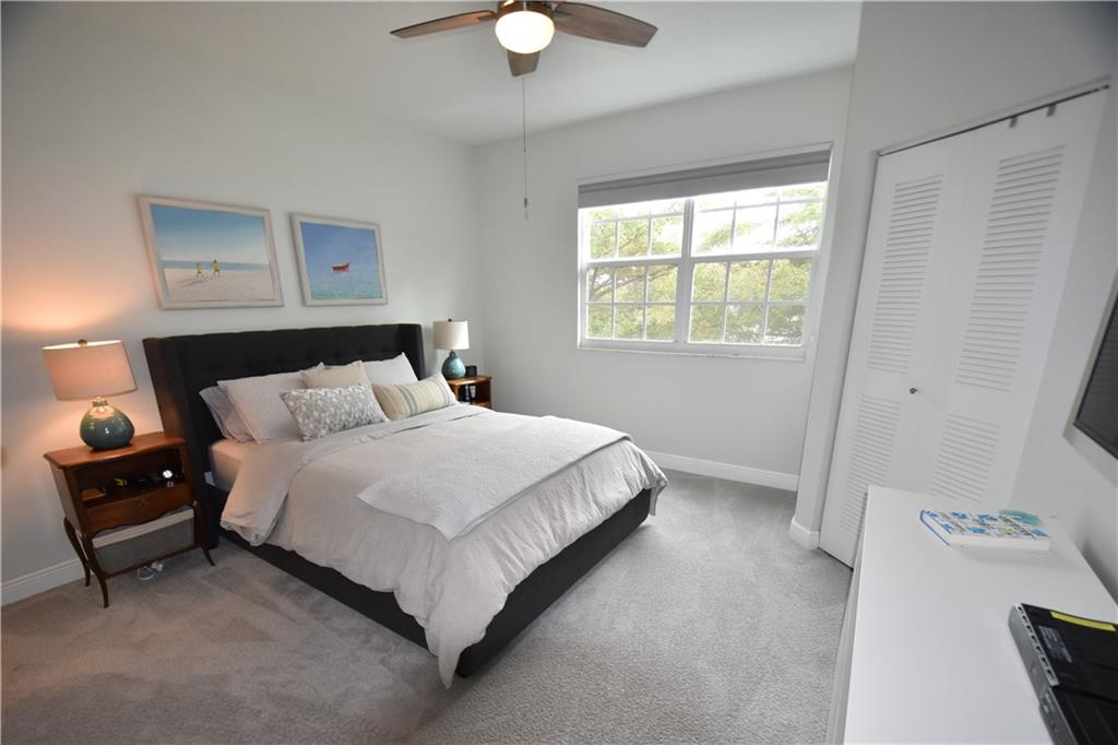 Don't miss out on this rare opportunity to live in the desirable gated community of San Remo. You will be impressed with the many upgrades in this home starting with the captivating and expansive lake view not only from your screened in lanai but also your family room and master bedroom. This home has the added value of hurricane impact glass windows as well as custom made hurricane shutters for that extra peace of mind. Impress family and friends with the wide plank tile-wood flooring and upgraded carpet, quartz countertops throughout w/soft close and modern fixtures, SS appliances, A/C (2018), water heater, new soothing grey paint throughout, custom blinds and built in closets in both bedrooms plus the garage.