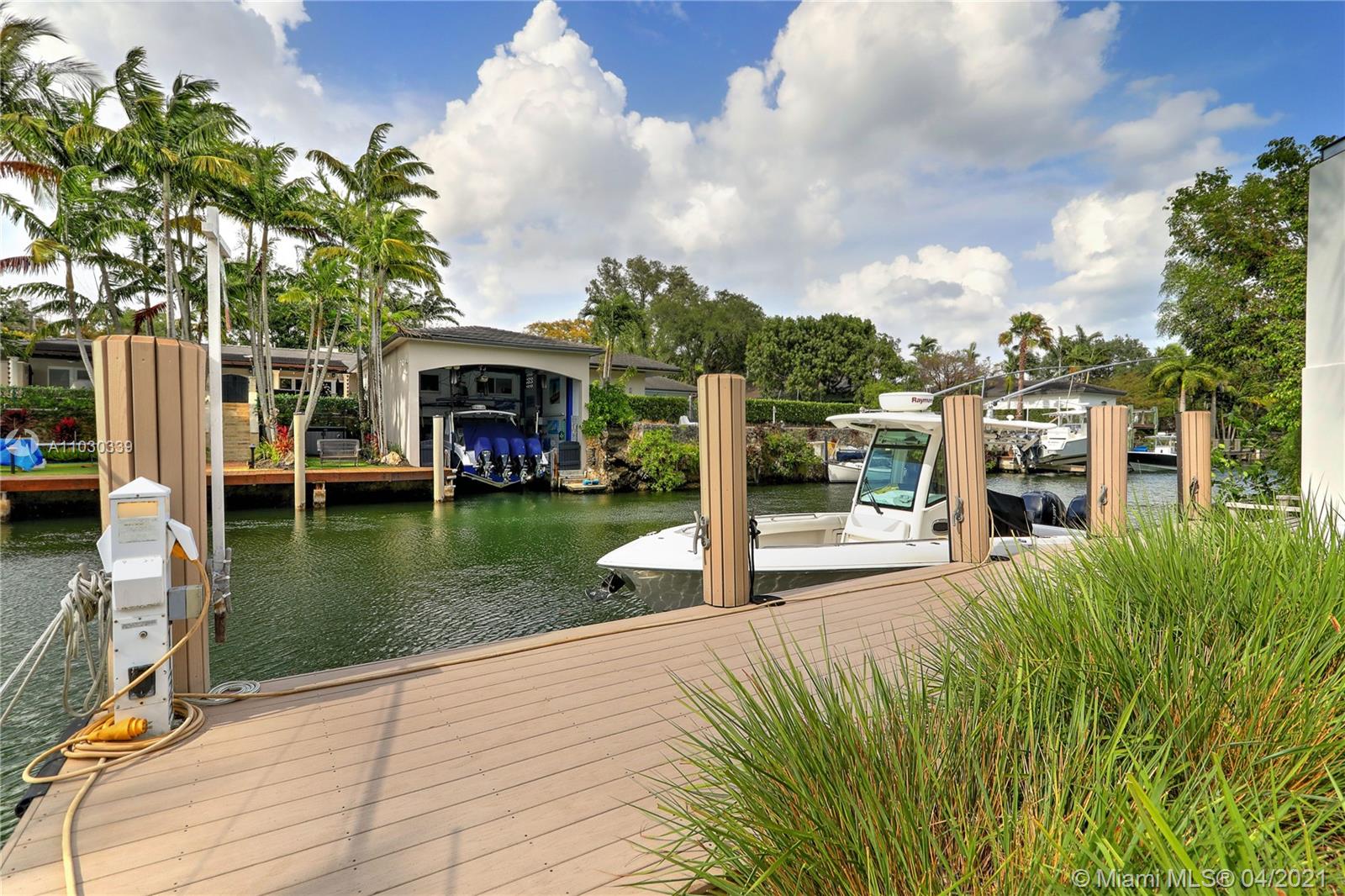 Ever dream of going on a sunset cruise from the comfort of your home? Well this is it! An exquisite gated 5 bed/4 bath pool home fully renovated in 2017 w/the Mahi canal of the South Coral Gables waterway as its backyard. Equipped w/a private dock & 75' of water frontage + a cut out, it has serene details throughout. A Mahogany impact door greets you to a charming sitting area & a vaulted ceiling Family Room. All bedrooms have walk-ins. The 1st floor has a Master bedroom w/patio pool deck access & 2 walk-ins + 2 more bedrooms w/1 as an en-suite. On the 2nd floor are 2 bedrooms w/a Jack & Jill bath w/separate shower & soaker tub. Others: PGT impact windows, Subzero/Wolf appliances, custom kitchen/bath cabinets, marble counters, 2-car garage, a laundry room & Azek flooring for dock/patio.