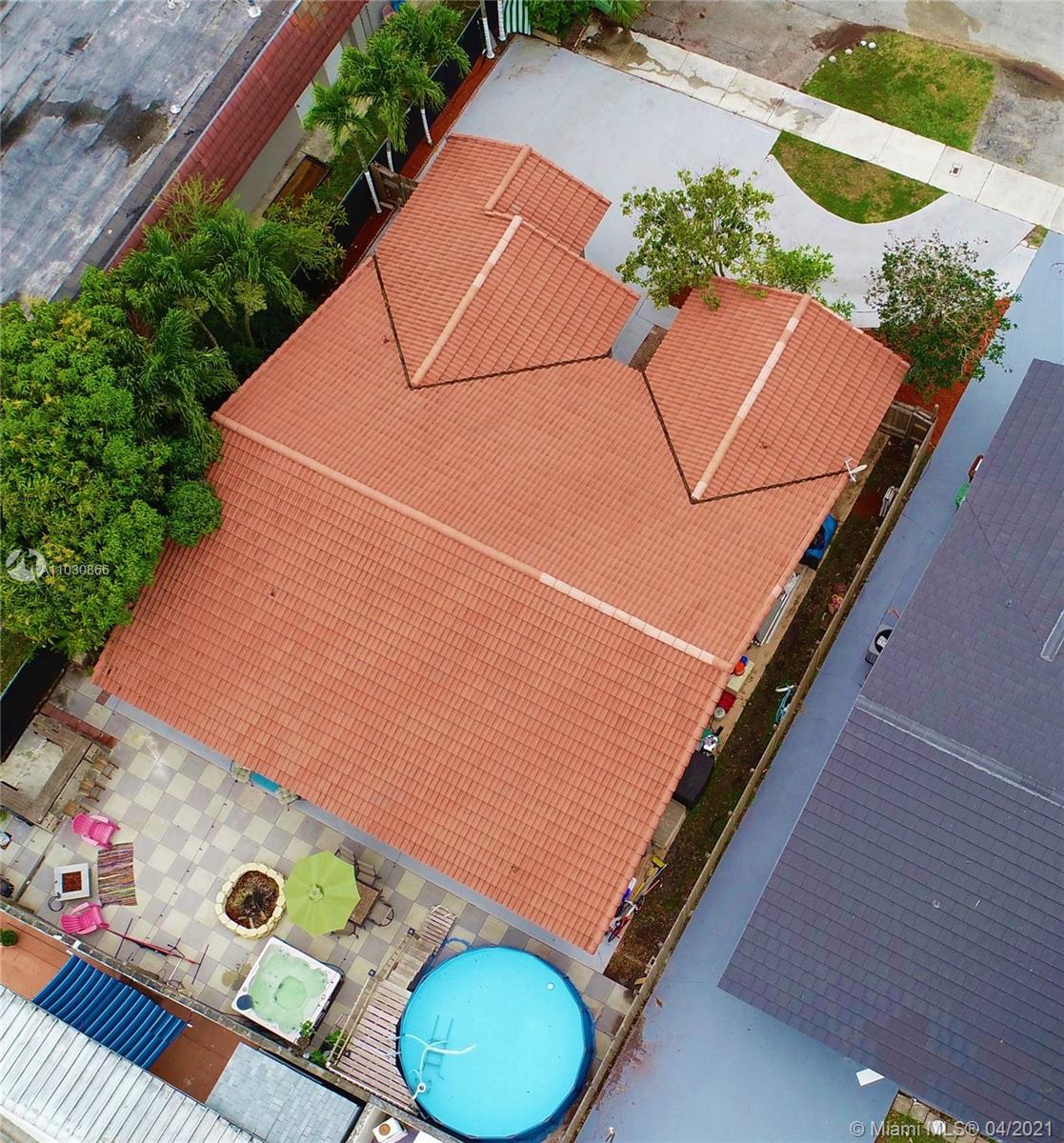 Wonderfully maintained home featuring 3 bedrooms plus Den (can be turned into a 4th bedroom) & 2 baths. Great backyard has it all for entertaining! Covered terrace, above ground pool, jacuzzi, Bar & fire pit Garage has side door for private entrance through the patio, currently being used as office. Owner can remove wall if buyer wants to use as a garage or it can likely easily be turned into an efficiency (washer and dryer located inside garage). Lots of space for parking & located on a quiet dead-end street. Minutes away from the Gratigny Parkway, 826, walking distance to shops & near Miami Lakes. Great school district! Roof is 12 years old