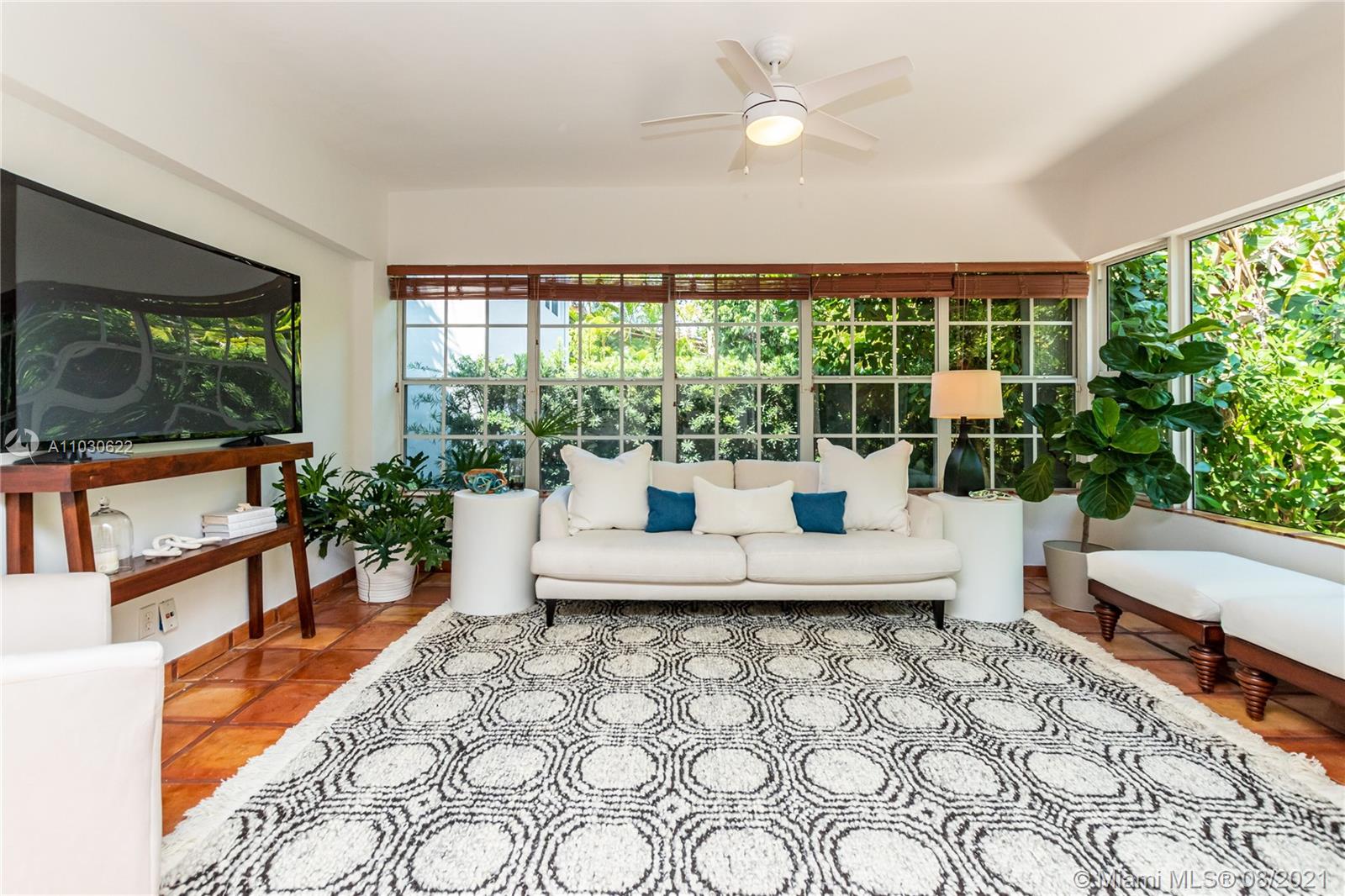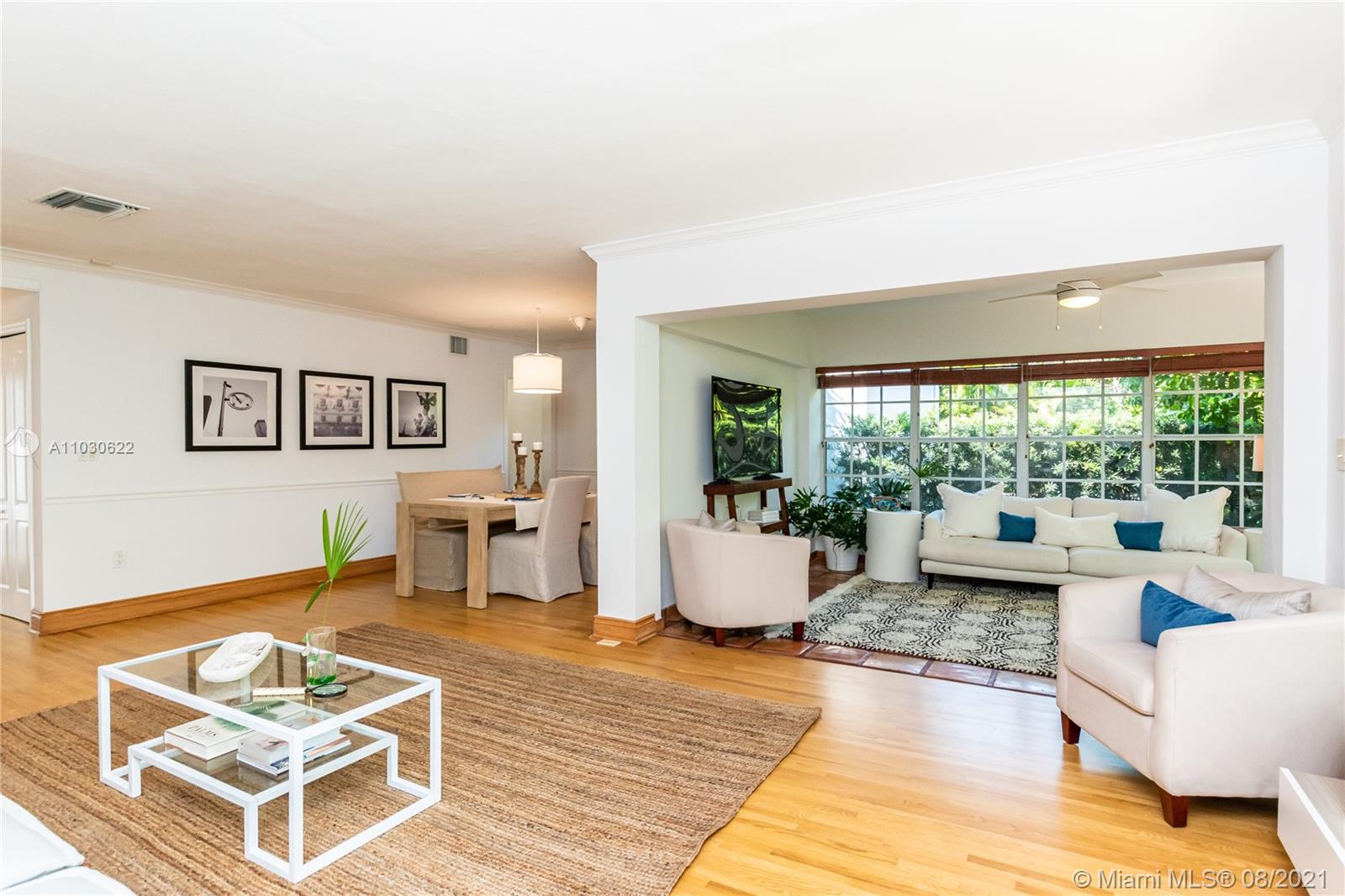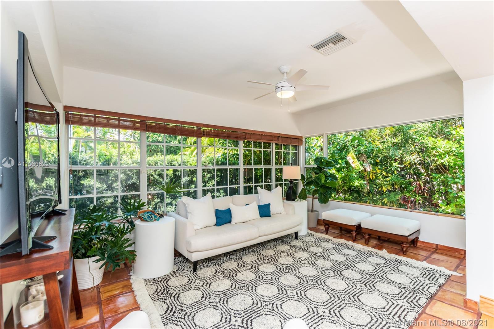 Southeast Gables Gem on Quiet, Tree-Canopied Street. This updated home has a lovely setting in a prime location, centered in a half-moon formed by South Miami, Coral Gables & Coconut Grove. The bi-level layout houses 2 bedrooms + 1 bath on the upper level, w/2 additional bedrooms & 2 baths on the lower level. The open concept creates a space that feels much larger than the floorplan suggests. Sunshine pours thru wall-to-wall & floor-to-ceiling windows. The bright, renovated kitchen w/a breakfast nook gleams w/stainless steel appliances and a crisp, white & aqua color palette. Recessed lighting, pristine light wood & creamy marble floors, a wrought-iron design stairway bannister, and terracotta patio tiles fashion warm decorative touches flowing from the interior to outdoor living spaces.