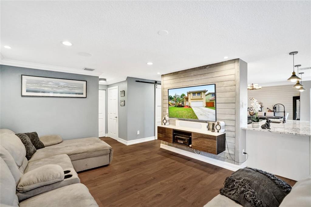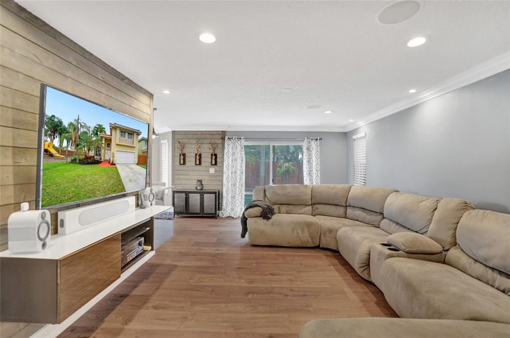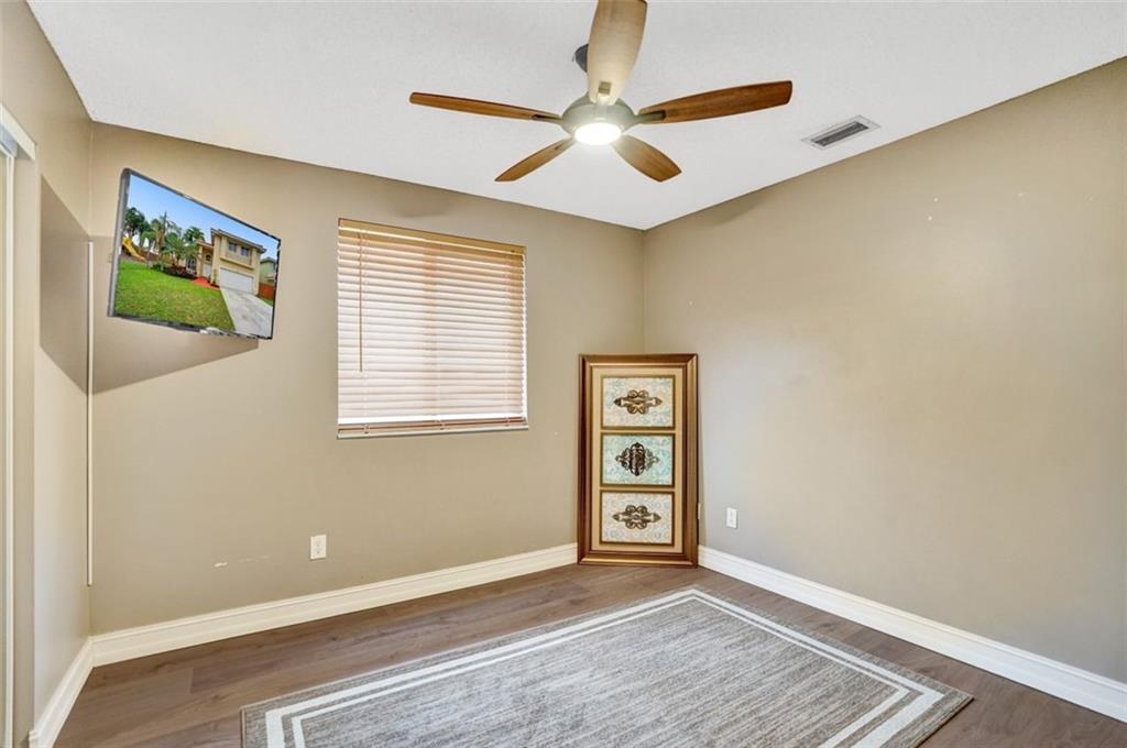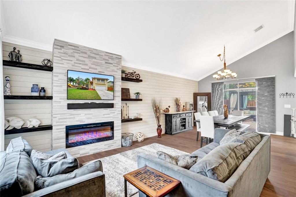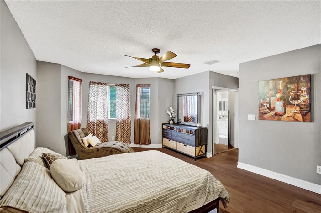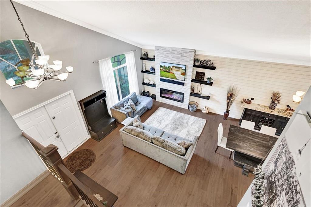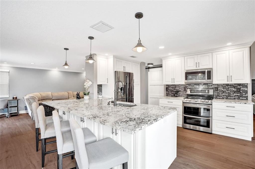 Beautifully updated 4 Bedroom 2.5 Bath Pool Home with a designer's touch! Warm and welcoming, this home offers an open concept updated kitchen w/ granite countertops, island w/seating & black stainless steel appliances. Beautiful plank flooring runs throughout the entire home, spacious high ceilings open to the second floor, boasting beautifully updated stairs and railing. Separate laundry room with stacked front load washer and dryer. Spacious master offers two walk-in closets with plenty of storage. Perfect for entertaining, your own backyard oasis features a fully fenced yard, pool, patio area with covered pergola gazebo, a covered cabana with hammock bed, bar, and BBQ area! Roof 2 years - Hurricane Shutters. Vista Filare is centrally located close to major highways, shopping, & dining!