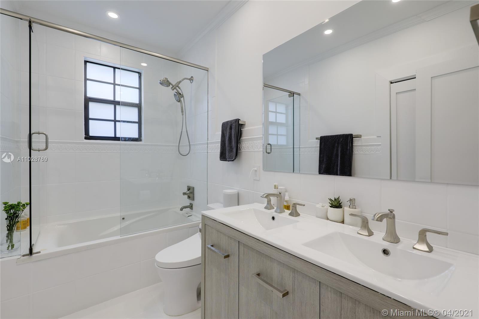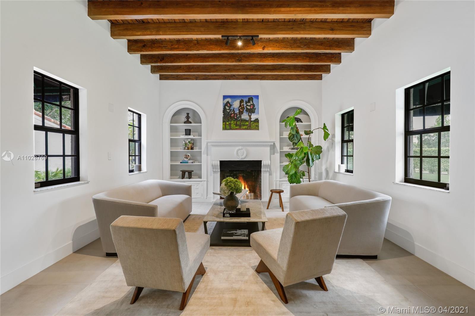 Stunning 2-story home fully renovated located on the corner of Alhambra Cr and Miller Rd. This home features formal living room w/wood-beamed high ceiling & wood-burning fireplace, formal dining, open kitchen w/quartz countertop, stainless steel appliances, & family room. Spanish tile throughout 1st floor, Oakwood upstairs. One bedroom & full bathroom located on 1st level. A bedroom on 2nd floor was converted into walking closet & added to the master bedroom. Hedged perimeter. 2 courtyards & large backyard with space for a pool. 2 car garage w/electric door, driveway for 4 cars. This is a turnkey home w/ option to add another bathroom on 2nd bedroom (plans & approved permit available). Walking distance to the University of Miami, minutes from Miracle Mile, shopping & restaurants.