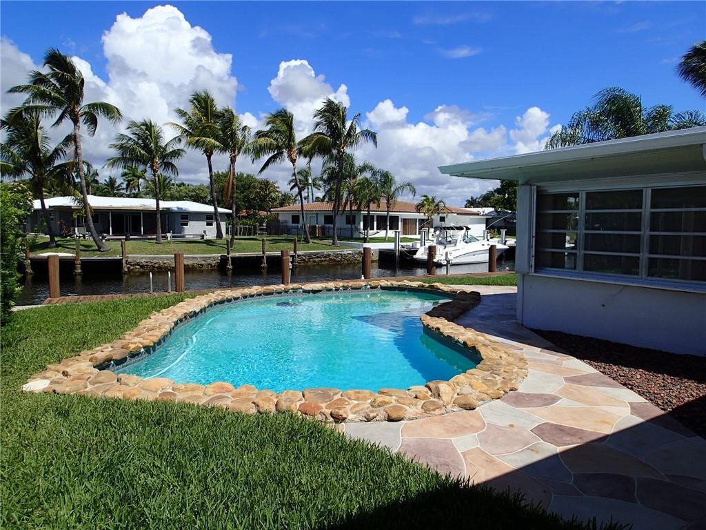 BOATER'S PARADISE. Home located at the end of a cul-de-sac street in a quiet neighborhood. Protected dockage with a dock for your boat with 70' on deepwater. Features include a pool with remodeled bathrooms and kitchen. In last 12 months new hot water heater and washing machine. Ceramic tile throughout and circular driveway and large car garage. (Appt required tenant occupied, lease expires August 31, 2021) Please don't disturb tenants. Call agent for appointment. Close to everything, shopping, restaurants, grocery and parks are all close by. Tenants lease expires August 31, 2021 (Must add in contract.)