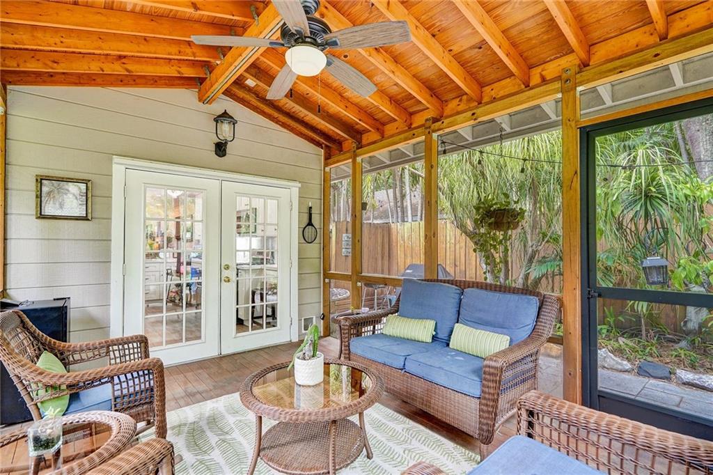 Amazing Riverside Home 2/2 plus 1/1 detached cottage. The main home has updated kitchen, Quartz countertops, custom built cabinets of solid maple, custom built closets in both bedrooms, Porcelain tile floors in main living room-kitchen-dining area, brand new AC, and new water heather. New Solar Panels installed in 2019, average electrical bills is $28 including the $10 minimum base to be attached to the grid. Also a Lovely Cottage currently rented month to month. Extra income potential with the Cottage. Prior to current tenant cottage was on Airbnb bringing in 3k per month in high season. Enjoy the exclusive backyard this house has to offer with the tropical foliage in a nice screened-in porch. Roof is 6 years old, brand new roof in 2015. The home has been well maintained.