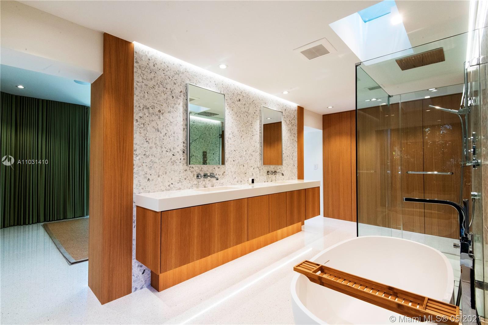 Located on Ft. Lauderdale's most secluded street, on the water in sought after, Victoria Park. This 4BR/3.5BA, 3575 square foot ,meticulously renovated mid-century home is one-of-a-kind, and you will find NOTHING like it on the market! The beautifully curated finishes include terrazzo slab flooring, white oak custom millwork, a commercial ice machine, custom krion countertops, security cameras, sound devices, and Miele appliances. The home is filled with natural light throughout and surrounded by lush landscaping that provides complete privacy. The roofed logia and summer kitchen provide an additional 600 square feet of outdoor living space that overlooks the pool and 77 feet of waterfront that frames the zen, park-like setting.