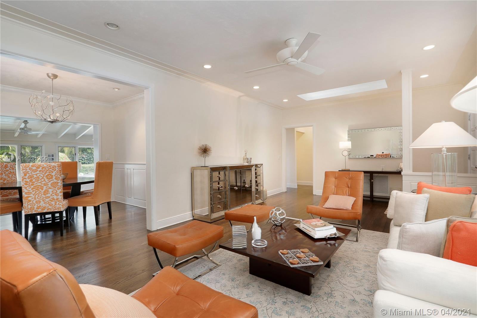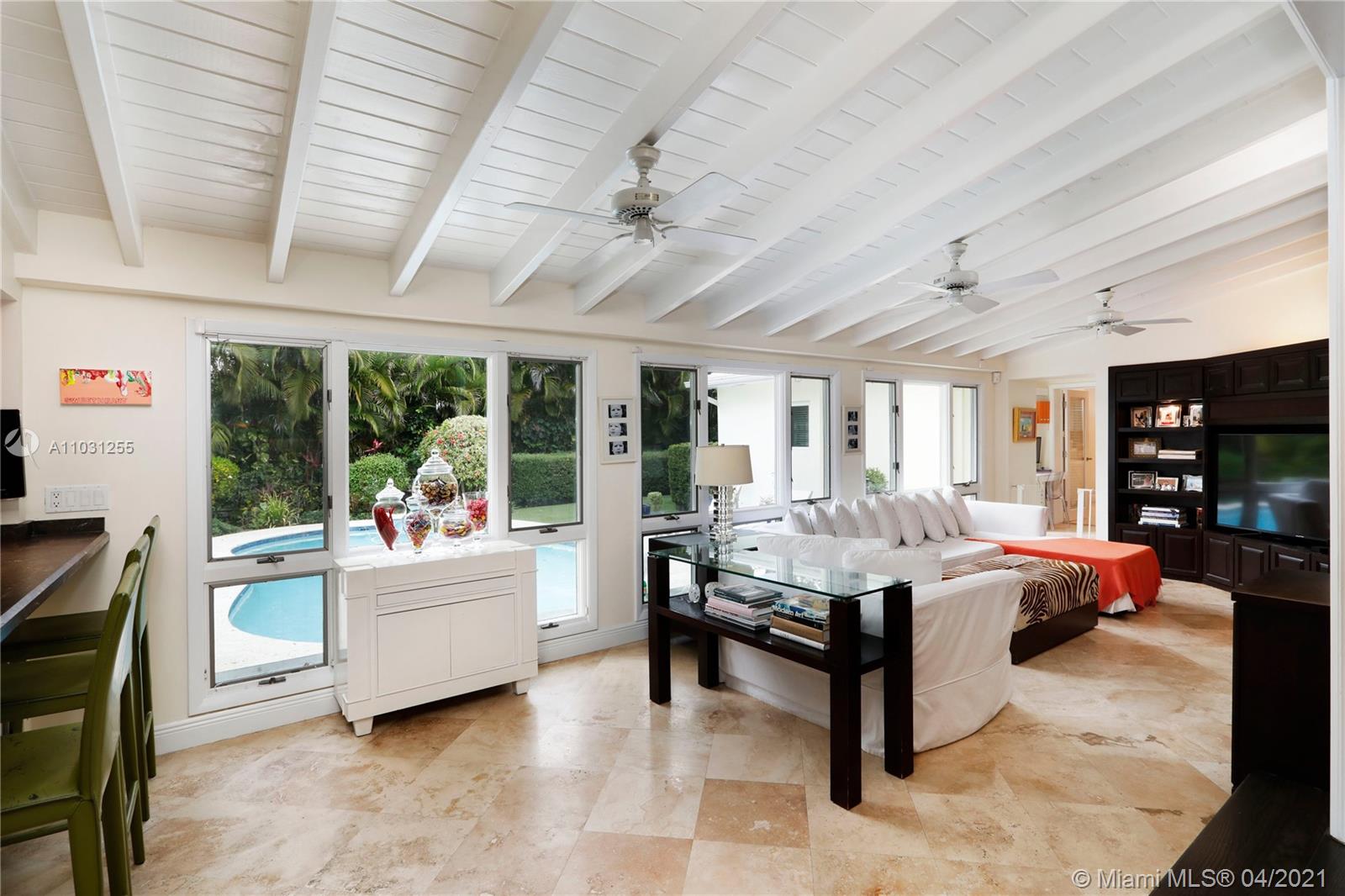 Amazing location of this South Gables home featuring 4 bedroom 4 bathroom on a beautifully landscaped lot. Walking distance to parks, shopping, restaurants and U of Miami. Inside you will find a formal dining area, living room and a casual family room which opens to the kitchen. Kitchen is modern and bright with marble countertops and stainless steel appliances. The main bedroom features a large bathroom with dual sinks and two walk in closets. Separate fourth bedroom/office with bathroom upstairs. Mostly impact glass. A lush private yard surrounding a large pool and patio. All this plus a bonus workout room! 2,743 adjusted sq feet per architectural drawings. Definitely a must see.