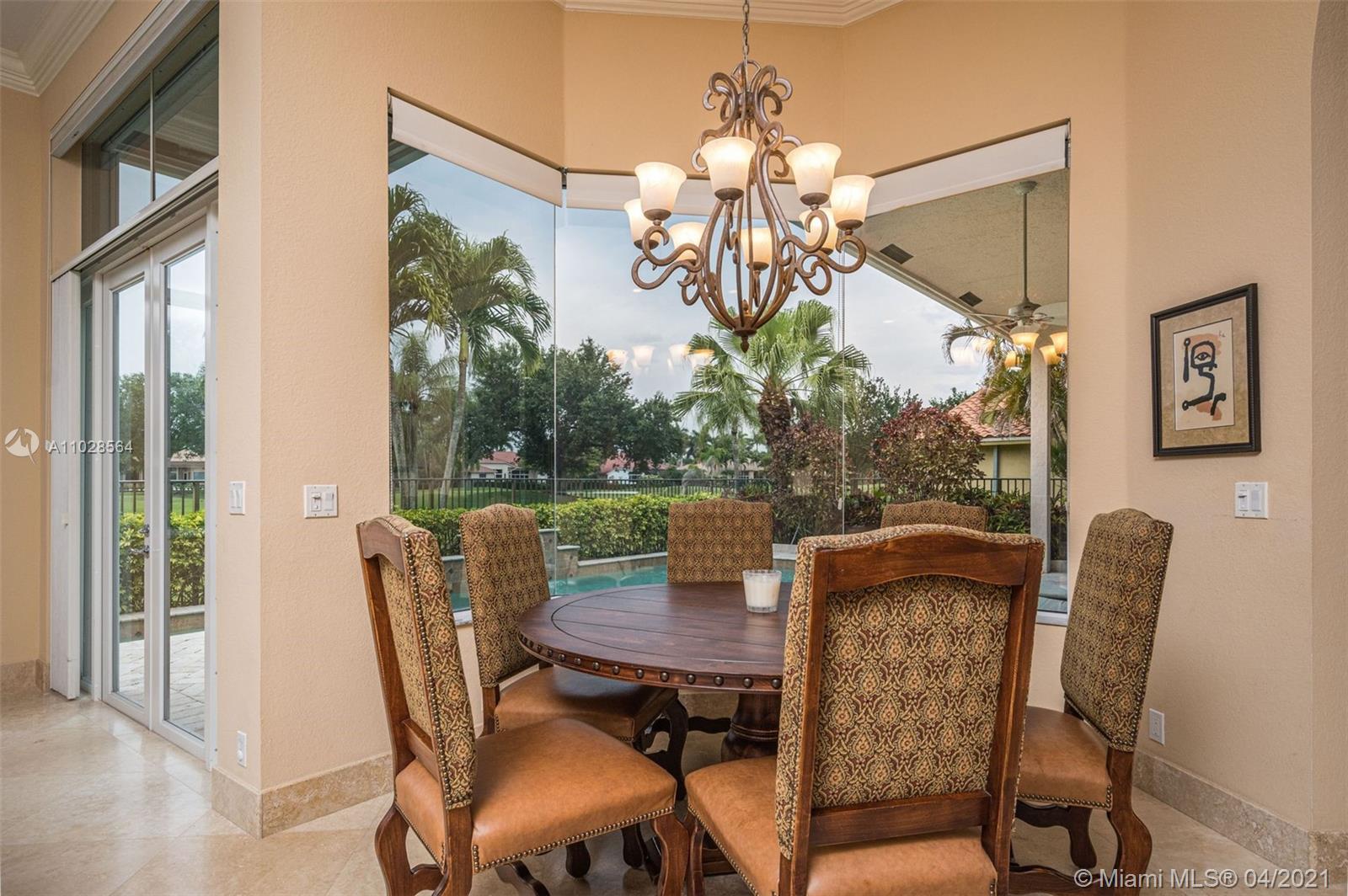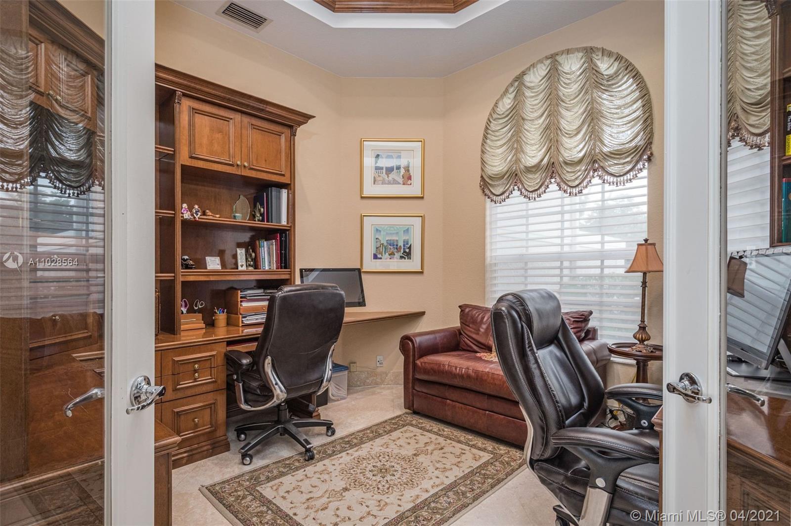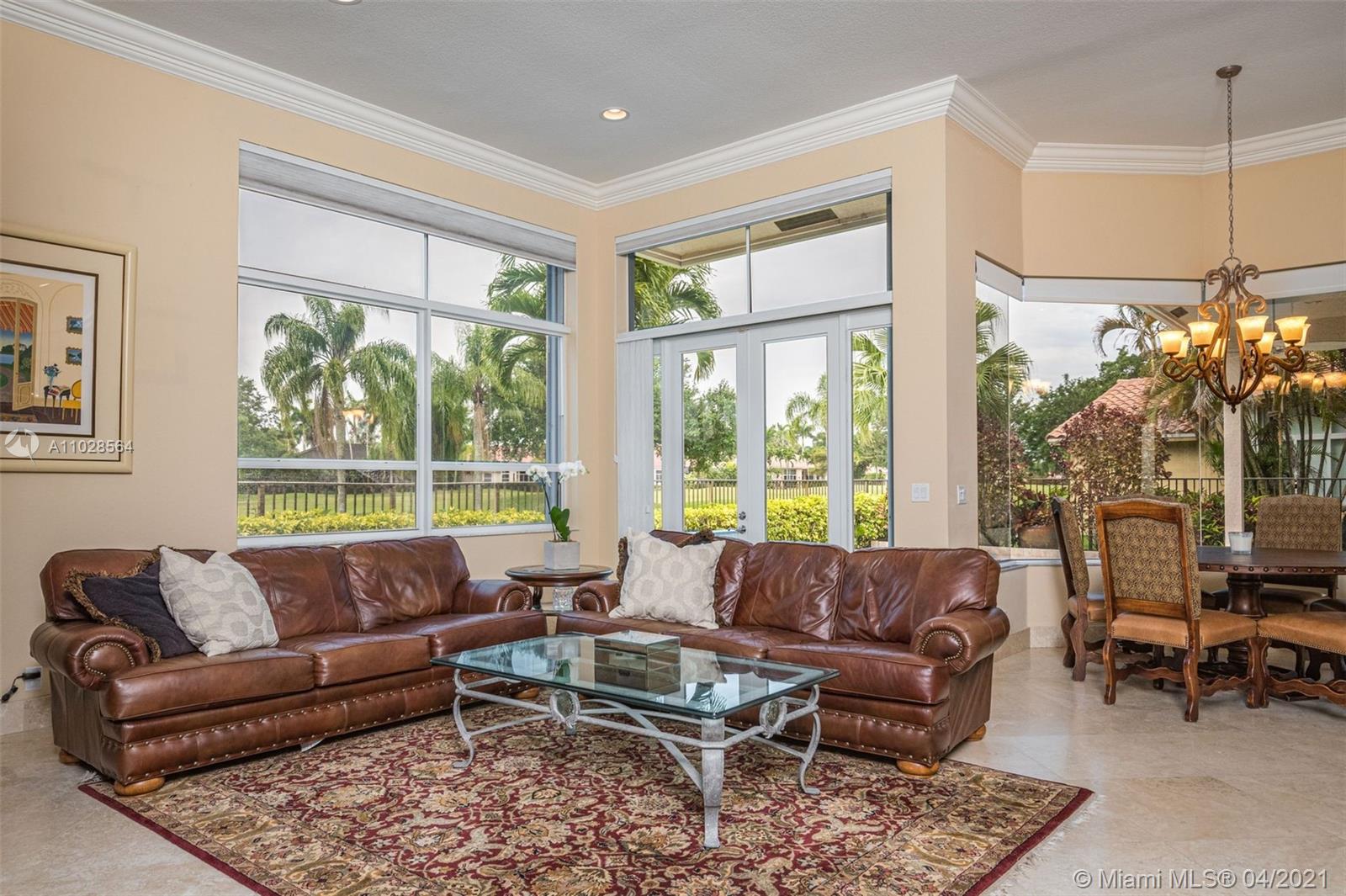 Impeccably maintained 3,000sf 4 bed/4 bath/office home in Weston Hills Country Club. Triple-split floor plan, with 12' ceilings, provides an impressive backdrop of The Players golf course. Saturnia marble and baseboards throughout the main area, wood flooring in the master & laminate/carpet in the bedrooms. Gourmet kitchen with spacious pantry, granite countertops and all the top appliances. Oversized master suite with 2 walk-in closets and large wall closet, marble bathroom with separate vanities, jacuzzi tub and walk-in shower. All bedrooms have en-suite bathrooms. Tumbled marble patio deck with pool, lap lane and waterfall. 2018 roof w/ 10 year warrantee. Newer A/C's. Accordian shutters. 3-car garage.