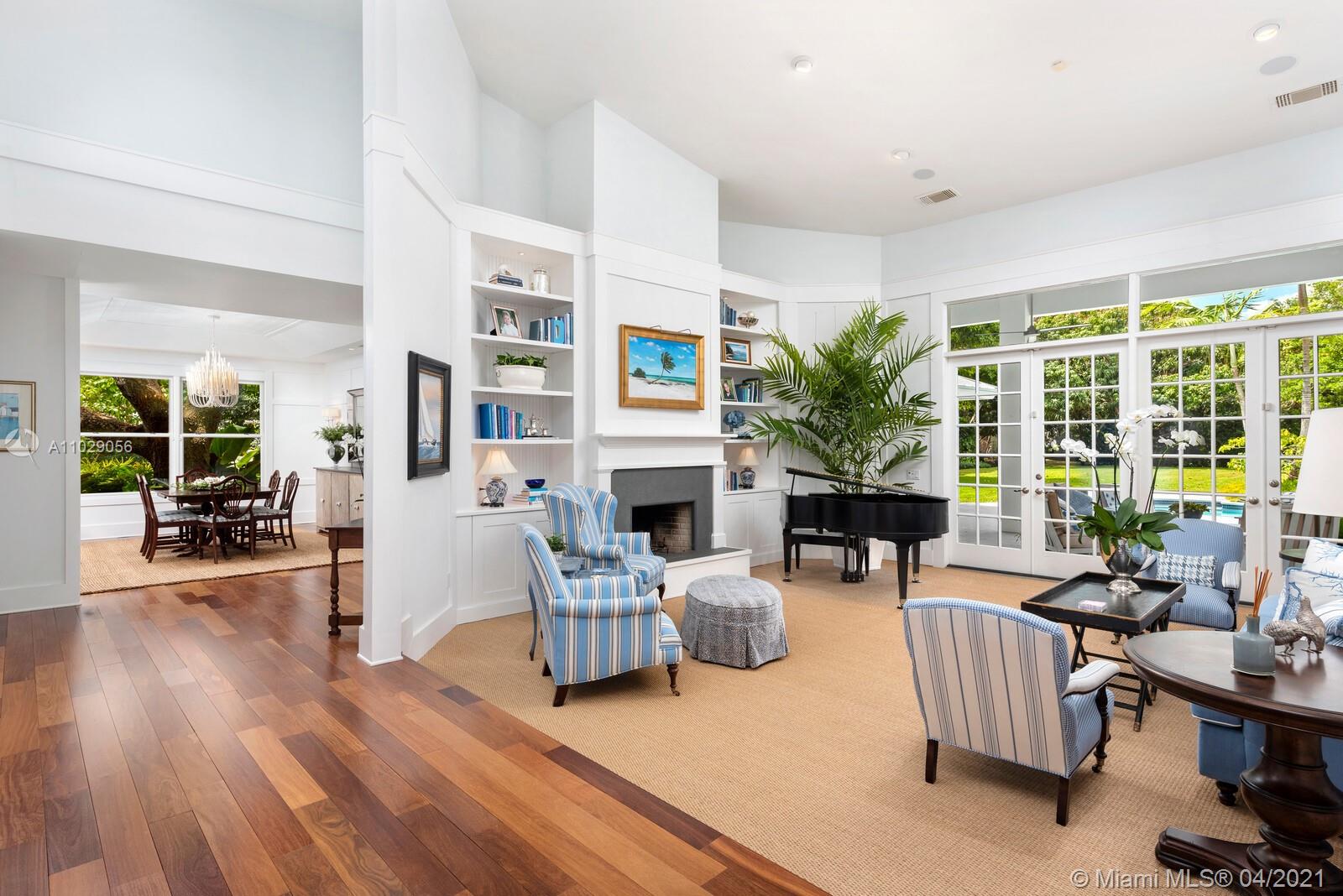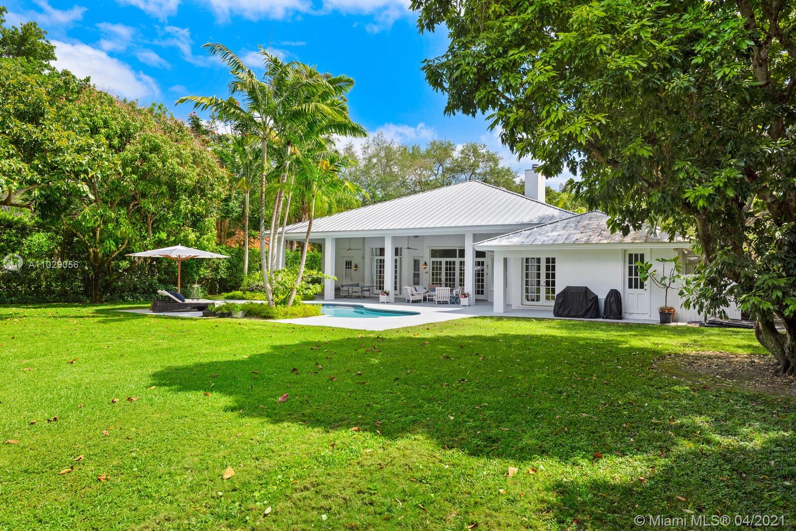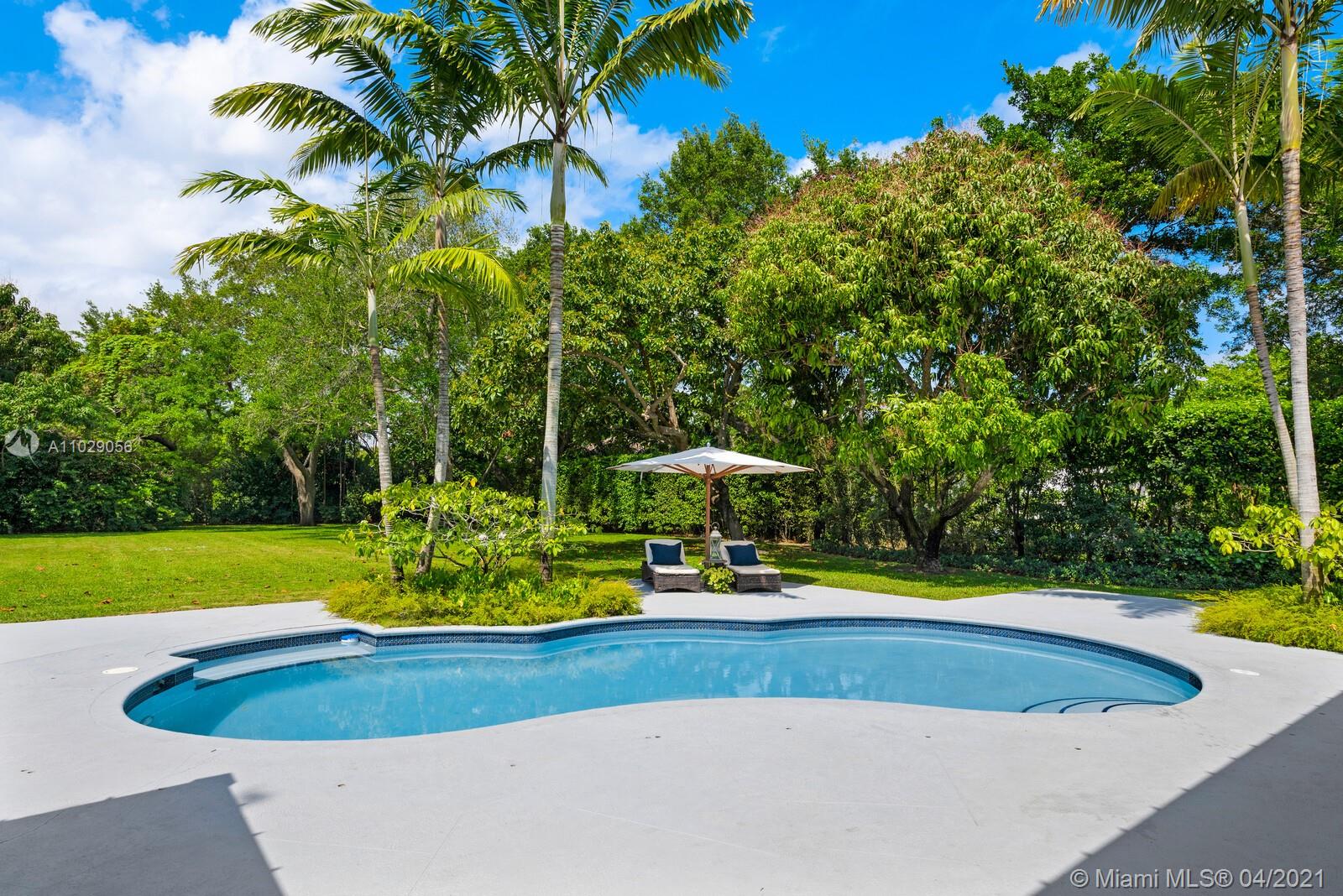 Step into happiness in North Pinecrest! This magazine quality Florida-style home is located on a private 39,000+sqft lot. High ceilings in an open split plan with natural light, rich wood floors, decorative wood paneling, and a cozy fireplace await. We love the formal dining room with its beautiful picture window that perfectly frames the mature oak tree outside. Open kitchen with eat-in breakfast, family room and built-in bar provide panoramic views of an oversized yard, pool and covered patio. Master suite is gracious with an open dressing room and spacious master bath. There are three add'l bedrooms (one en-suite and two with jack and jill). Office/den can function as en-suite bedroom complete with private bath and closet. This is it - the home you have been waiting for!