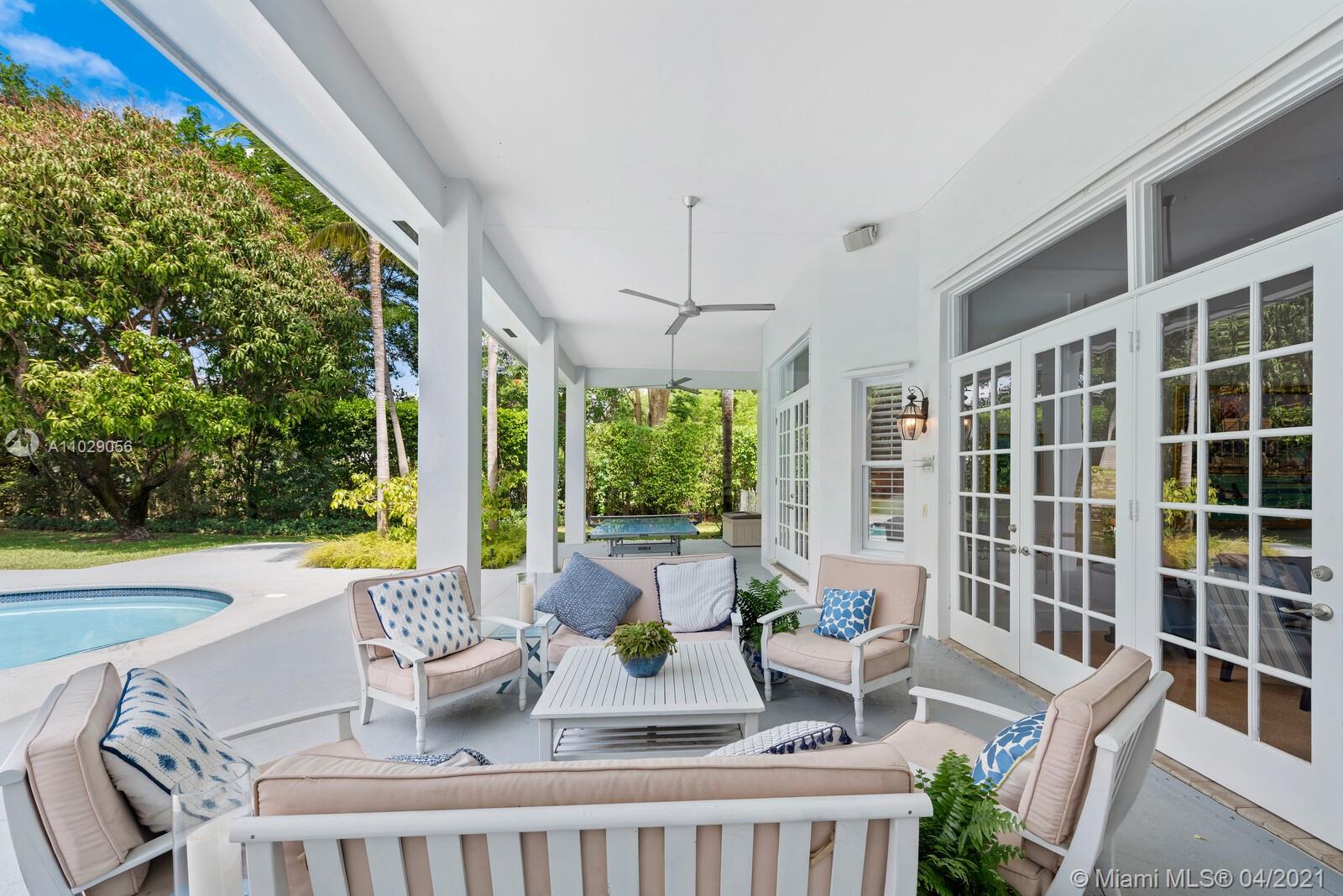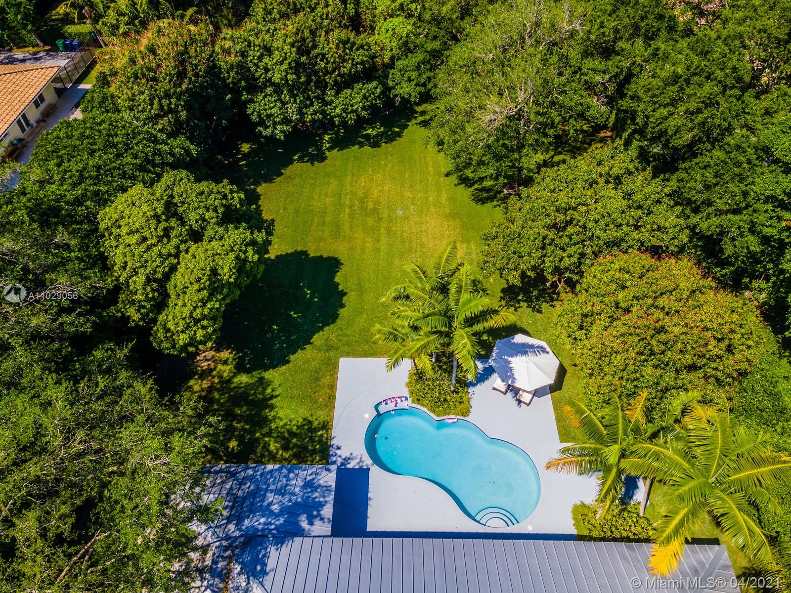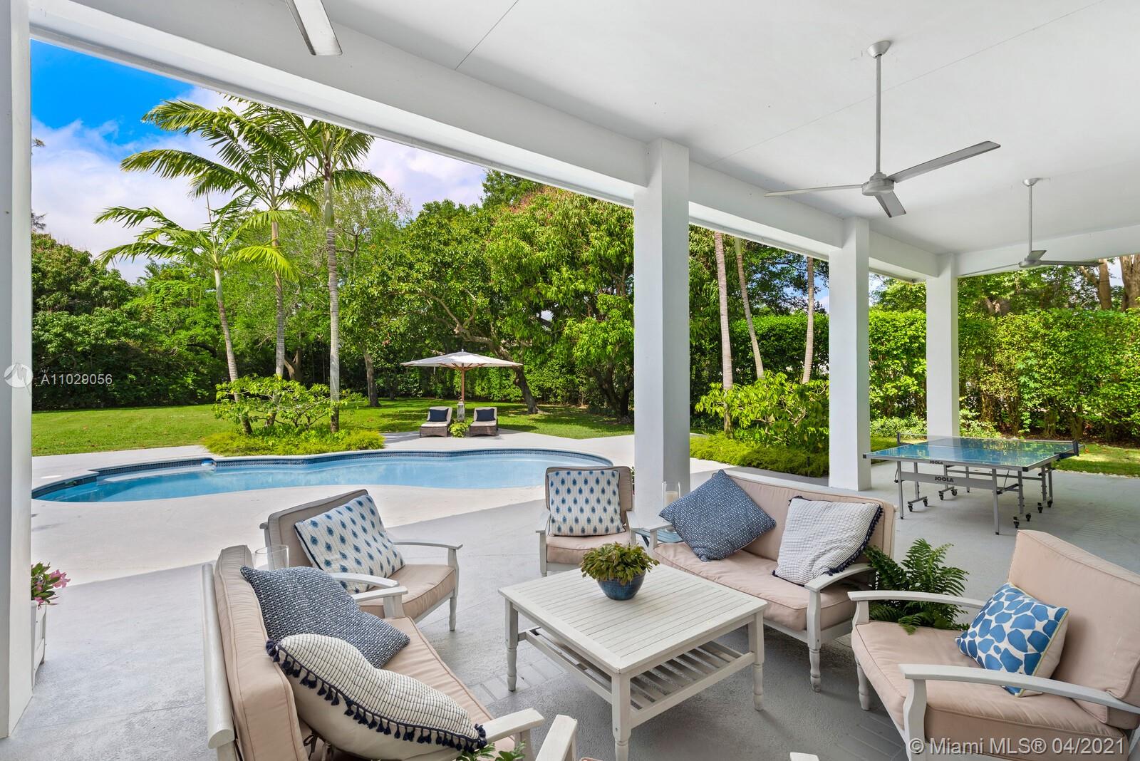 Step into happiness in North Pinecrest! This magazine quality Florida-style home is located on a private 39,000+sqft lot. High ceilings in an open split plan with natural light, rich wood floors, decorative wood paneling, and a cozy fireplace await. We love the formal dining room with its beautiful picture window that perfectly frames the mature oak tree outside. Open kitchen with eat-in breakfast, family room and built-in bar provide panoramic views of an oversized yard, pool and covered patio. Master suite is gracious with an open dressing room and spacious master bath. There are three add'l bedrooms (one en-suite and two with jack and jill). Office/den can function as en-suite bedroom complete with private bath and closet. This is it - the home you have been waiting for!