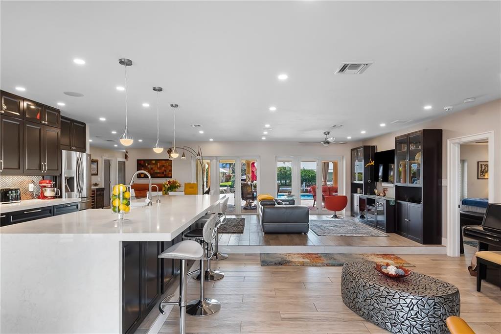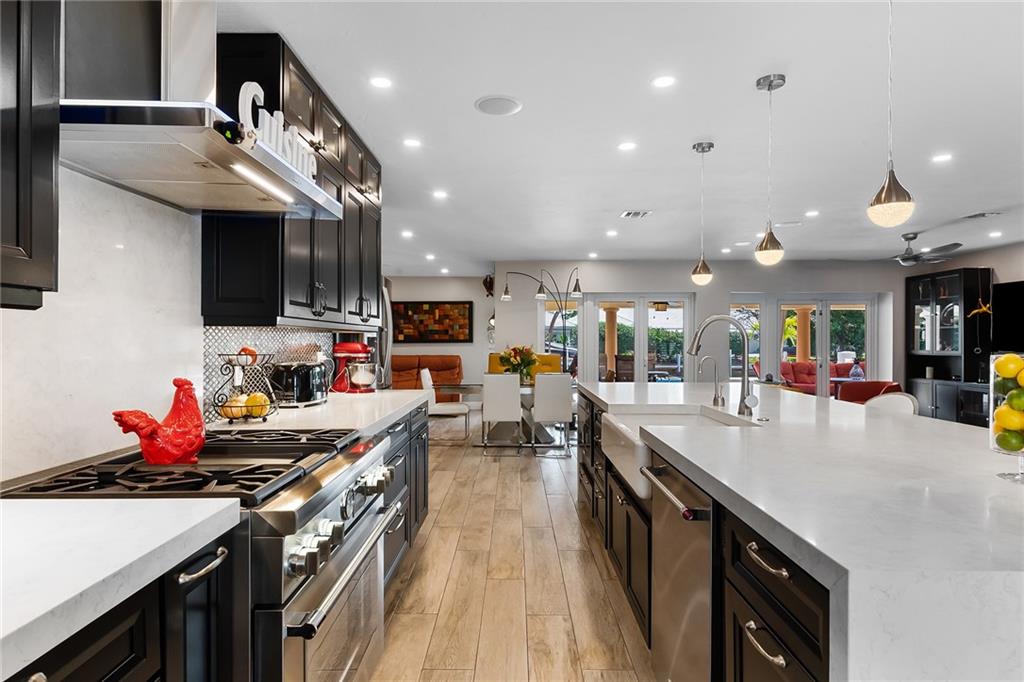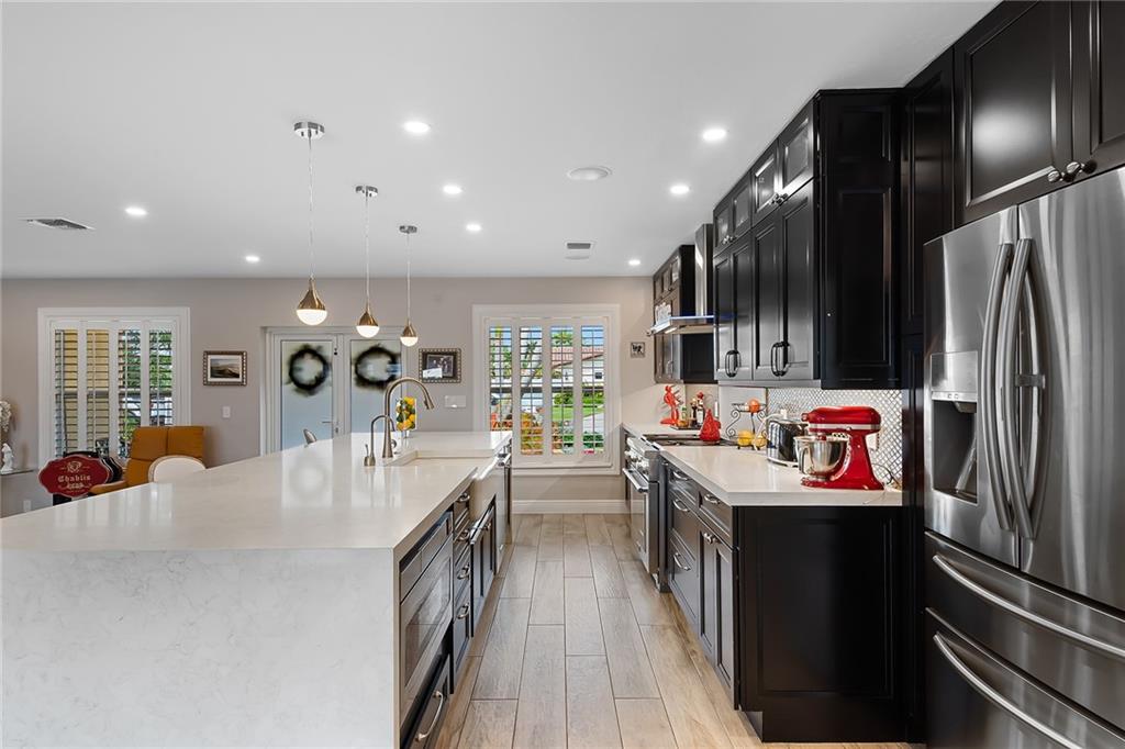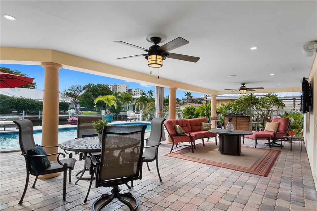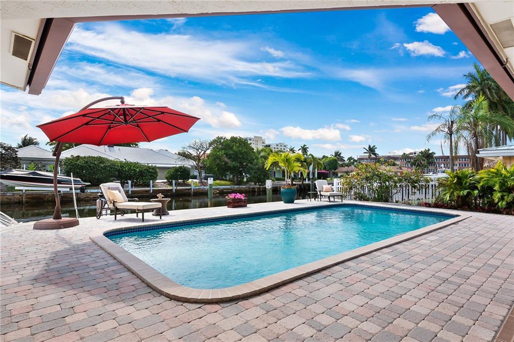 Sought after Landings waterfront community home, 85 feet of deep waterfront on wide canal, professionally remodeled with all impact windows. Great home for entertaining with an open floor plan, custom cabinetry Chef's kitchen with quartz counter tops, natural gas range and custom built bar area. Only minutes to the beach with new landscaping, oversized covered patio area with MosiquitoNix, maintenance free pool deck and built in grill. Home is wired for audio/video and has a Sonos indoor and outdoor surround sound system. Second canal in from the intracoastal.