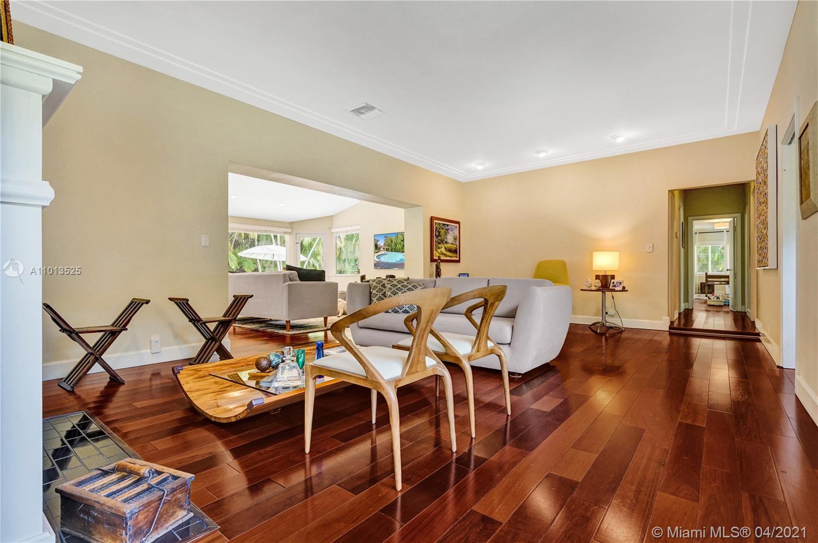 Beautiful home on an oversized corner lot very well located between Riviera Country Club and the Italian Village, near the University of Miami. This residence offers an open concept floor plan and Mahogany floors from Brazil. Living room features original fireplace. Residence has 3 bedrooms, including a luxe master suite, office and a separate 4th bedroom perfect for a guest/staff with bathroom connected by a covered carport. Backyard with a relaxing pool and space to entertain. 1-car garage and 1-covered carport. Quiet place and abundant natural light make this house a pleasant place to live!