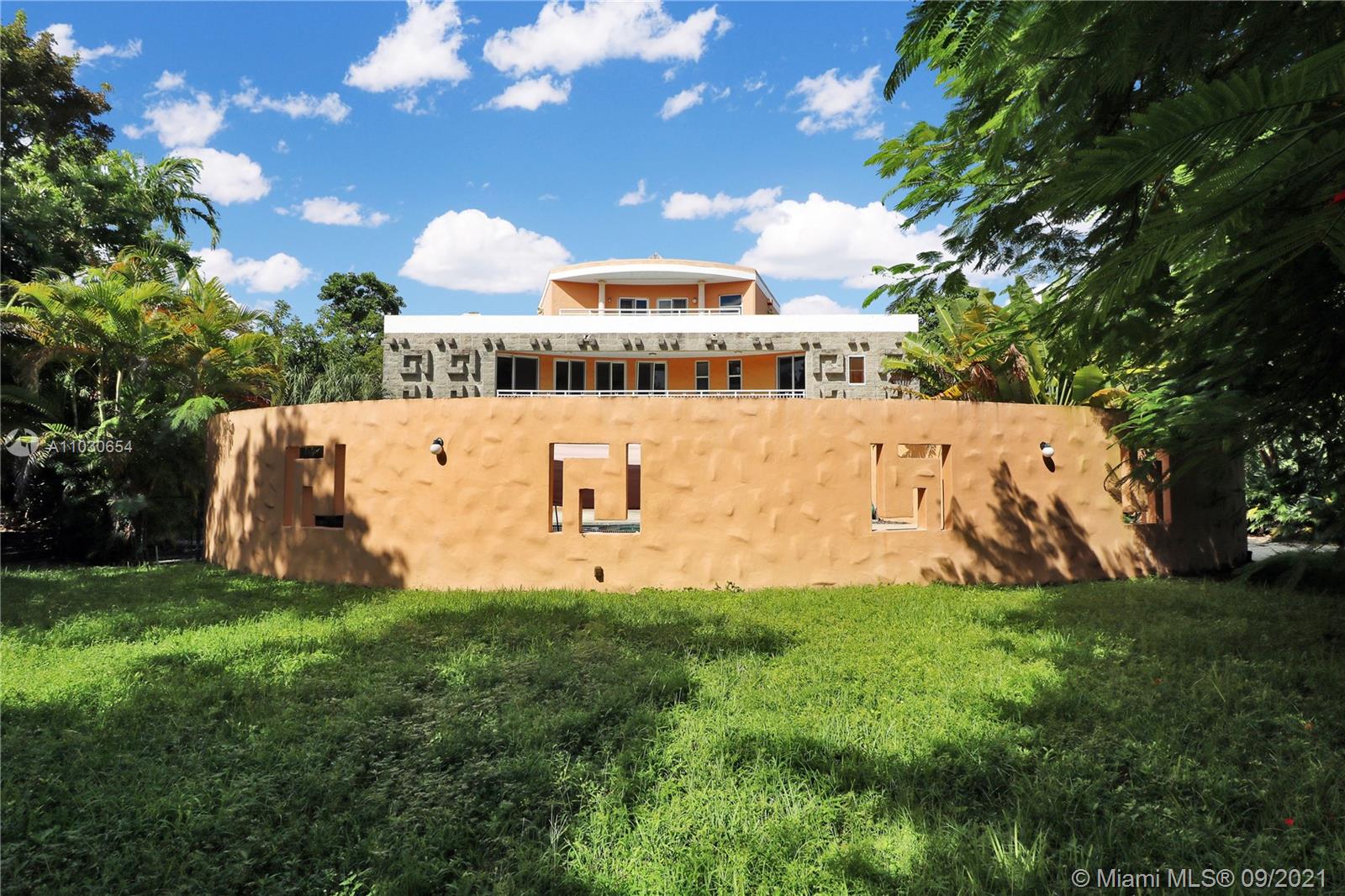 MAGNIFICENT THREE STOREY VILLA DESIGNED BY ARCHITECT ROBERT BARNES AS "MAYAN TEMPLE". ACCESS BY PRIVATE ROAD WITH RAISED DRIVEWAY AND POND/WATERFALL. EACH STOREY IS DEVOTED TO DIFFERENT AREAS OF FAMILY LIFE. GROUND FLOOR HAS SPACIOUS OPEN FLOOR LOUNGE/DINING ROOM/KITCHEN AND SEPARATE AREA HOLDING 2 BEDROOMS, 1and 1/2 BATHROOMS, AND GAMES ROOM. PERFECT FOR CHILDREN! THE UPPER FLOOR IS ENTIRELY DEDICATED TO MASTER BEDROOM, WHICH FEATURES ITS OWN BATHROOM AND SPACIOUS DRESSING ROOM WITH AMAZING VIEW. DOWNSTAIRS HAS ADDITIONAL MASTER BEDROOM/BATHROOM, HUGE FAMILY ROOM, LAUNDRY ROOM AND DIRECT ACCESS TO TWO CAR GARAGE. THIS FLOOR HAS DIRECT ACCESS TO LARGE SWIMMING POOL AND TERRASSE WITH HUGE, TOTALLY SECLUDED GARDEN. IMPACT WINDOWS THROUGHOUT, CHERRY WOOD FLOORS AND MANY UNIQUE FEATURES!