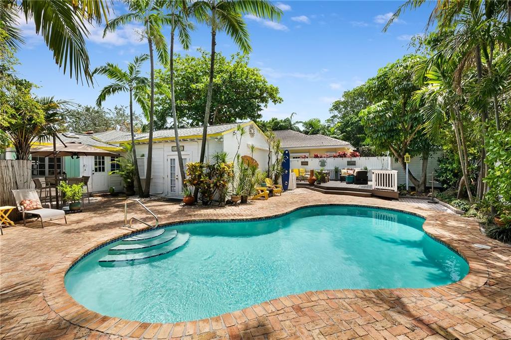 Welcome to "Maui House" located 200 feet from the sand.The home exudes charm at every turn.A true work of art.Dont miss this once in a lifetime opportunity as you will never see another like this again.Situated on a cul de sac,the home features lush tropical landscaping,charming courtyards,an outdoor bar,meandering gardens,incredible private pool area with expansive decks.Tons of outdoor living spaces.Enjoy the east facing ocean breezes.The home exudes charm with soaring vaulted natural dade county pine ceilings,original hardwood floors,phenomenal chefs kitchen,updated bathrooms,huge guest house with full kitchen.Offered fully furnished.Located in the most prestigious neighborhood in Ft. Lauderdale with homes being built valued between 20-50 million!see supplement remarks below.approx sf.