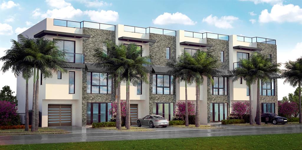 New construction modern town homes with spectacular water views facing east & west. Short walk to beaches. Expected completion 2021. Smart-home ready. 4-bdrm plan with 4-full baths or opt for a more open 3-bdrm plan. High-ceilings ~10'! Corner unit with spacious master bath suite. Custom high-end finishes from Italy/Spain. Large island kitchen. Laundry room inside. Modern metal railings throughout. Unit has covered balconies, private patio & yard. 3-story + large 961sf rooftop terrace with Intracoastal & ocean views structurally built for rooftop spa. Rooftop electric & water ready. Upgrades/options: porcelain, quartz, caesarstone. Extra-wide 1-car garage with epoxy floors & private extra-wide driveway; fit up to 3 cars. No rental OR pet restrictions! Includes private pool & rooftop spa.