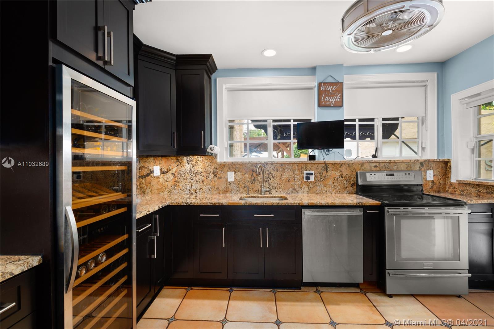 Beautifully Detailed Old Spanish style home. Main home is a 2 bedroom /2 baths. The guesthouse is a 1 bedroom/1bath. Master bedroom has 2 wall-in closets. The kitchen has been newly remodeled with wood cabinets and beautiful granite tops. The appliances are new including a Washer and Dryer in the kitchen area, in addition to a 150-bottle wine cooler. Restored Hardwood floors thru out the home. Working original fireplace located in the living area. Chicago Brick Driveway and Patio. Lushly Landscaped backyard with Private fence, Pergola and Outdoor Entertaining Kitchen. This beautiful 1928 home has has been totally updated and is in Move in conditions with impact window and doors.