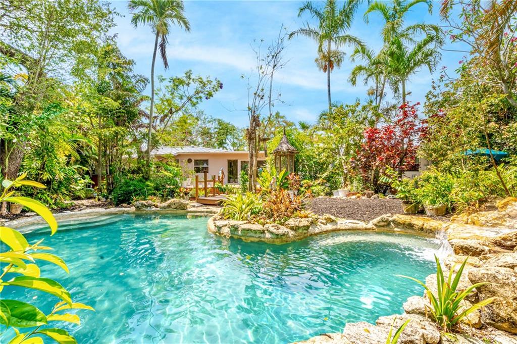 Stunning Tropical Oasis, likely the most unique home in South Wilton Manors area. Exudes a private resort sensation. Two homes on two lots with one folio. Two electric meters, two water meters. 6 real bedrooms, 3 real baths, a pool area that is Shangri la!! Check out the virtual tour.