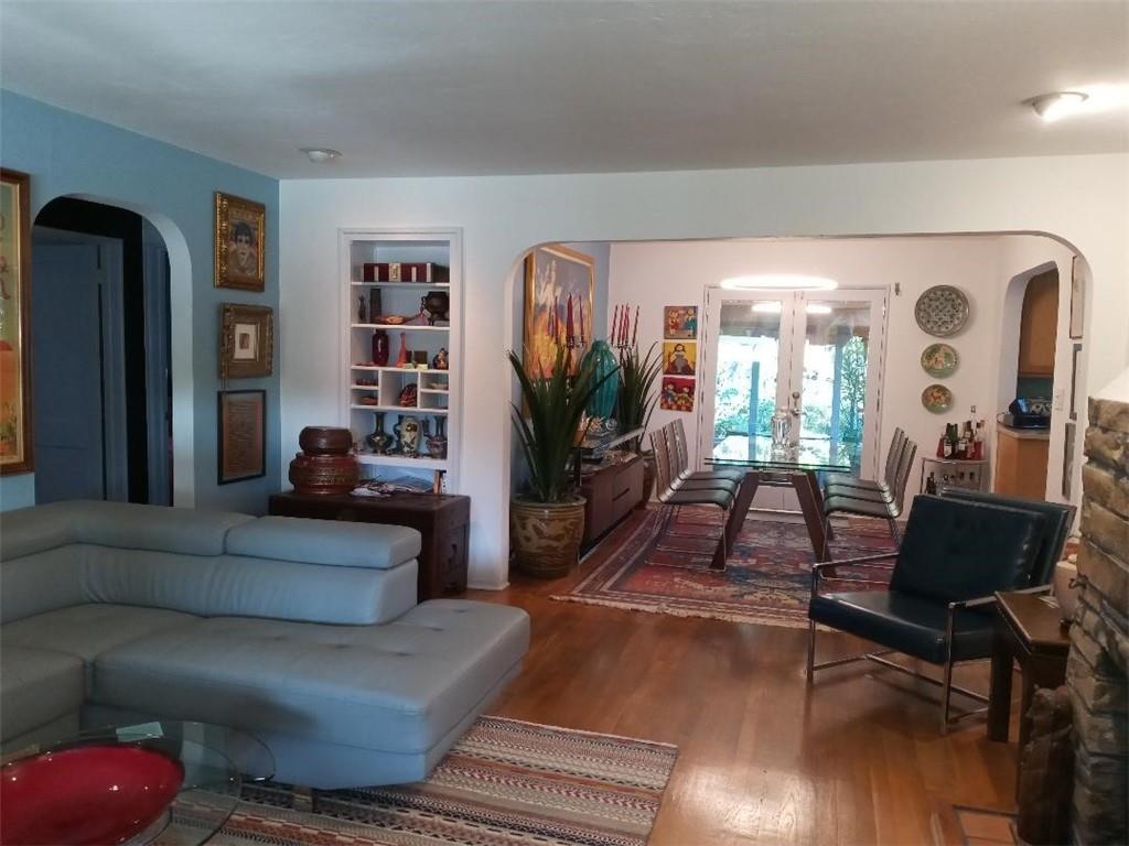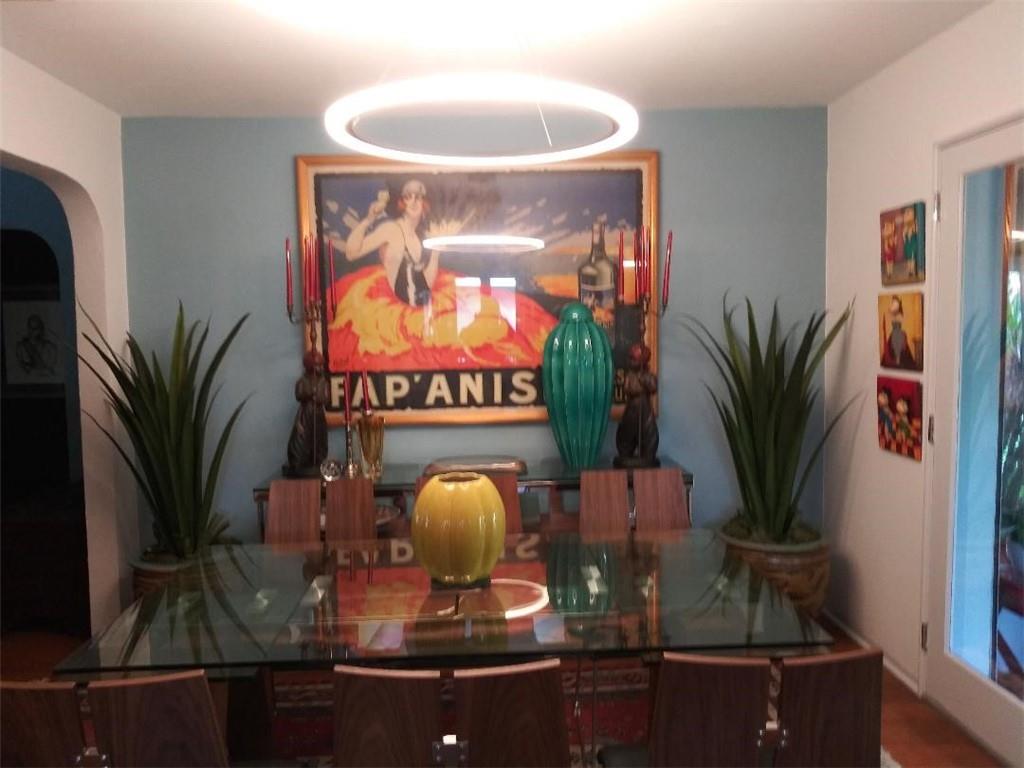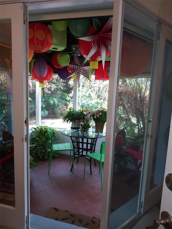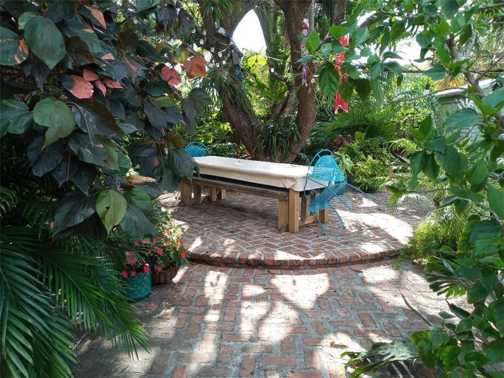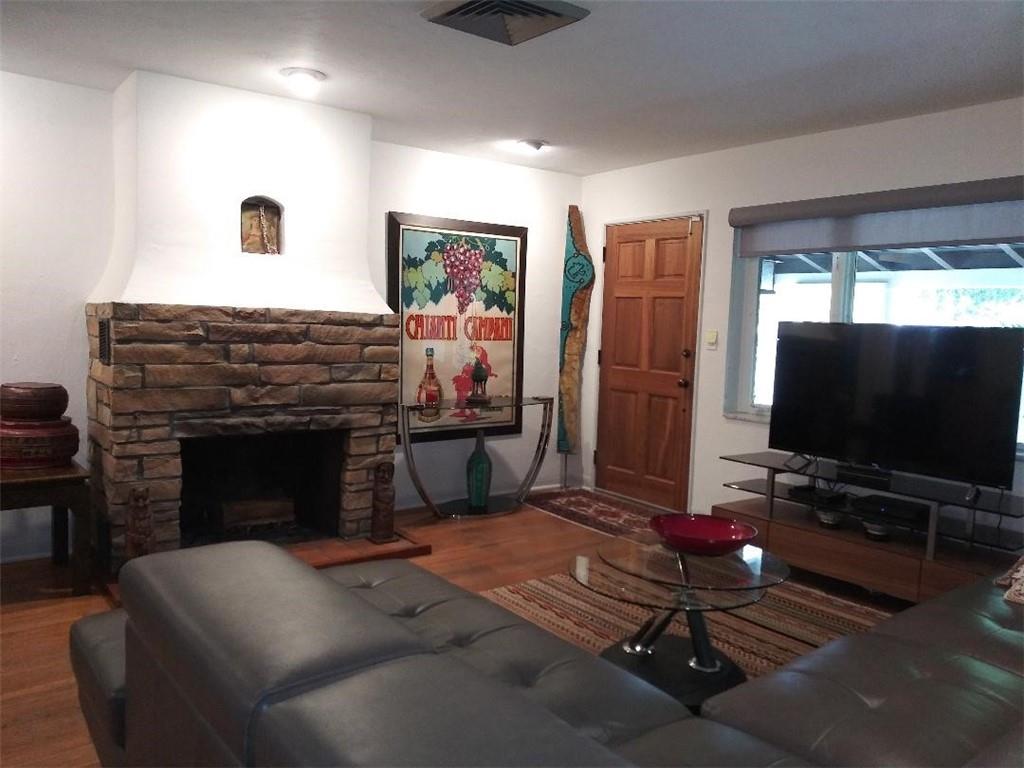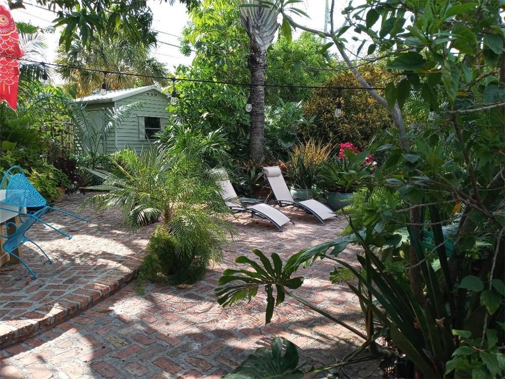 Beautiful bungalow steps from Poinsettia Heights. Original hardwood floor in main rooms, tile in kitchen and bath. The large open living room boasts a rock fireplace, recessed lighting and open rooms to include a dining area open to the kitchen. The kitchen has propane to the stove. Good size bedrooms and closets. Master fits king size bed with plenty of room to spare. The kitchen, dining and the 2nd bedroom overlooks a park-liked back yard that is green and tropical. Fantastic for all your entertaining. Screened Florida porch off the dining area. Storage shed in the back yard and a oversized one car garage. Impact window, French doors have metal electric roll down door. Tile roof. Buyer to verify all sq footage. Yard is on well water.