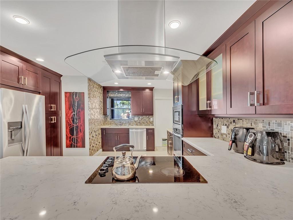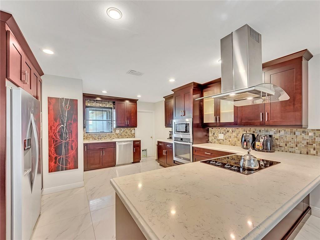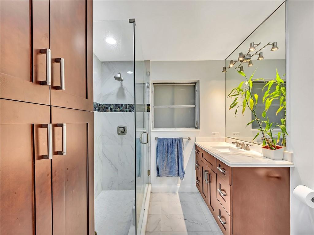 Beautifully updated 3/3.1 in Imperial Point. Kitchen includes all Whirlpool SS appliances and hood as well as quartz counter tops. Large split master bedrooms with walk-in closets and sitting areas. 1 master and third bedroom have pool access off the south side of the home. Large corner lot, wrap around driveway, outdoor Weber kitchen and outdoor shower for entertaining at the pool. Free-floating showers throughout all baths, 2.5 car garage, and A/C is 7 years old.