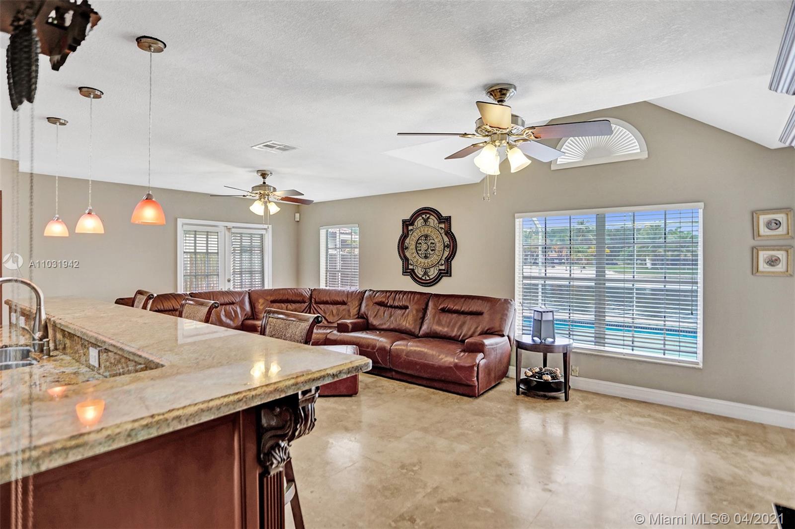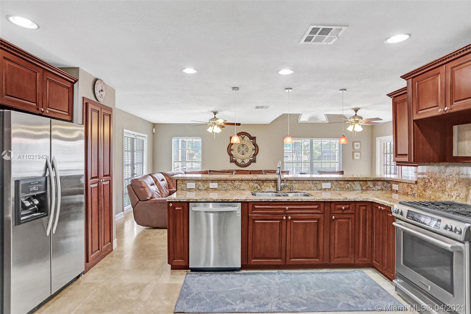 THE TRIPLE CROWN of Lakes on The Green with rarely available together Cul de sac, Lakefront & Pool! Located in coveted & low taxed 33015, unincorporated Dade County. Magnificent 2 Story, Spanish style family home. This beauty boasts marble floors downstairs, 4 bedrooms, 2.5 baths, 2 car attached garage & over 2,600 SqFt of living area. Generous, extra large lot (net size 11,200 SqFt & over 14,000 SqFt gross to lake) Gorgeous, wide open water views & amazing Sunsets from entrance & about every room. Large, open kitchen, granite tops, wood cabinets, SS appliances, natural gas & laundry room. Beautiful & spacious master suite, double vanities, shower & tub ensuite. Stamped concrete driveway, Spanish clay tiles, bright & airy floor plan, vaulted ceilings & lots of windows. Private community.